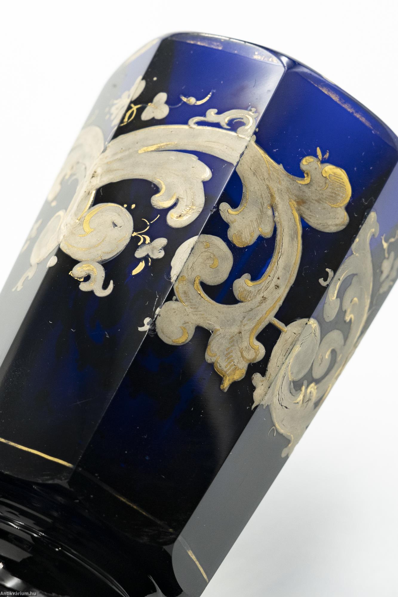 Cseh biedermeier festett kobaltkék üveg pohár 19. század közepe