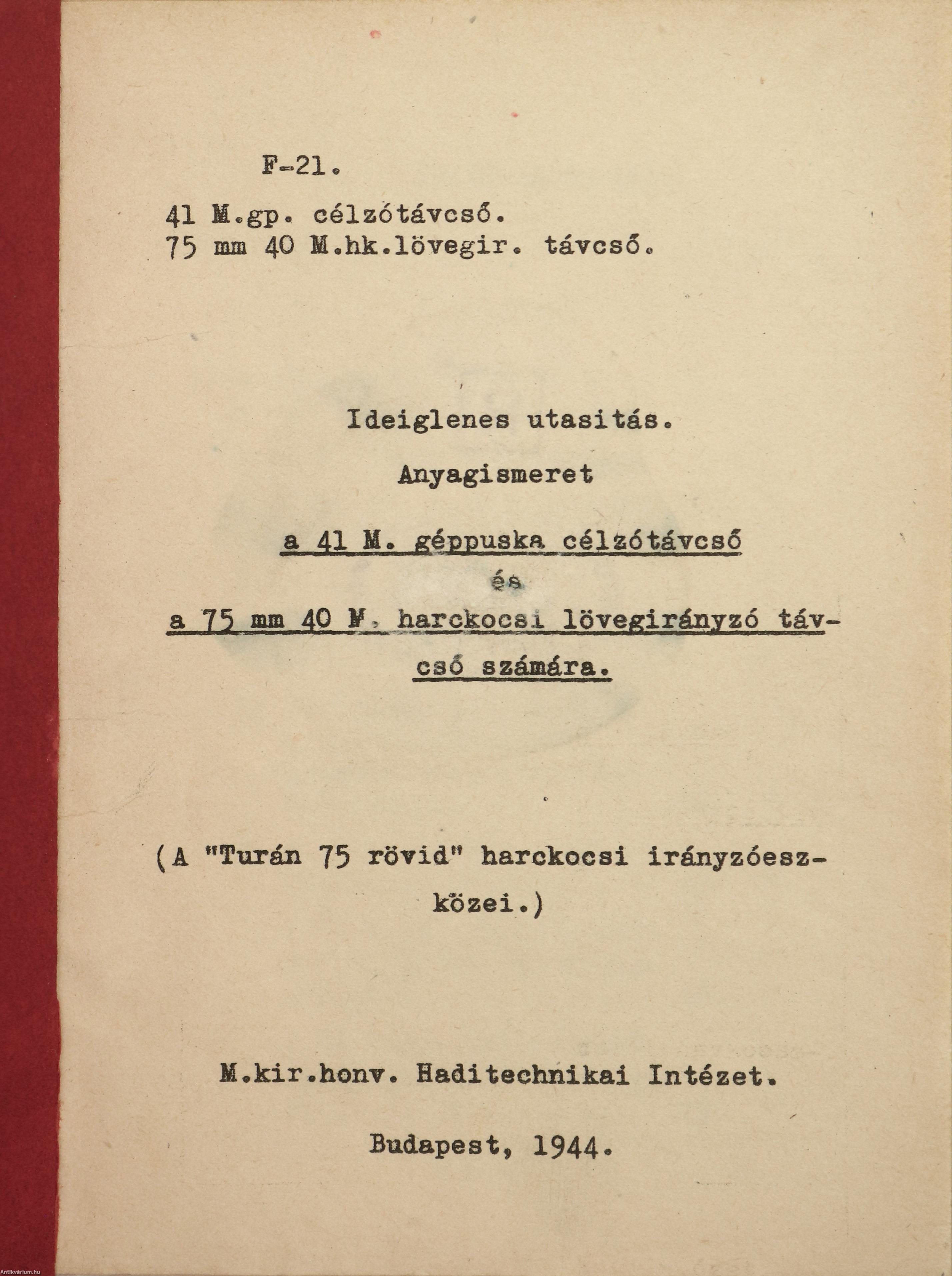 C) 1) A 75 mm 40 M. harckocsi lövegirányzó távcső leírása 41