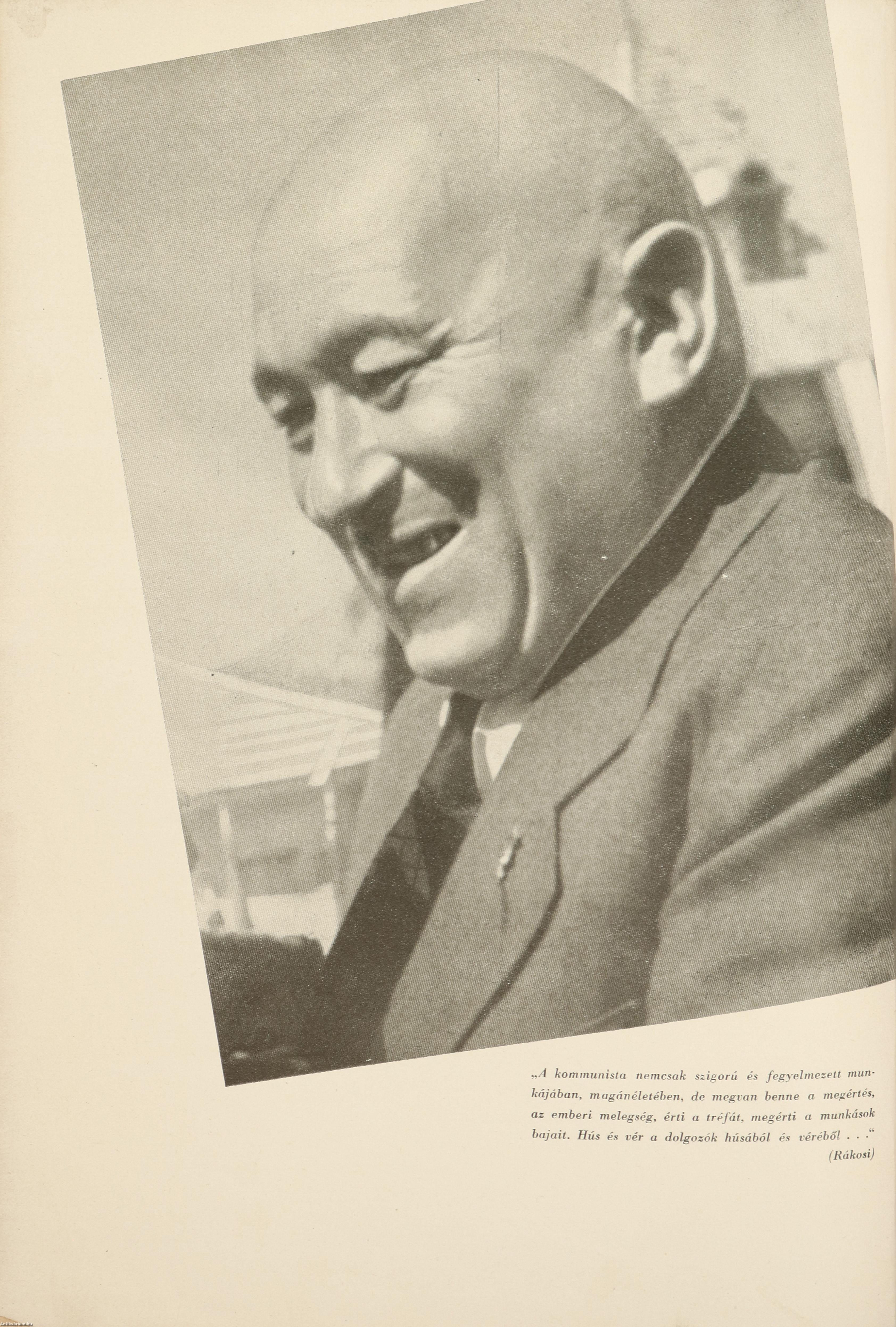 Fekete-fehér, szöveg közti fotókkal és karikatúrákkal illusztrált kötet. A karikatúrákat készítette: Erdei. Címlapképen Rákosi Mátyás fényképével. Nyomtatta a Posner Grafikai Műintézet, Budapesten. Az első előzéken tollal írt, régi tulajdonosi bejegyzés látható.