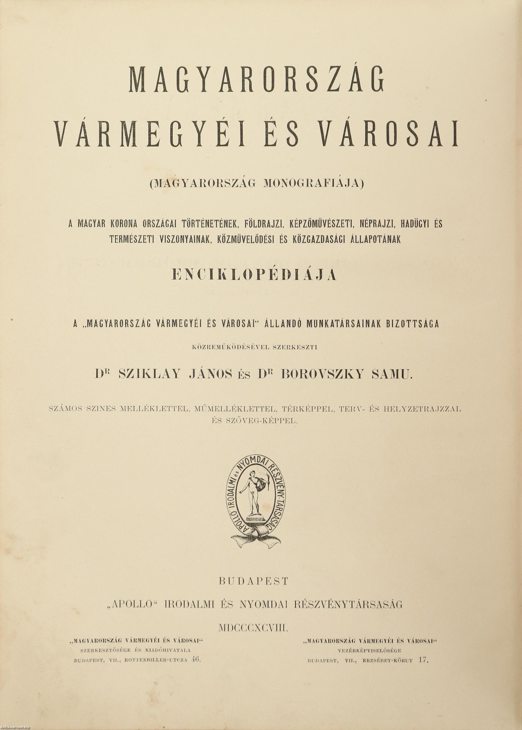 | Kőszeg város leírását Wittinger Antal adja: átnézte Tipka Ferencz, Kőszeg sz. kir. város polgármestere és dr. Thierring Gusztáv, a főv. statisztikai hivatal aligazgatója | 137 |