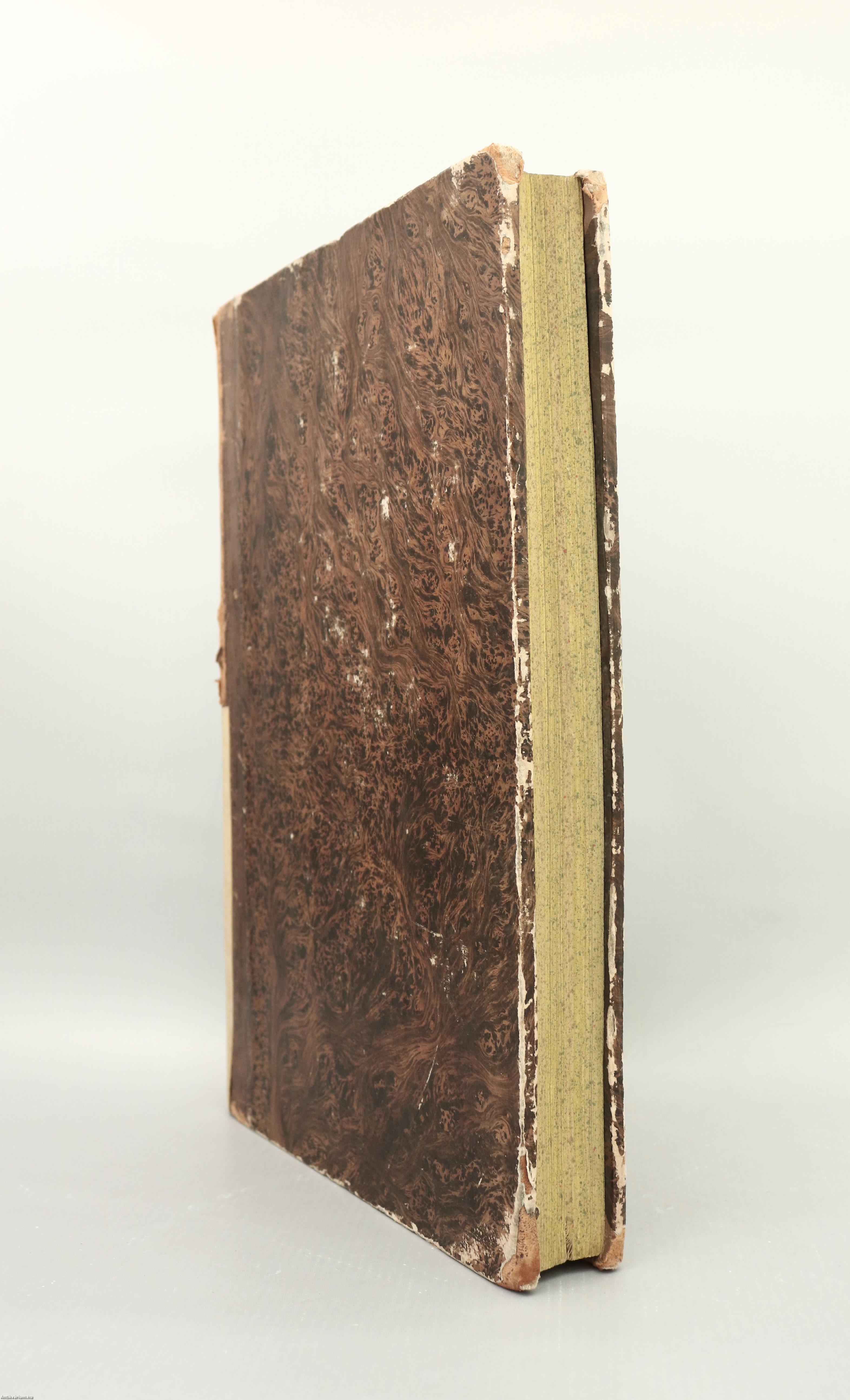 Korabeli félbőr kötésben lévő példány feliratozatlan, mintás címfedéllel és hátlappal, aranyozott feliratos, amatőr módon javított könyvgerinccel, korabeli előzéklapokkal, színezett lapélekkel, tiszta belívekkel, hiánytalan állapotban.