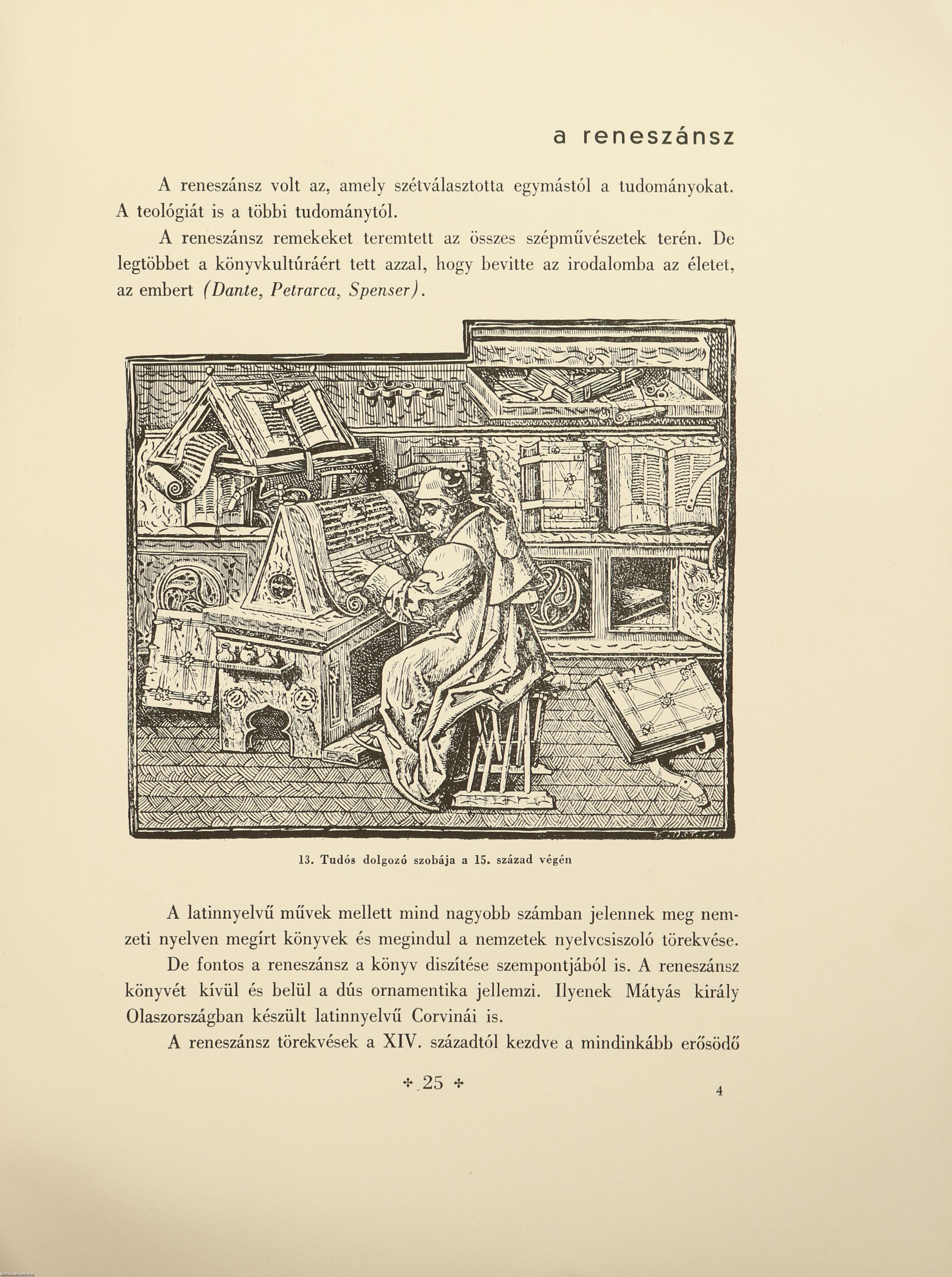 A történelmi új-kort a történetírók Amerika felfedezésétől számítják; holott helyesebb lenne ezt a könyvnyomtatás feltalálásától számítani, amely félévszázaddal előbb történt. Az emberiség haladásának szempontjából ez fontosabb volt, mint az amerikai földrész fölfedezése. Képzeljük el, milyen lenne az élet könyv nélkül, gyermekéveinktől öreg korunkig, otthon és az iskolában vagy a tudományos intézményeinkben. Akkor értjük meg a könyvnek, mint kultúrtényezőnek nagy fontosságát.