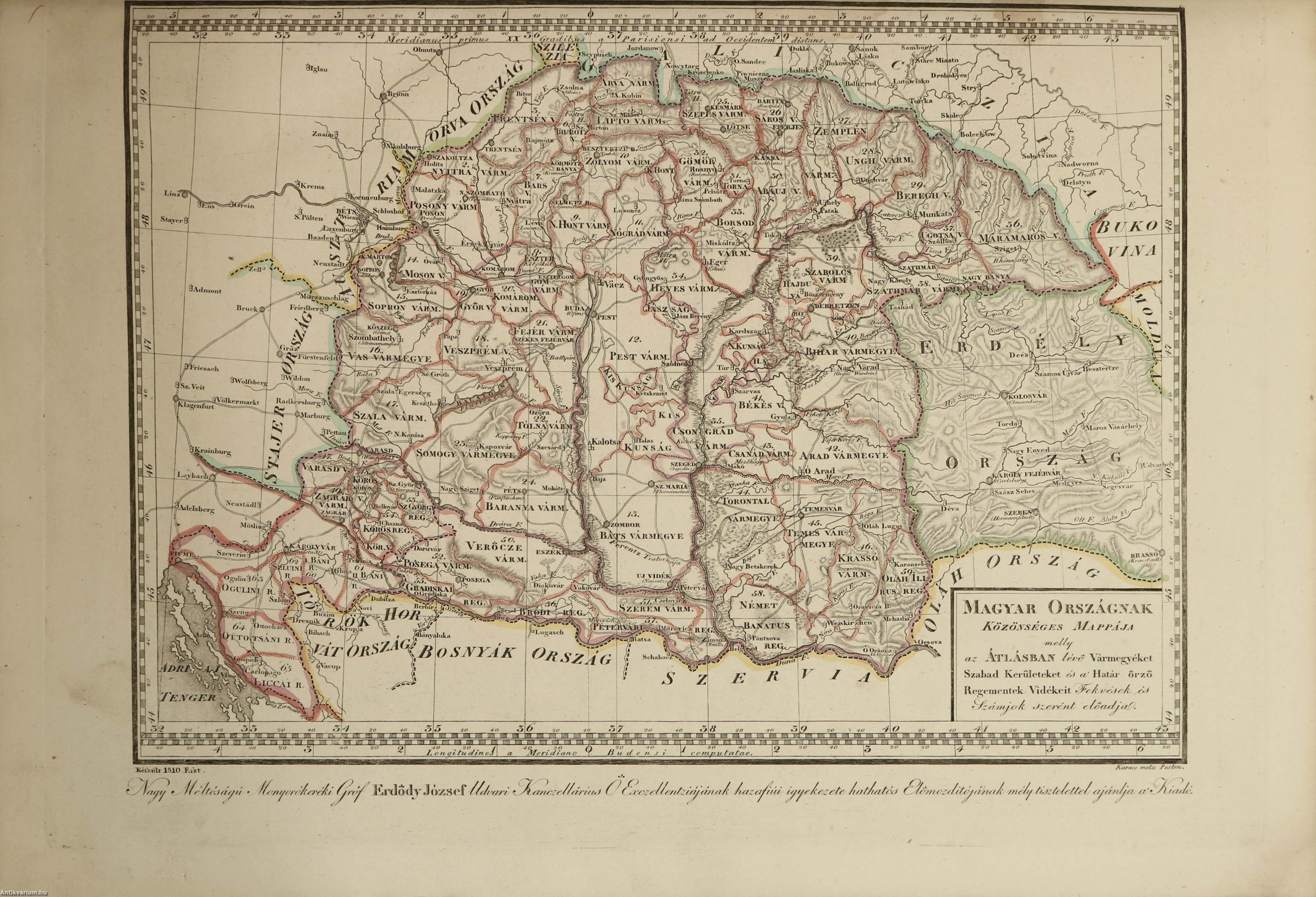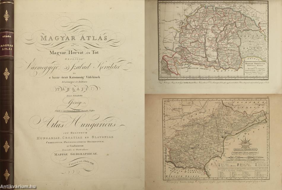 Magyar Átlás az az Magyar, Horvát és Tót országok' Vármegyéi', 's Szabad Kerületei' és a' határ-őrző Katonaság' Vidékinek közönséges és különös tábláji. / Atlas Hungaricus Seu Regnorum Hungariae, Croatiae et Slavoniae Comitatuum, Privilegiatorum Districtuum, et Confiniorum Generales & Particulares Mappae Geographicae. Közre botsátotta: Görög [Demeter]. Folytatta és végezte Marton Jó'sef, a' Bétsi Universzit. Professor.