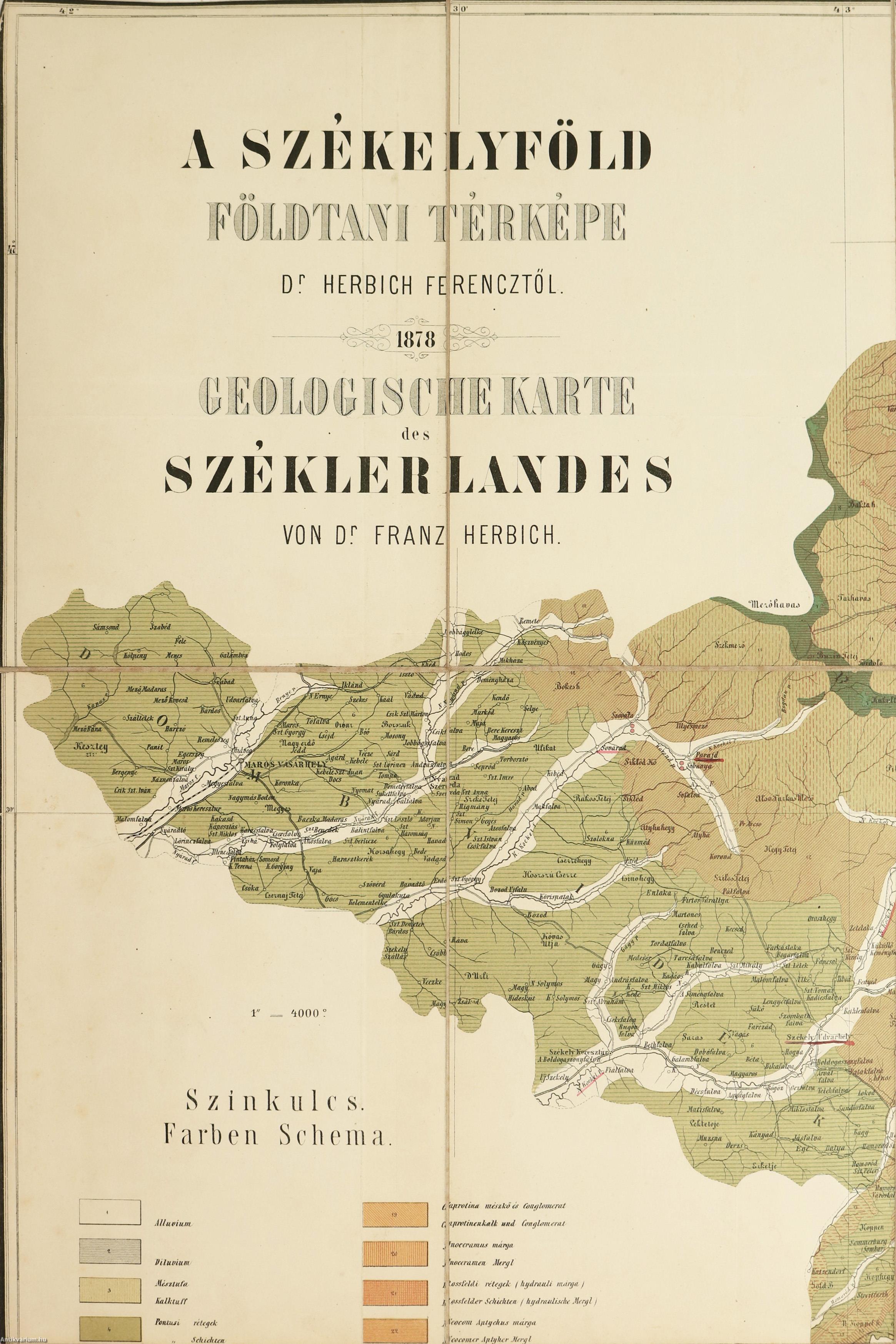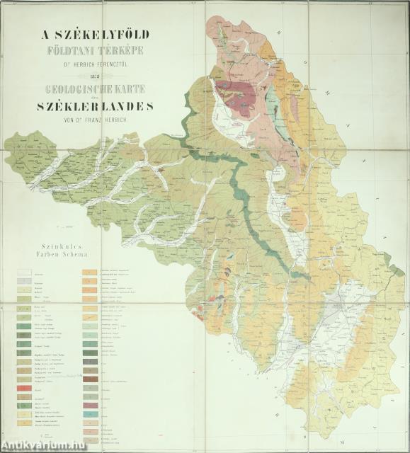 A Székelyföld földtani térképe. / Geologische Karte des Széklerlandes. (politikai térkép) Készítette: Dr. Herbich Ferencz.