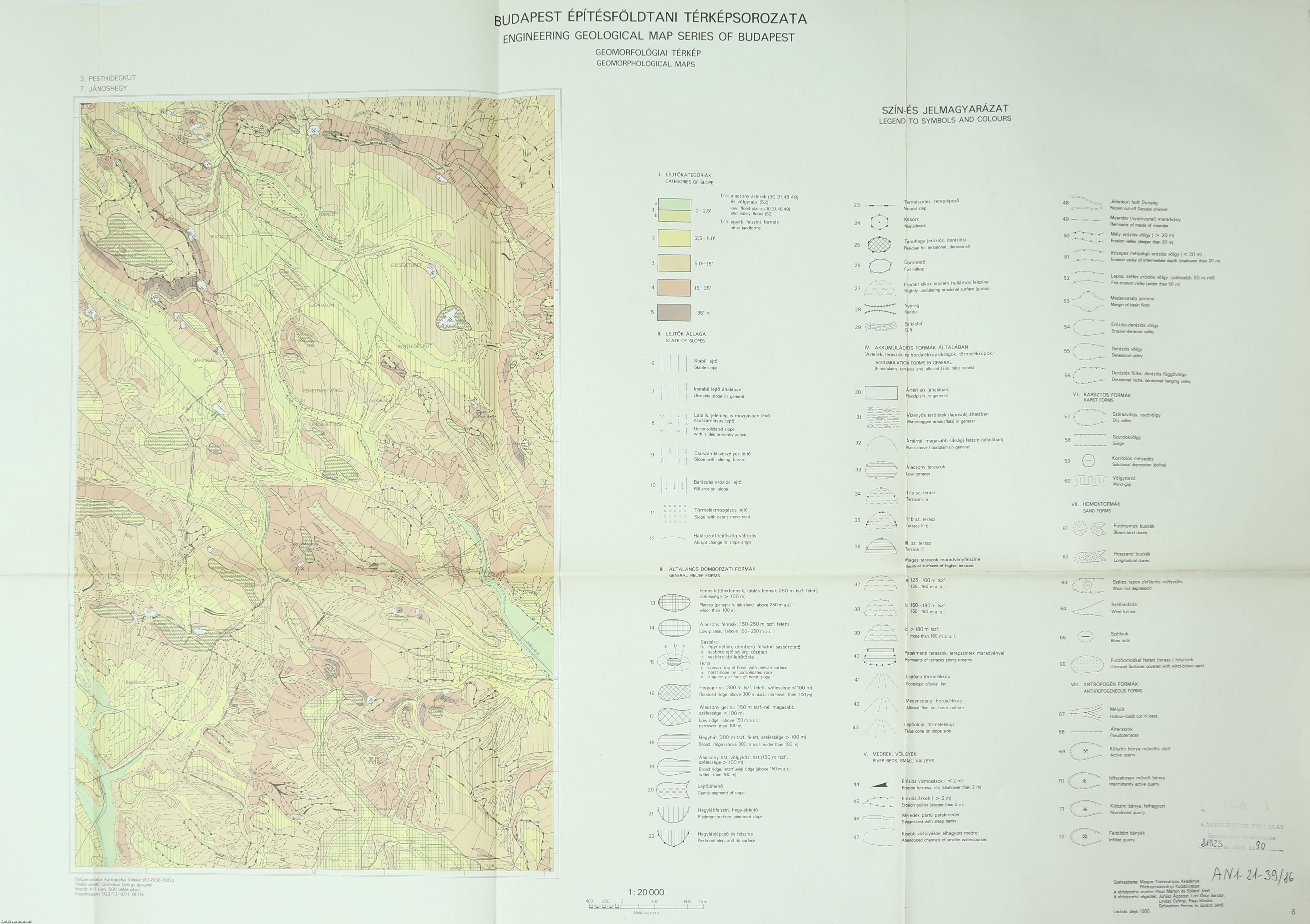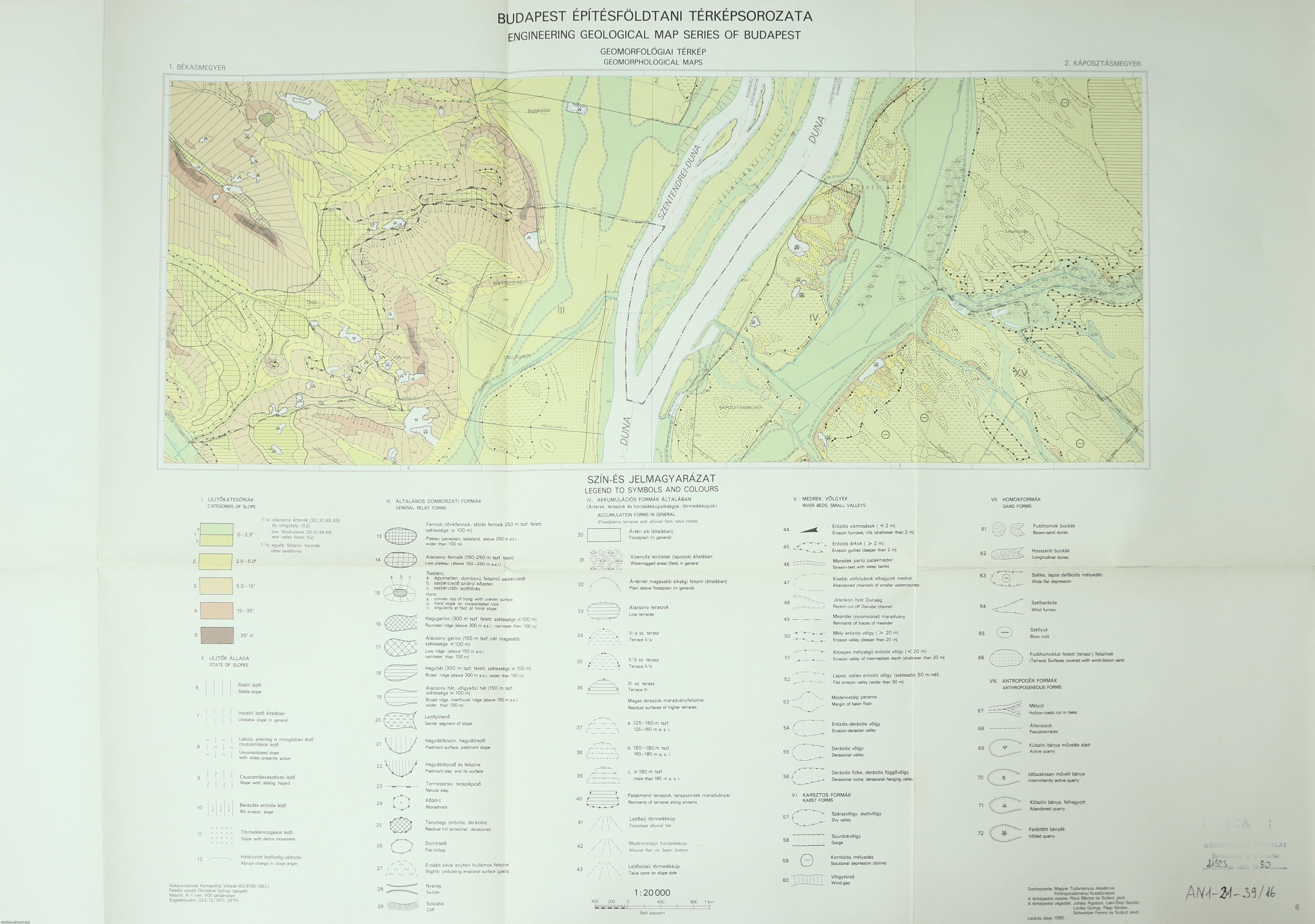 Budapest építésföldtani térképsorozata. Geomorfológiai térkép. / Engineering geological map series of Budapest. Geomorphological maps. Szerkesztette: Magyar Tudományos Akadémia Földrajztudományi Kutatóintézet.
