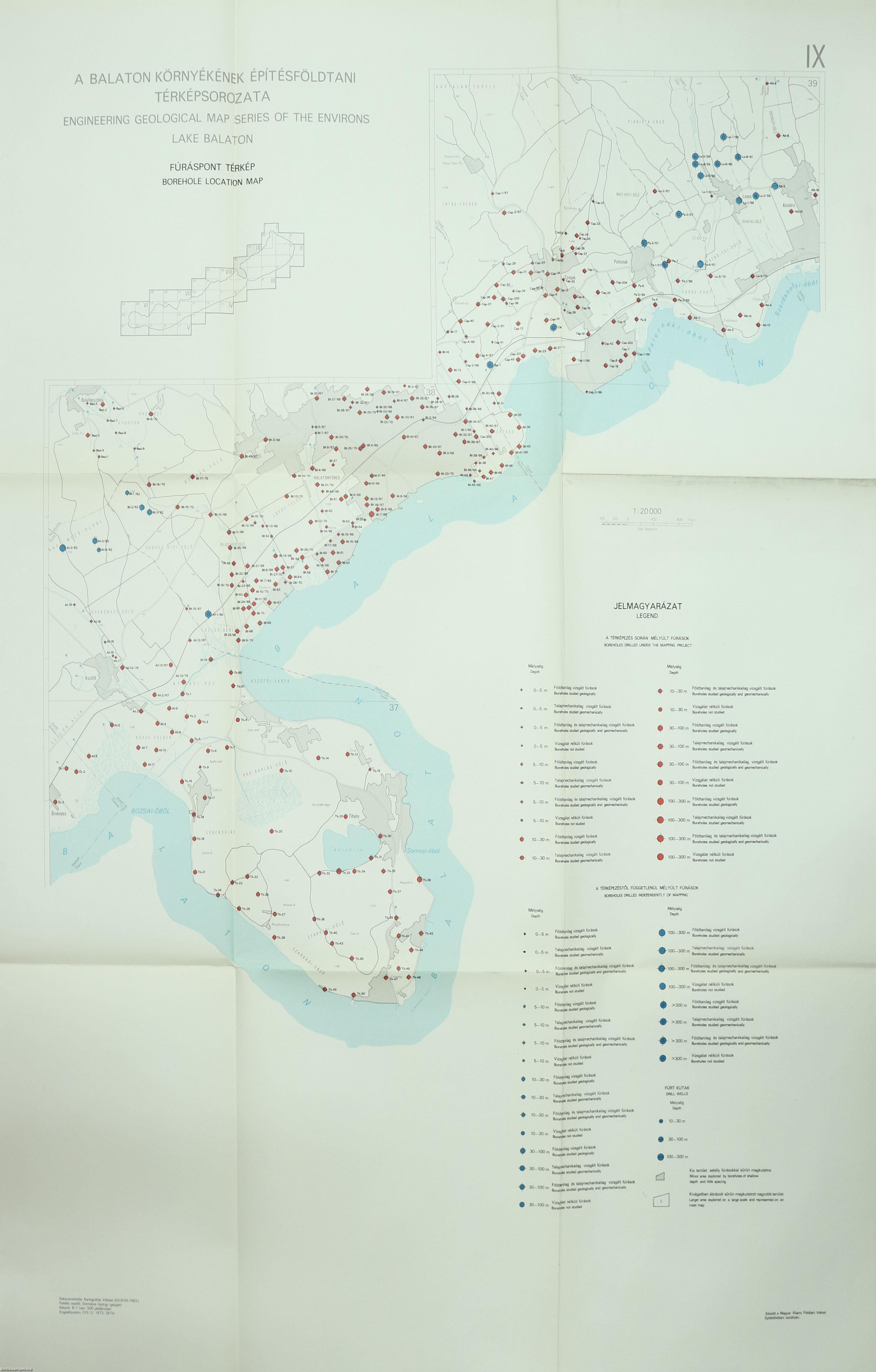 A Balaton környékének építésföldtani térképsorozata. Fúráspont térkép. / Engineering geological map series of the environs lake Balaton. Borehole location map. [Szerkesztette: Boros Jenő].