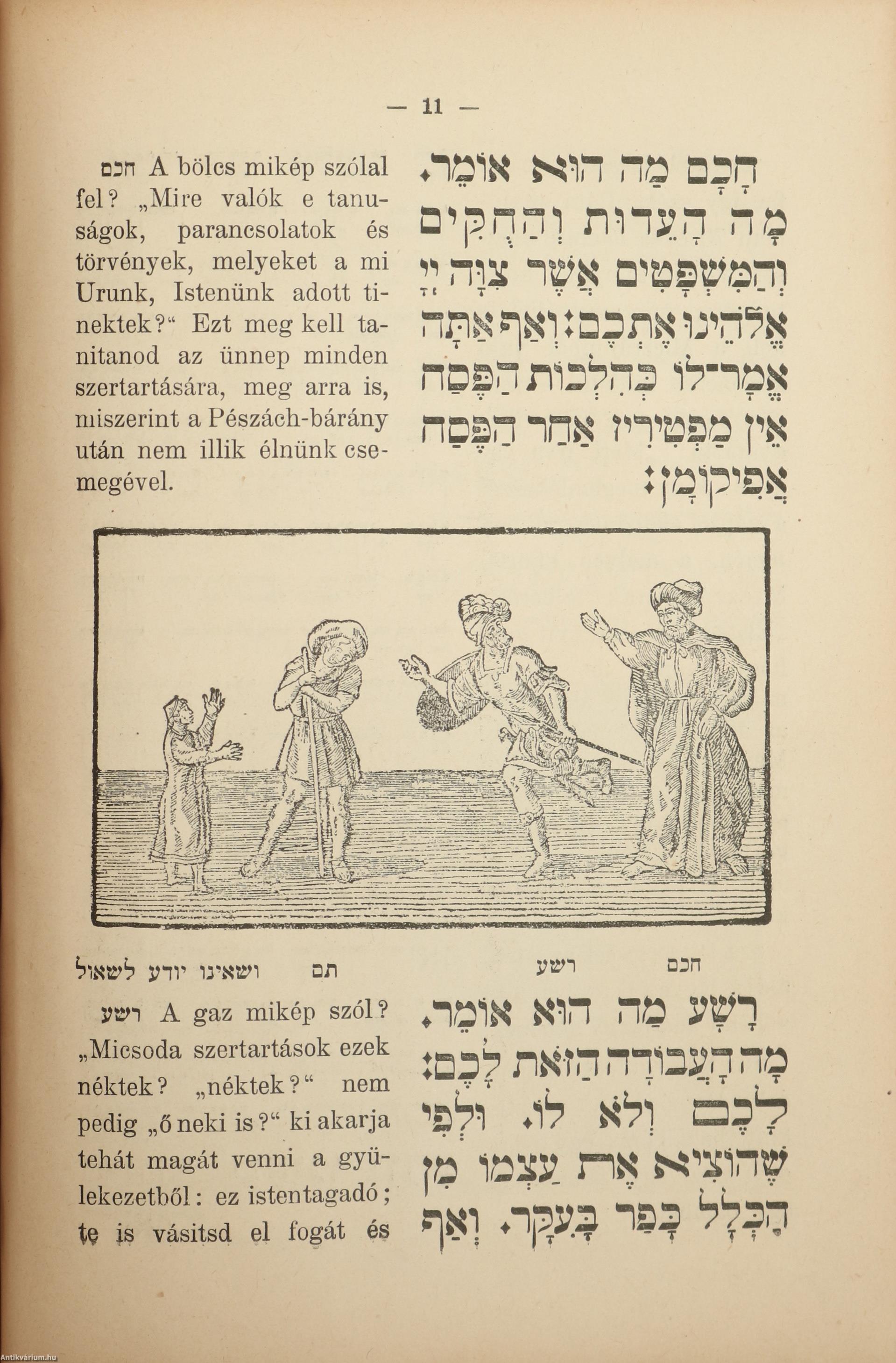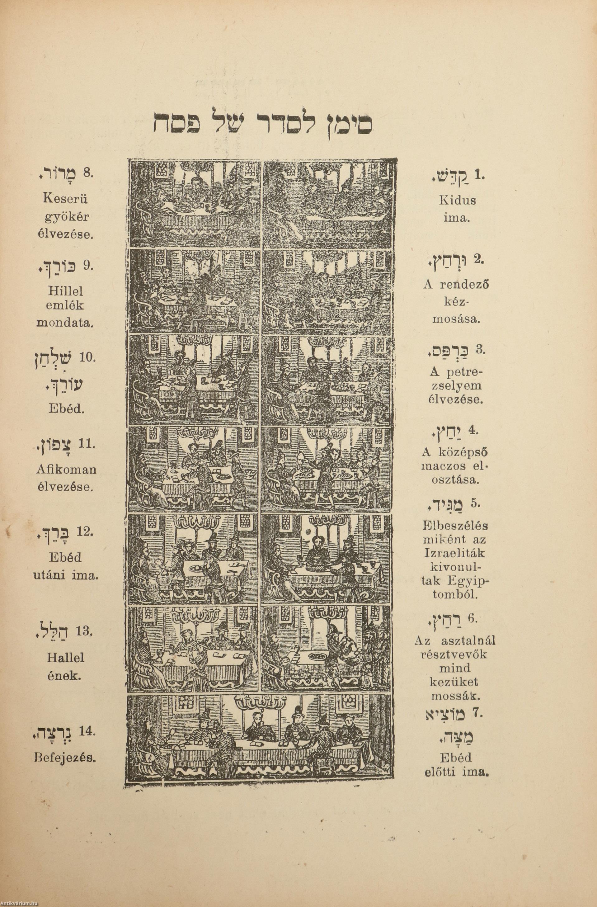 Héber és magyar nyelvű kiadás. Szöveg közti, fekete-fehér rajzokkal illusztrált kötet. Kiadja Schlesinger Jos. Könyvkereskedése. A hátlap belső oldalán és az előzéklapokon tulajdonosi bélyegzés látható.