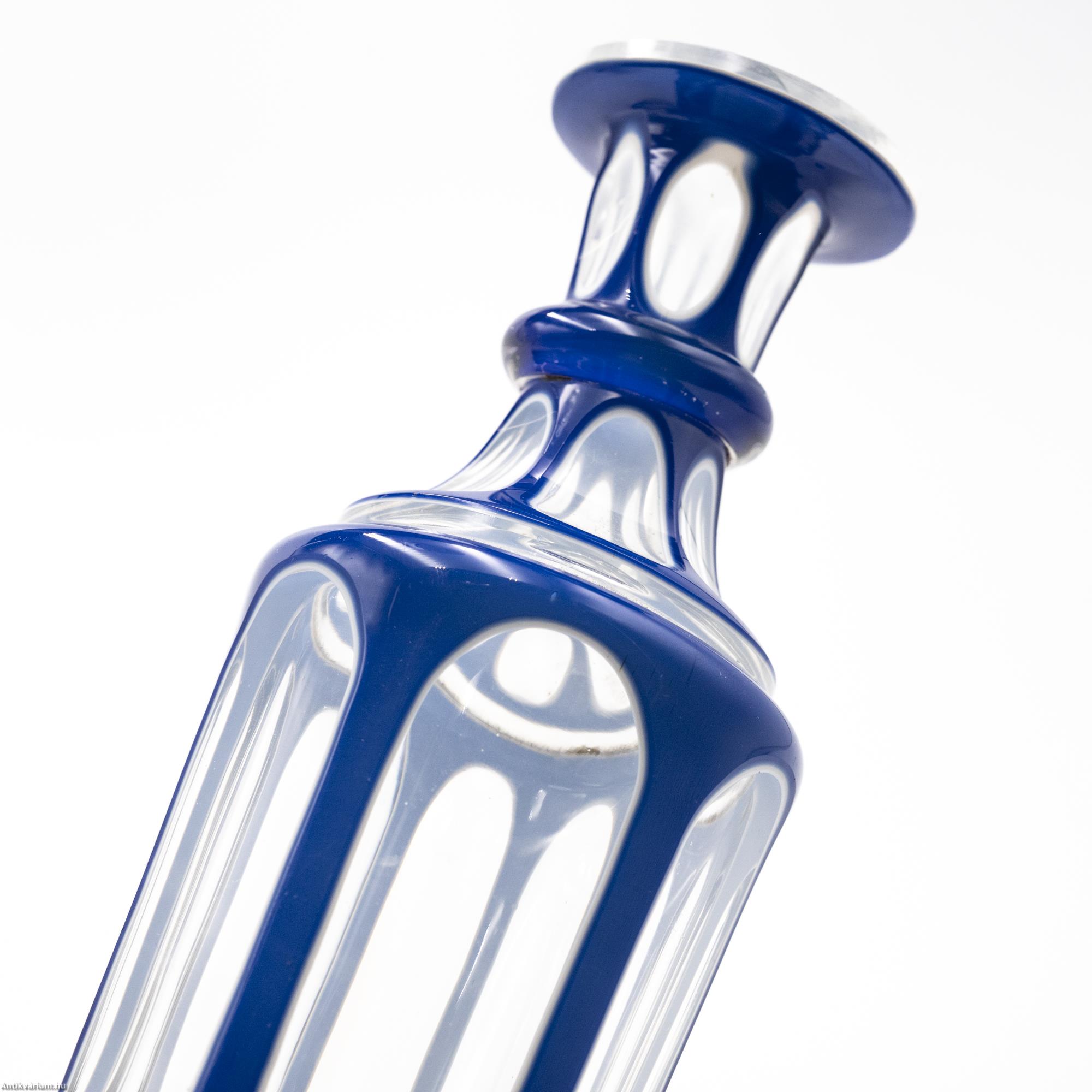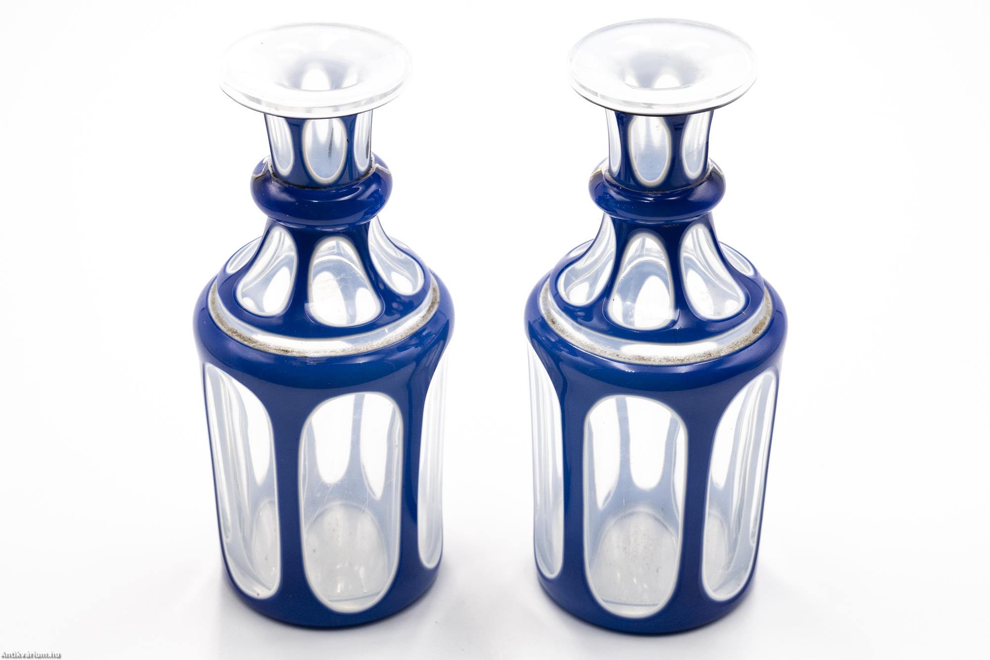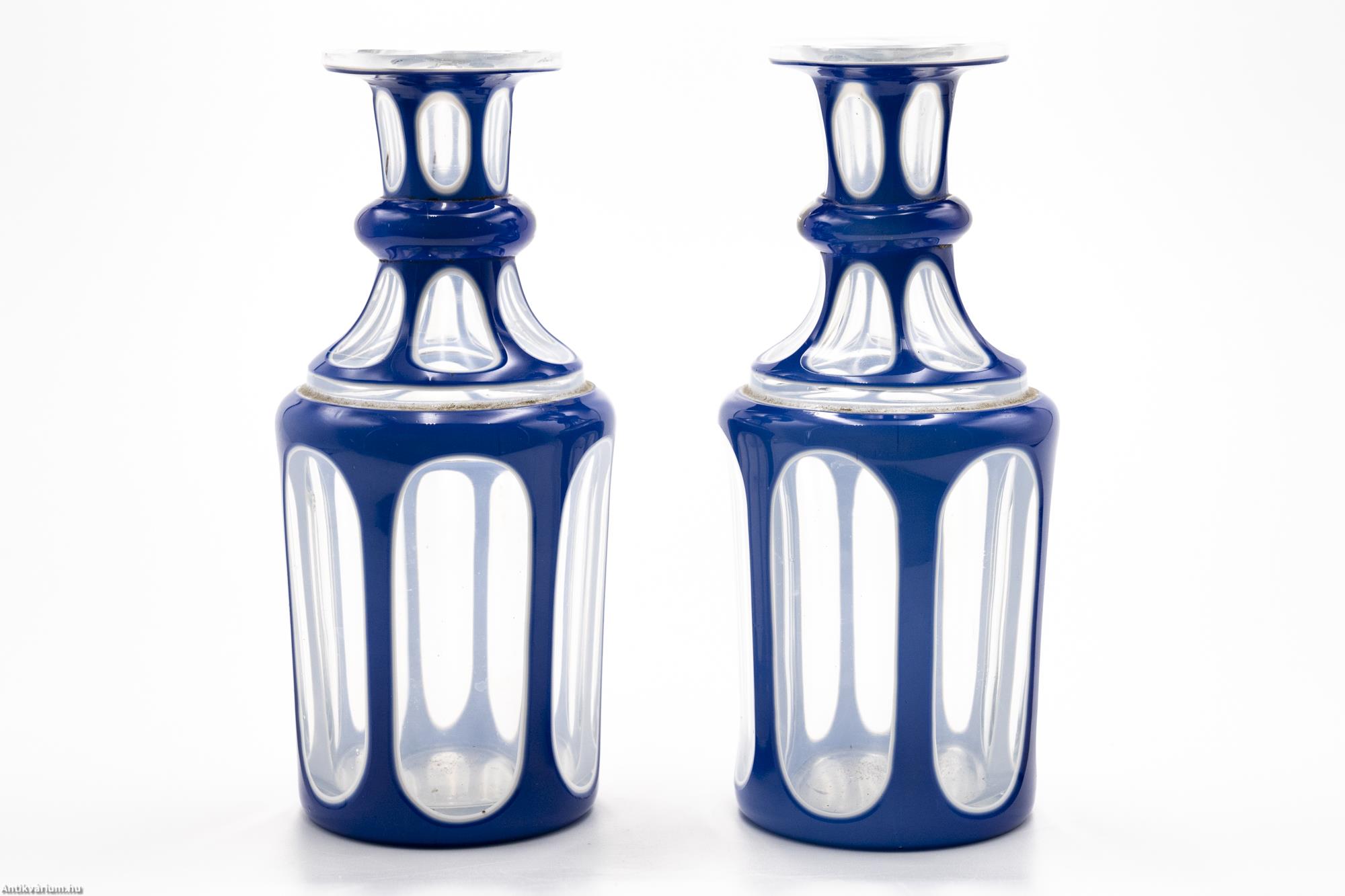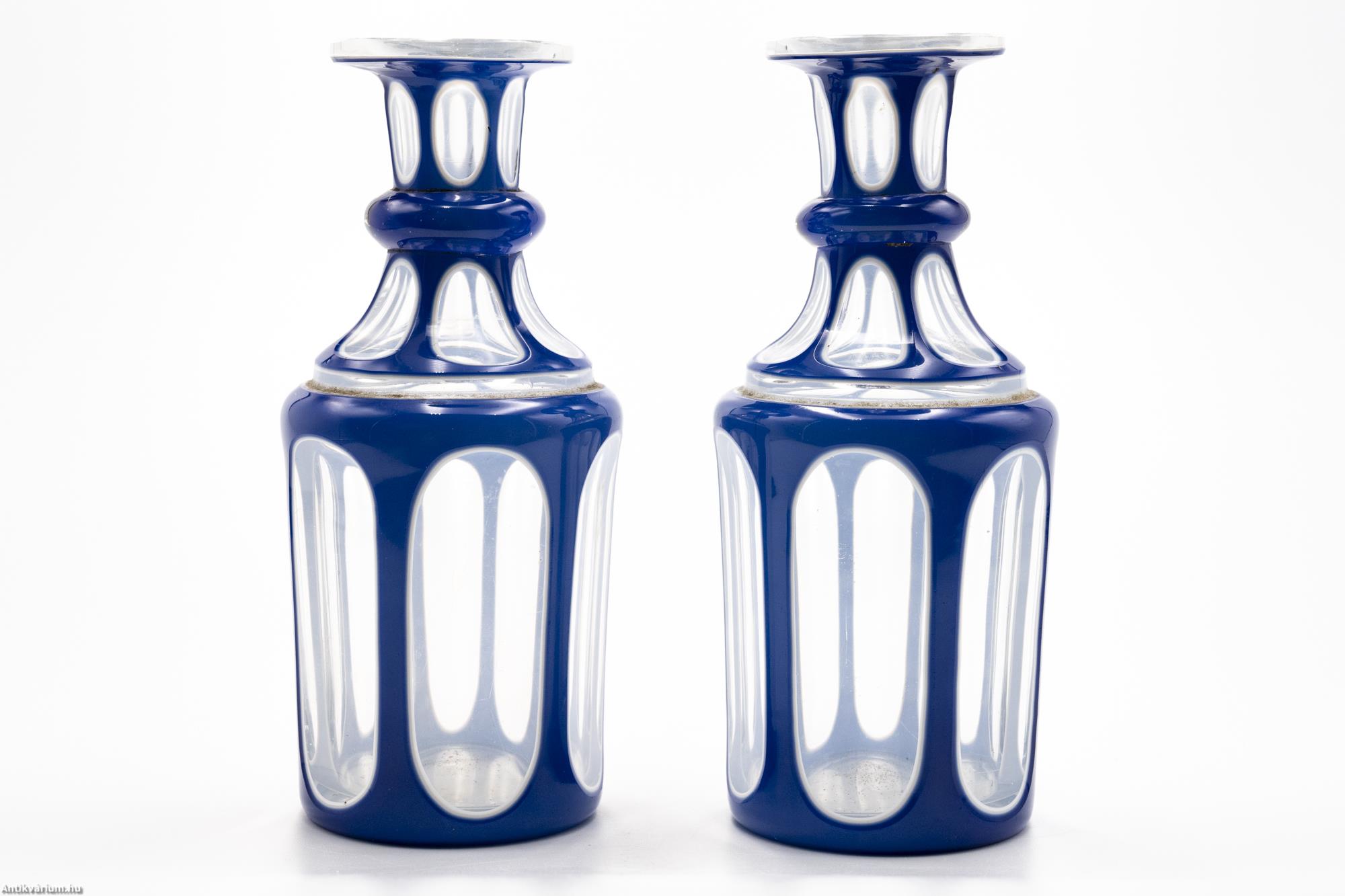 Biedermeier kék überfang üveg szett párban 1850