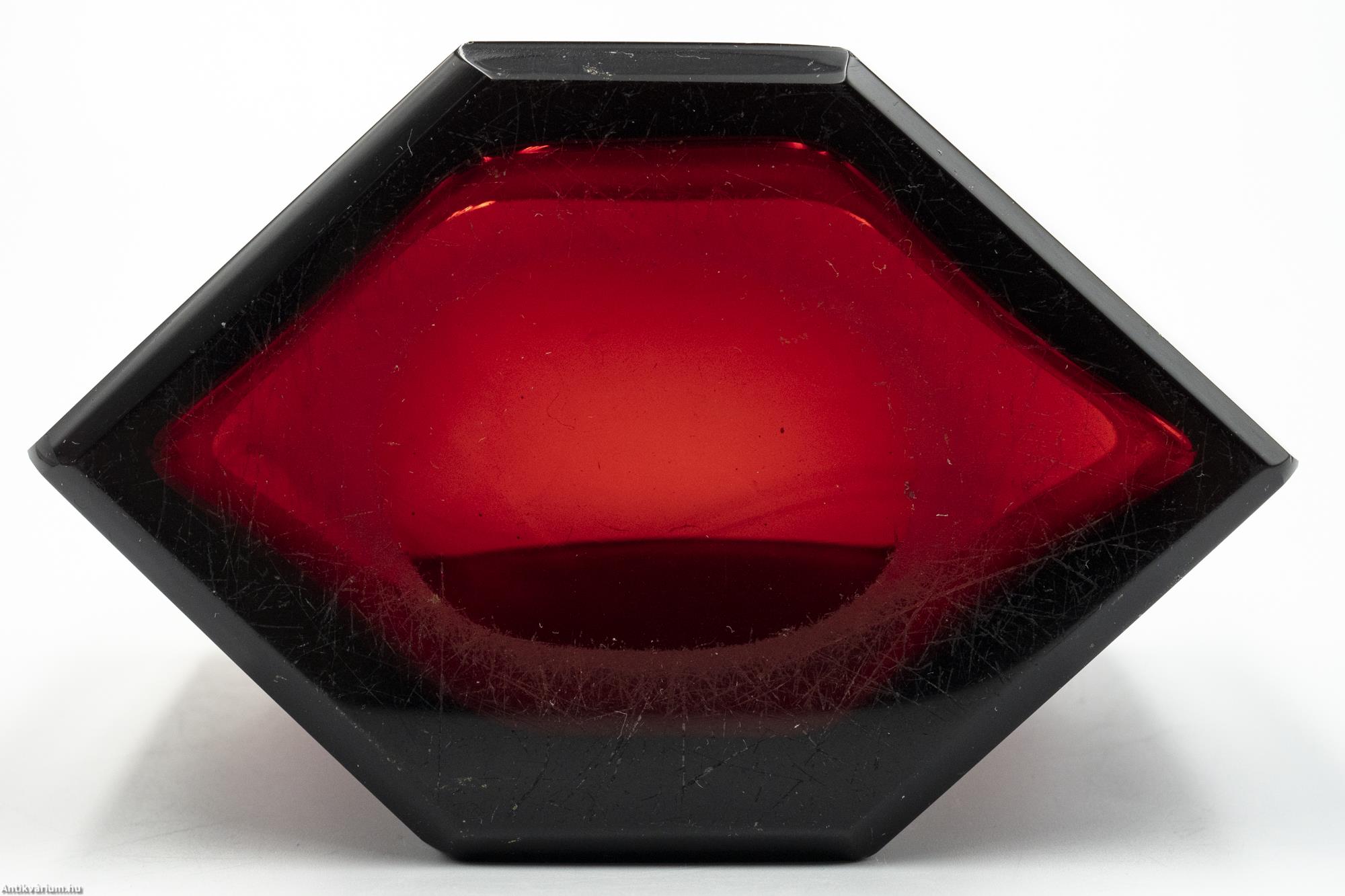 Moser csiszolt piros art deco üveg tál 20. század első fele