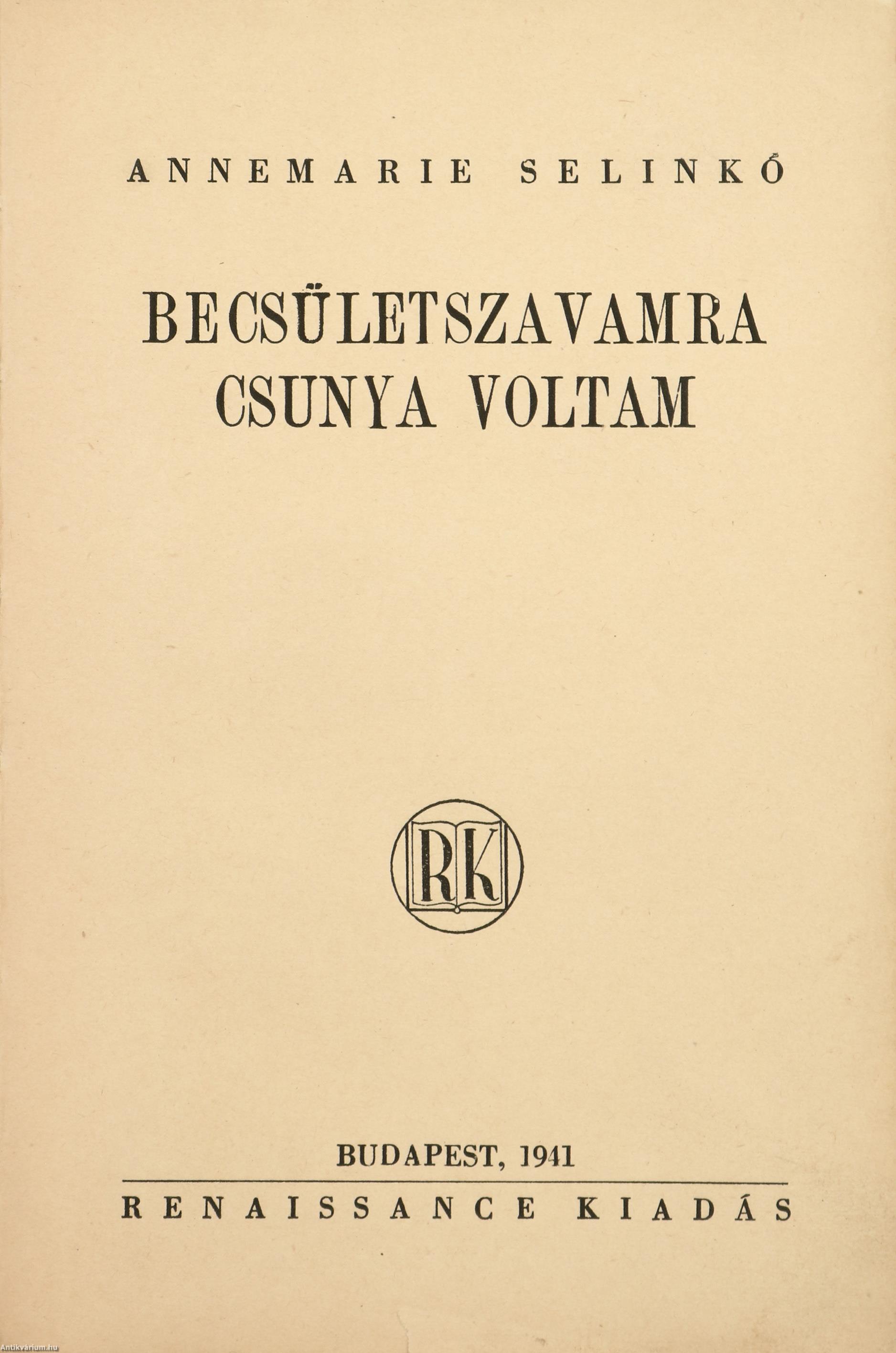 Becsületszavamra csunya voltam. Írta: Annemarie Selinkó. (Budapest, 1941, Renaissance Kiadás, 210 p. + [2] p.)