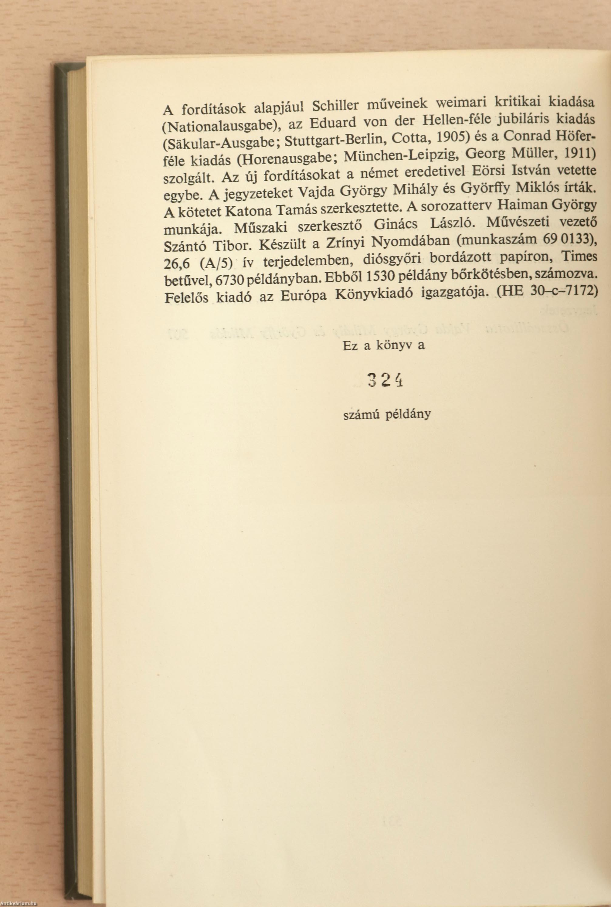 Eredeti műanyag, átlátszó, védőborítóval, Helikon könyvjelzővel. Készült a Zrínyi Nyomdában, 42 (A/5) ív terjedelemben, diósgyőri bordázott papíron, Times betűvel, 6730 példányban. Ebből 1530 bőrkötésben, számozva.