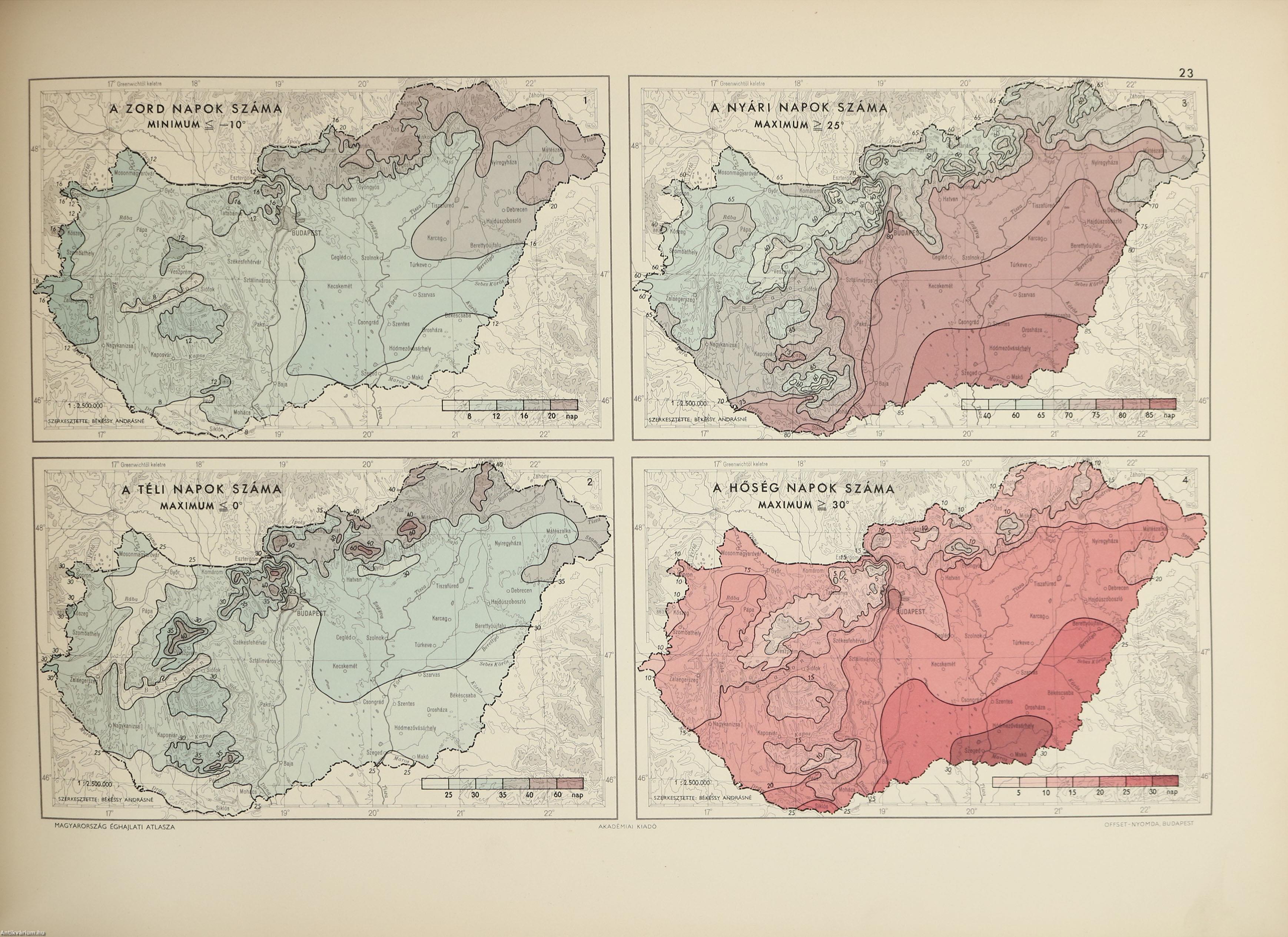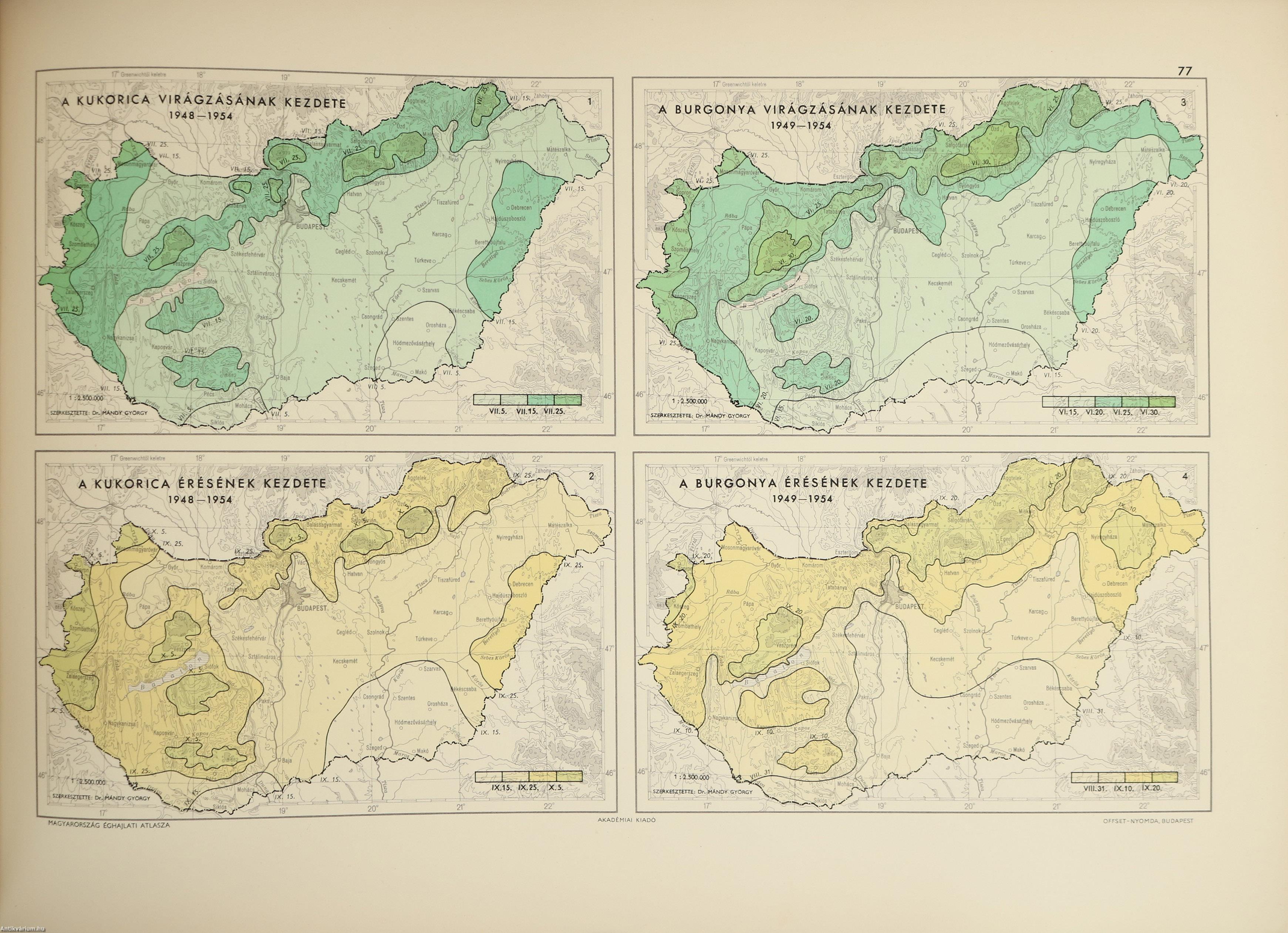 Budapest, 1960, Akadémiai Kiadó (Offset Nyomda-Akadémiai Nyomda, Bp.), 20 p. + 78 térk. (színes) + [76] mell. (részben színes)