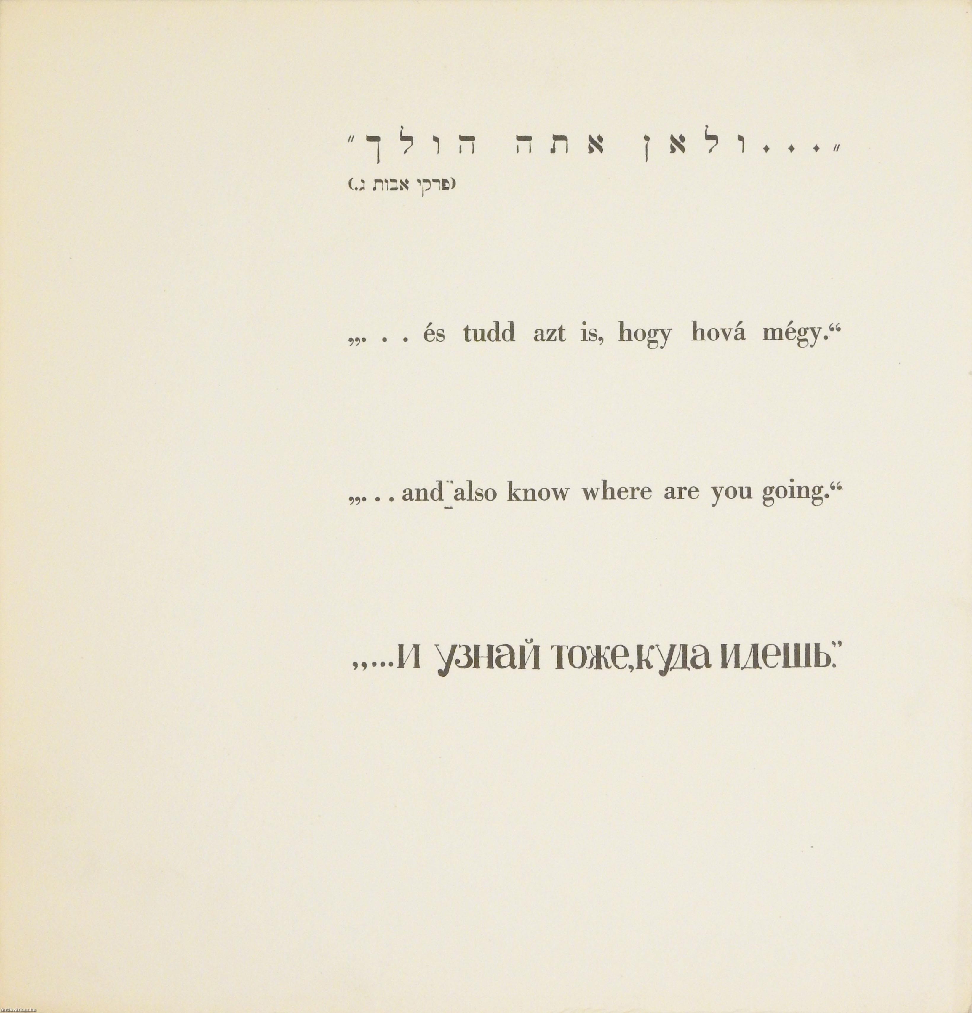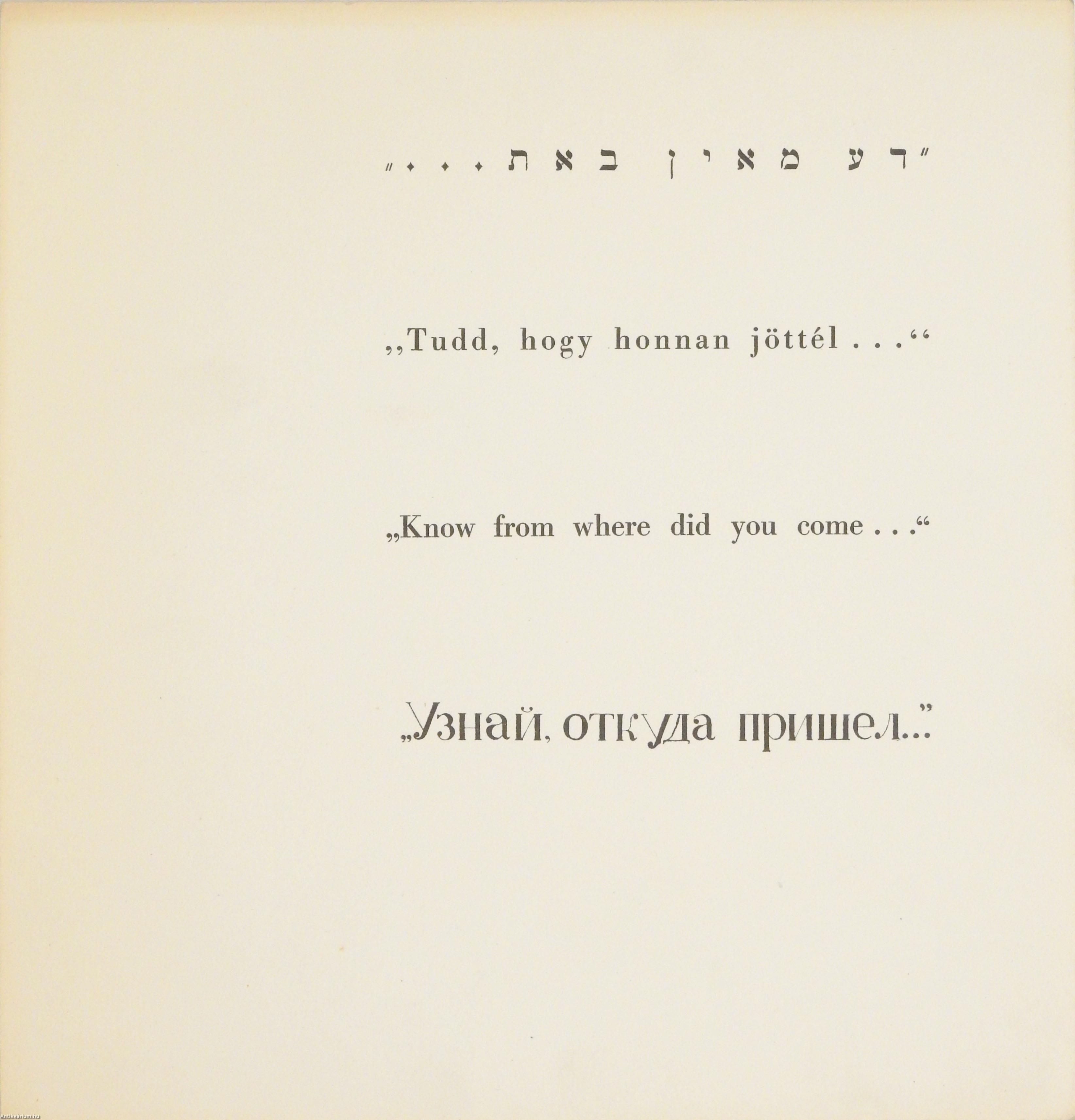 Első, bibliofil kiadás. "Tudd, hogy honnan jöttél..." Adler Miklós 16 fametszete.