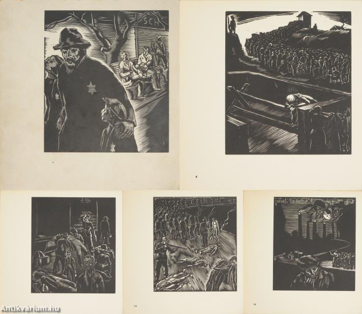 16 különálló táblán Adler Miklós eredeti fametszeteit tartalmazó album. Négynyelvű (magyar-héber-angol-orosz) kísérőszöveggel. Nyomtatta a "Szabadság" Nyomda, Debrecenben. A kiadói mappa belsejében tollal írt ajándékozási bejegyzés látható.