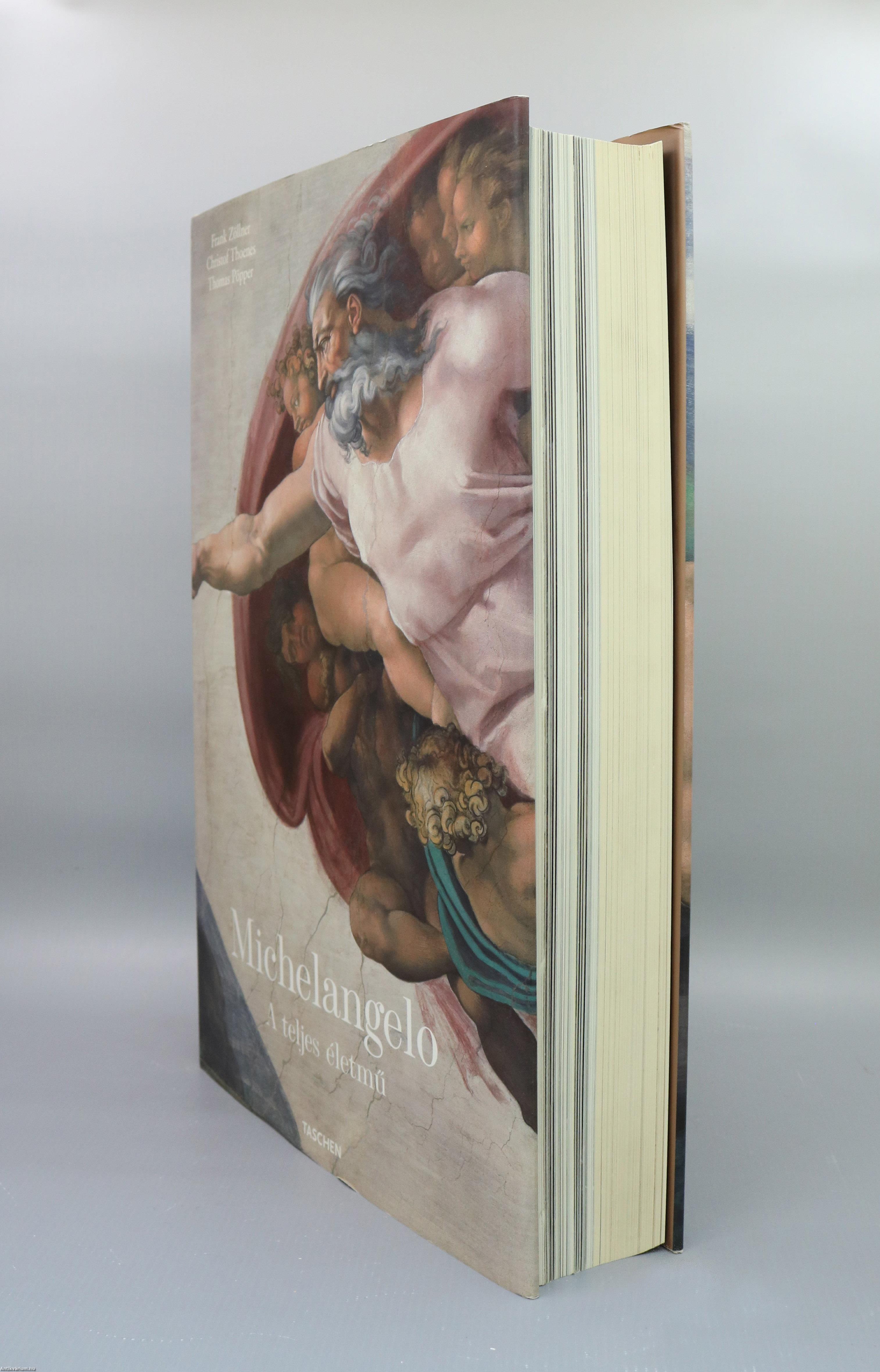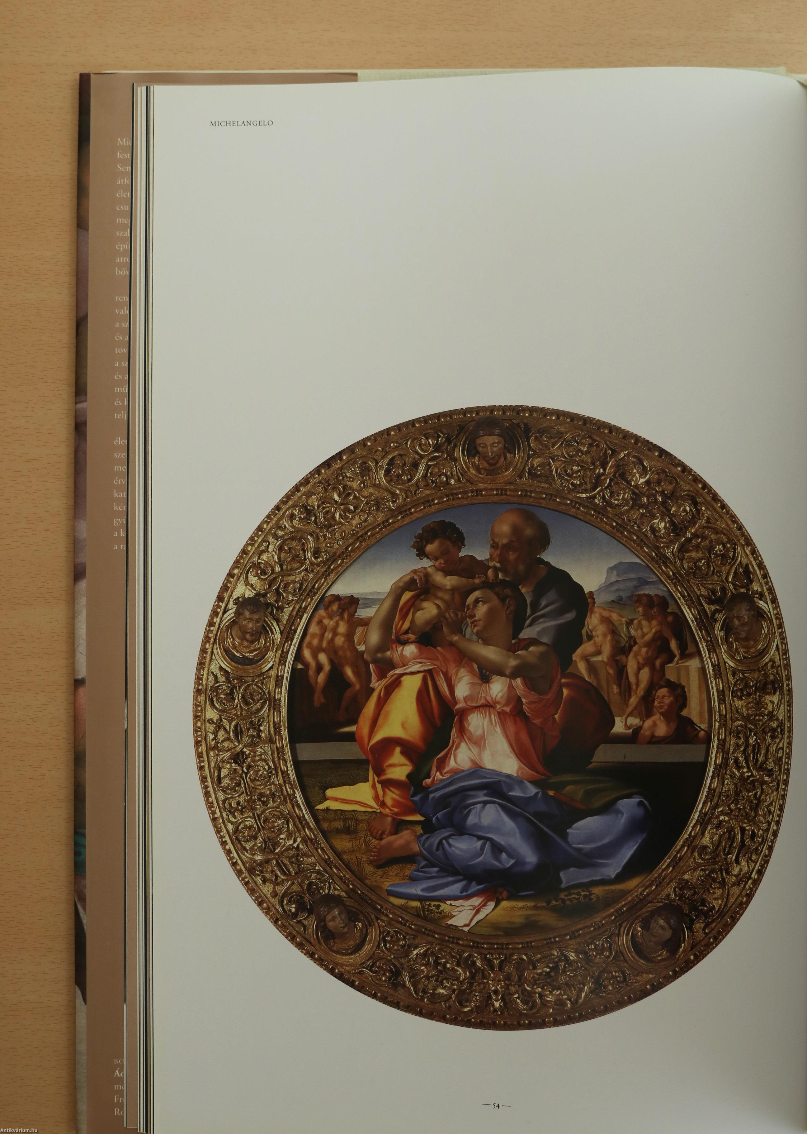 Michelangelo Buonarroti (1475-1564) szobrászi, festői, építészi és rajzolói teljesítménye egyedülálló. Sem előtte, sem utána nem élt művész, aki olyan átfogó, sokrétű és szinte valamennyi műfajt felölelő életművet hozott volna létre. Mind a mai napig csupán igen kevés szobrásznak vagy festőnek adatott meg hasonló társadalmi státusz, illetve művészi szabadság, mint neki. Monumentális szobrai, építészeti tervei és a Sixtus-kápolna freskói is mind arról az alkotói szabadságról tanúskodnak, amely bőven túllépte az akkor megszokott határokat. E könyv kísérletet tesz arra hogy Michelangelo rendkívüli munkásságát írásban és képekben valóan átfogóan bemutassa. A kötet két részből áll: a számos reprodukcióval illusztrált, a művész életét és alkotásait ismertető első részből, illetve a négy további fejezetből álló katalógusból - ez utóbbi a szobrokat, festményeket, építészeti alkotásokat és a grafikai anyagot is elemzi. Michelangelo életművének eddig még nem készült olyan bemutatása és kritikai feldolgozása, amely rendszerében és teljességében ehhez a könyvhöz hasonlítana.