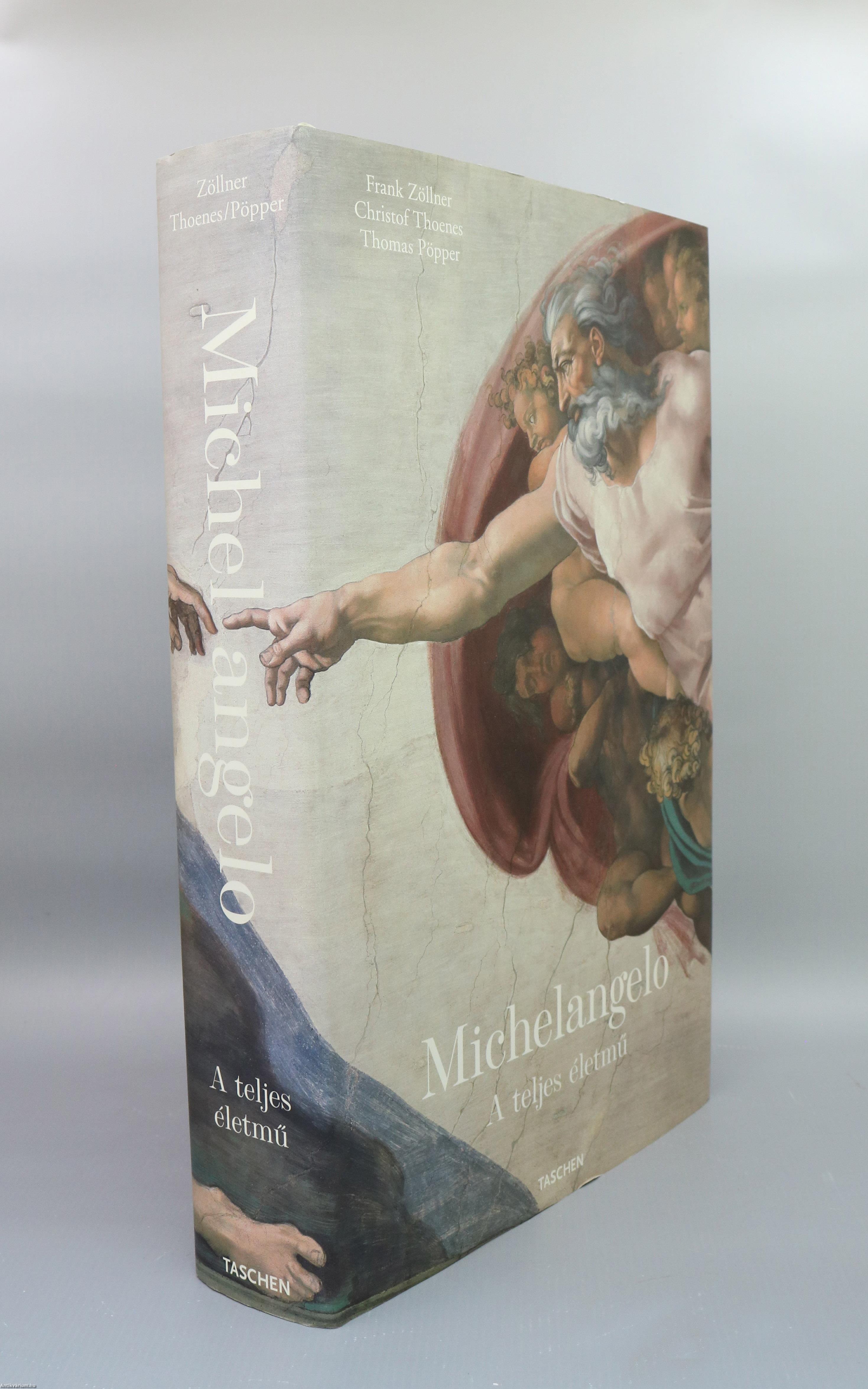 E könyv kísérletet tesz arra, hogy Michelangelo rendkívüli munkásságát írásban és képekben valóban átfogóan bemutassa. A kötet két részből áll: a számos reprodukcióval illusztrált, a művész életét és munkásságát ismertető első részből, illetve a négy további fejezetből álló katalógusból – ez utóbbi a szobrokat, festményeket, építészeti alkotásokat és a grafikai anyagot is elemzi. Michelangelo életművének eddig még nem készült olyan bemutatása és kritikai feldolgozása, amely rendszerében és teljességében ehhez a könyvhöz hasonlítana.