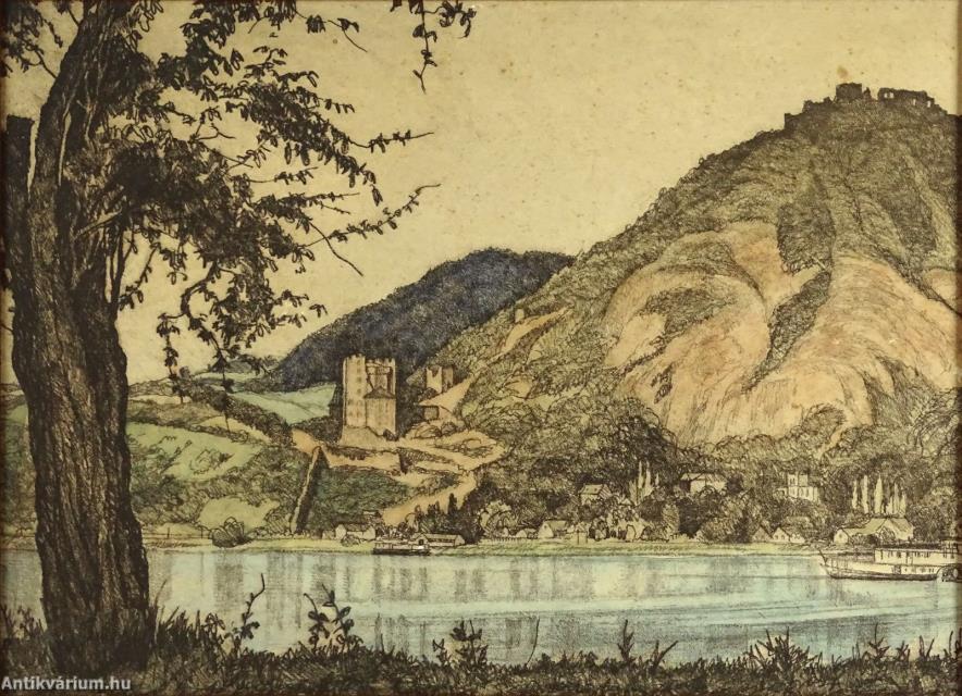Jelzés nélkül, a kép hátoldalán: Visegrádi vár rézkarc 1927-ből, akvarellel színezett rézkarc, papír.