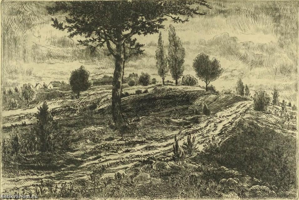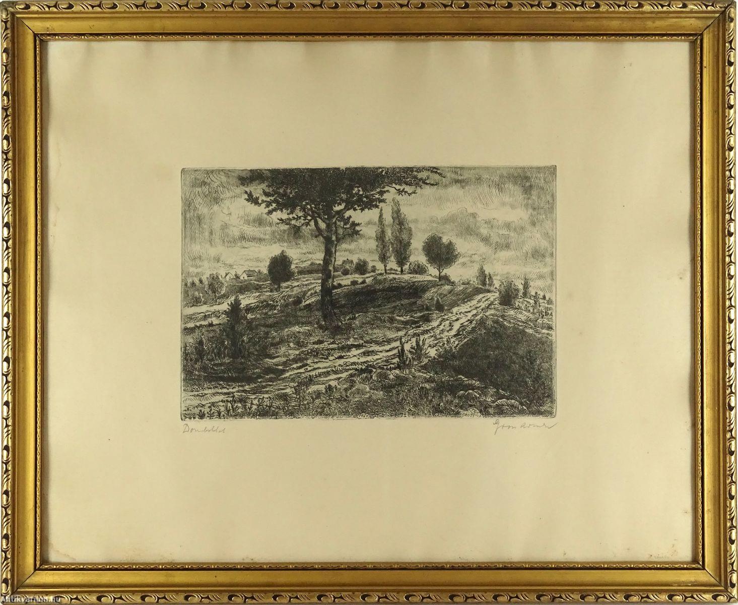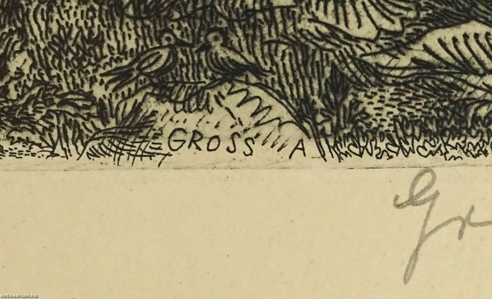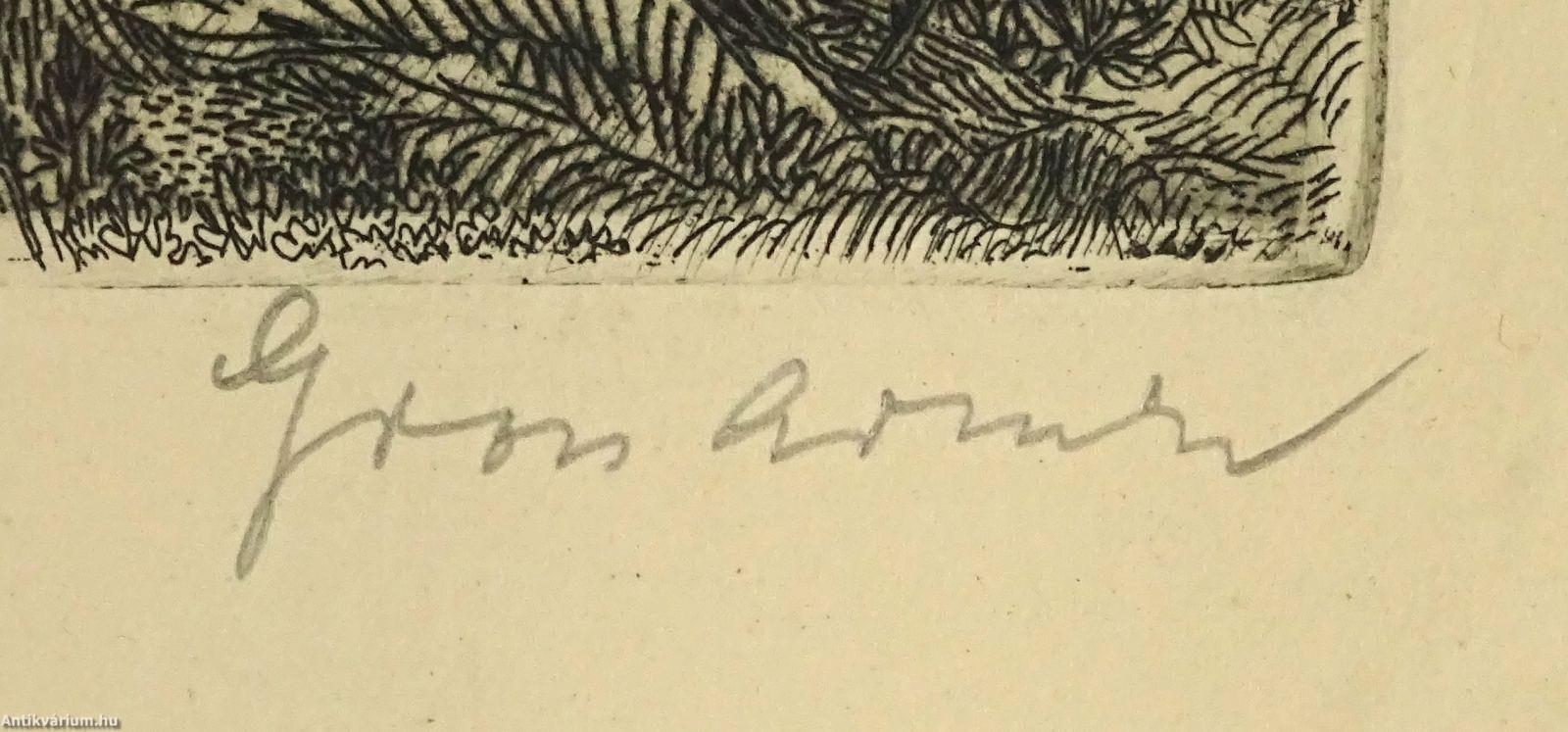 Jelezve balra lent: Domboldal (ceruzával), jobbra lent: Gross Arnold (ceruzával), jobbra lent a karcon: Gross A, rézkarc, papír.