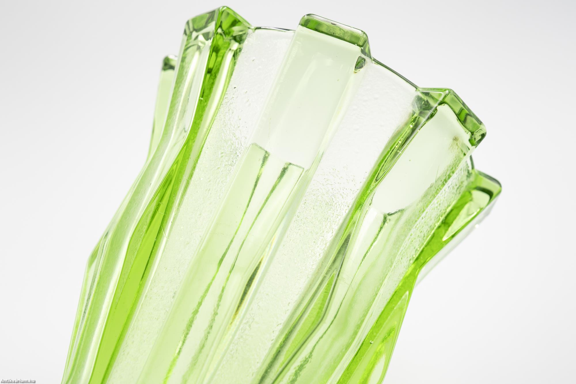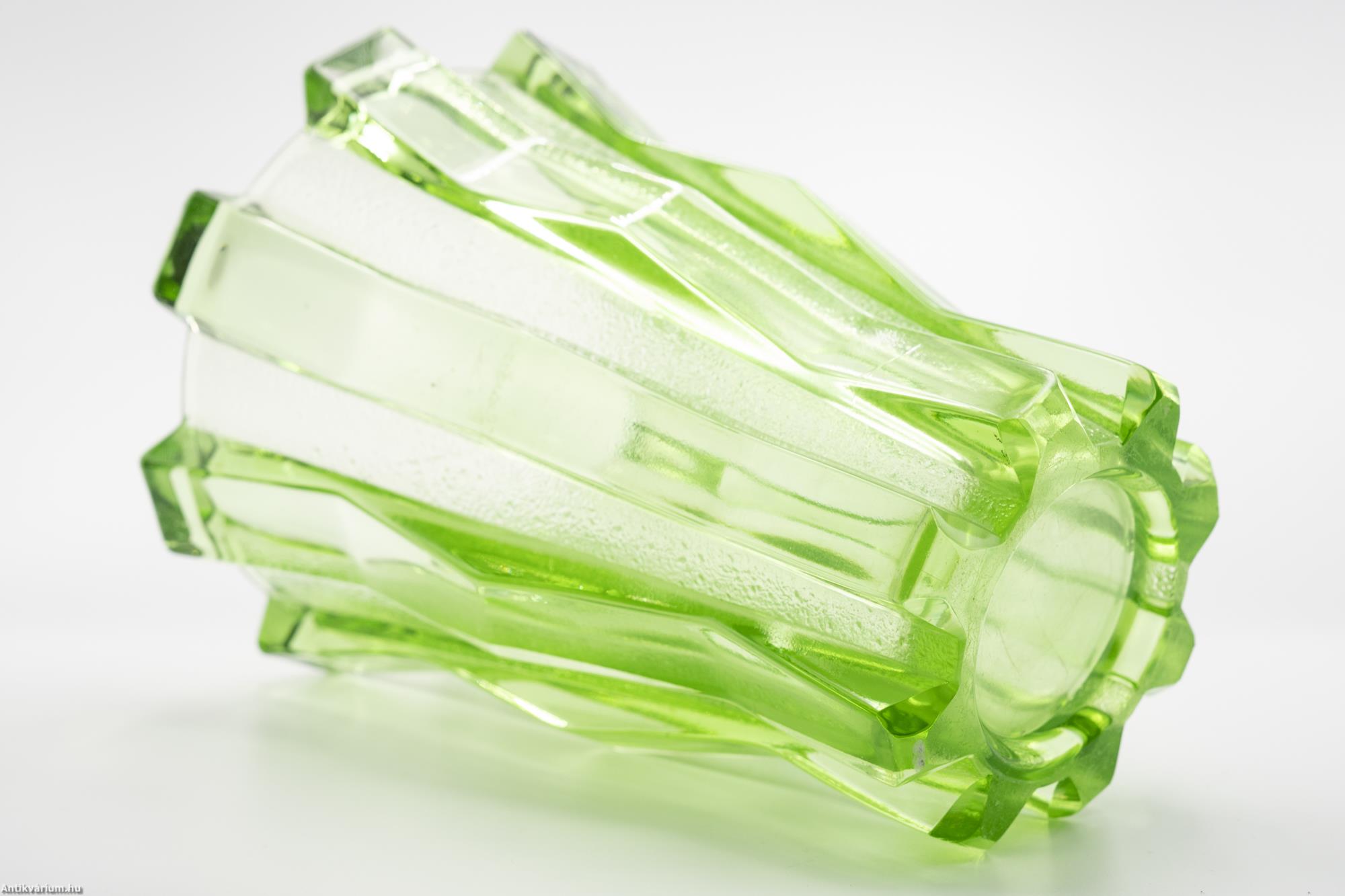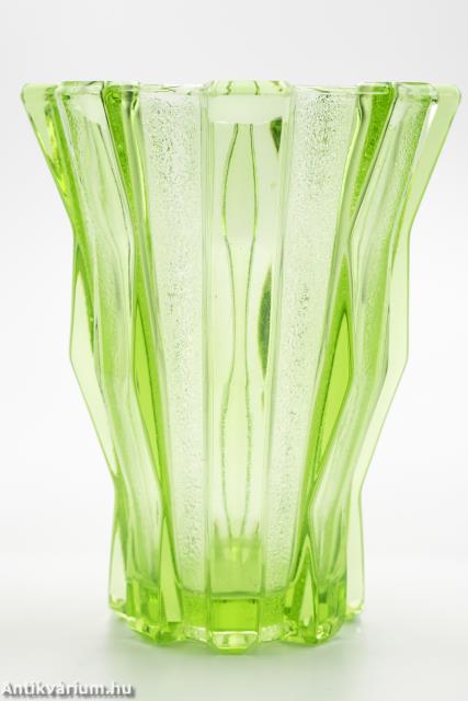 Art deco uránzöld préselt üveg váza 20. század első fele