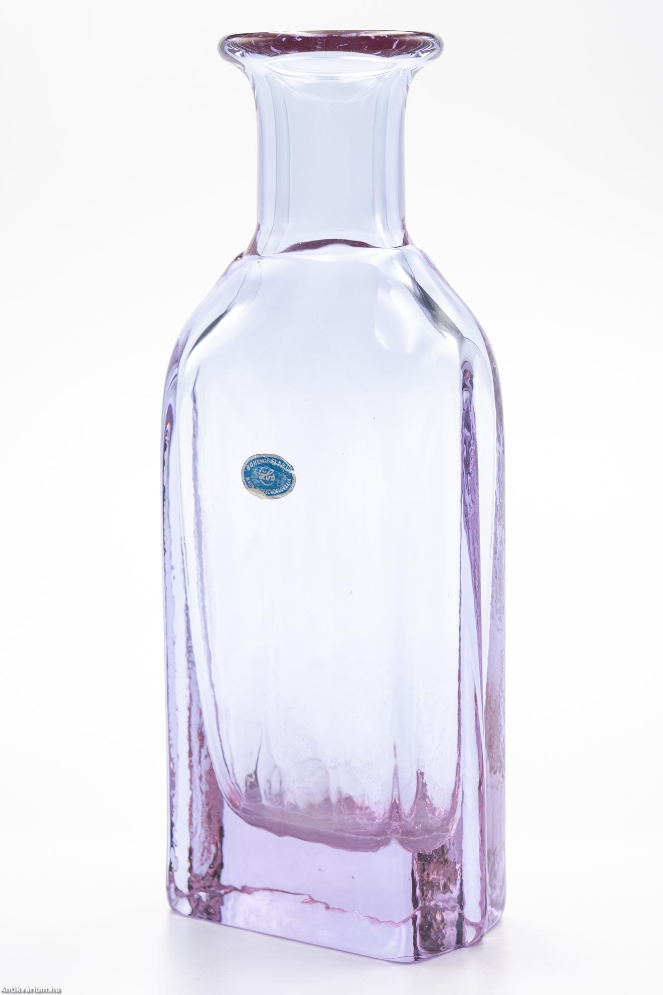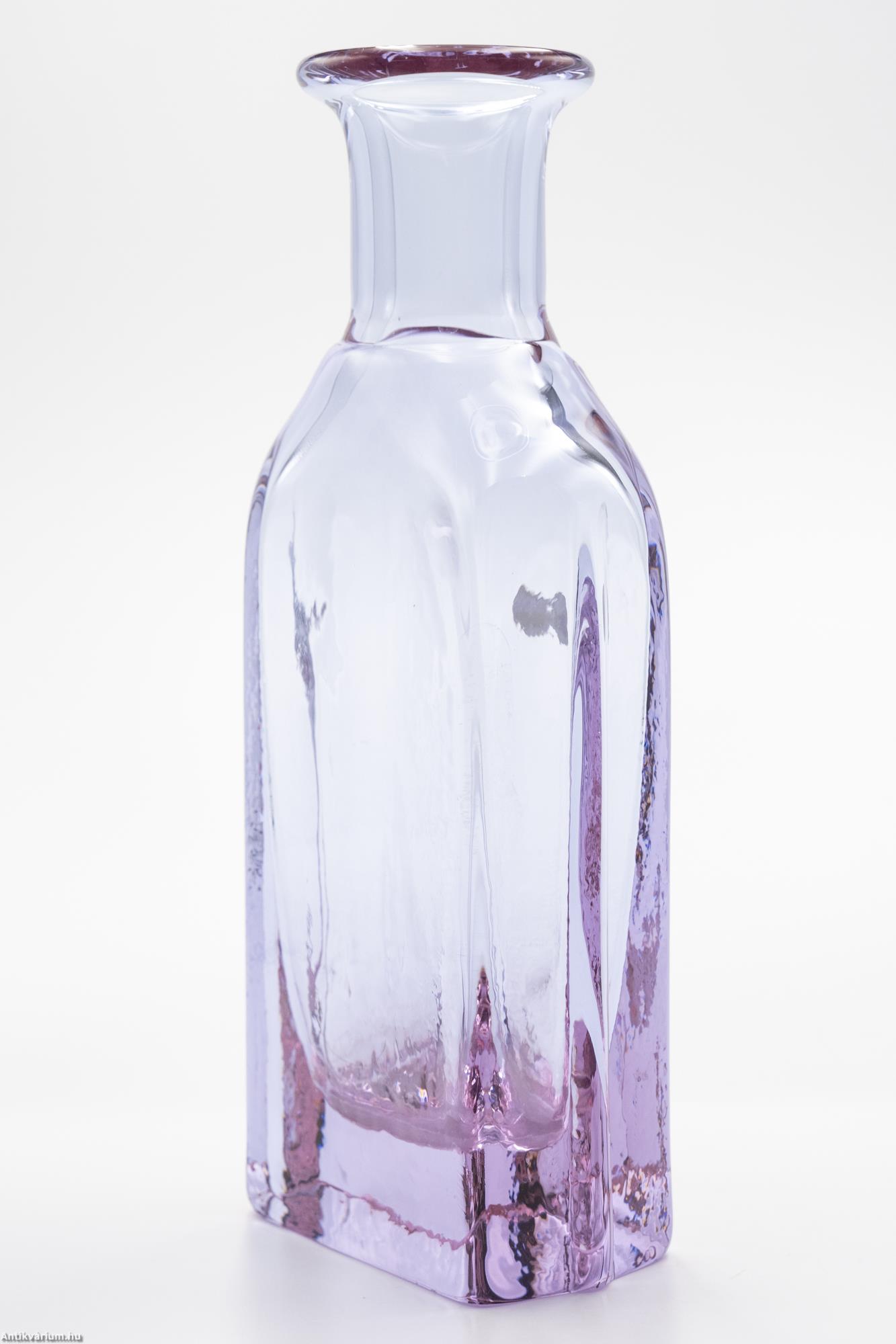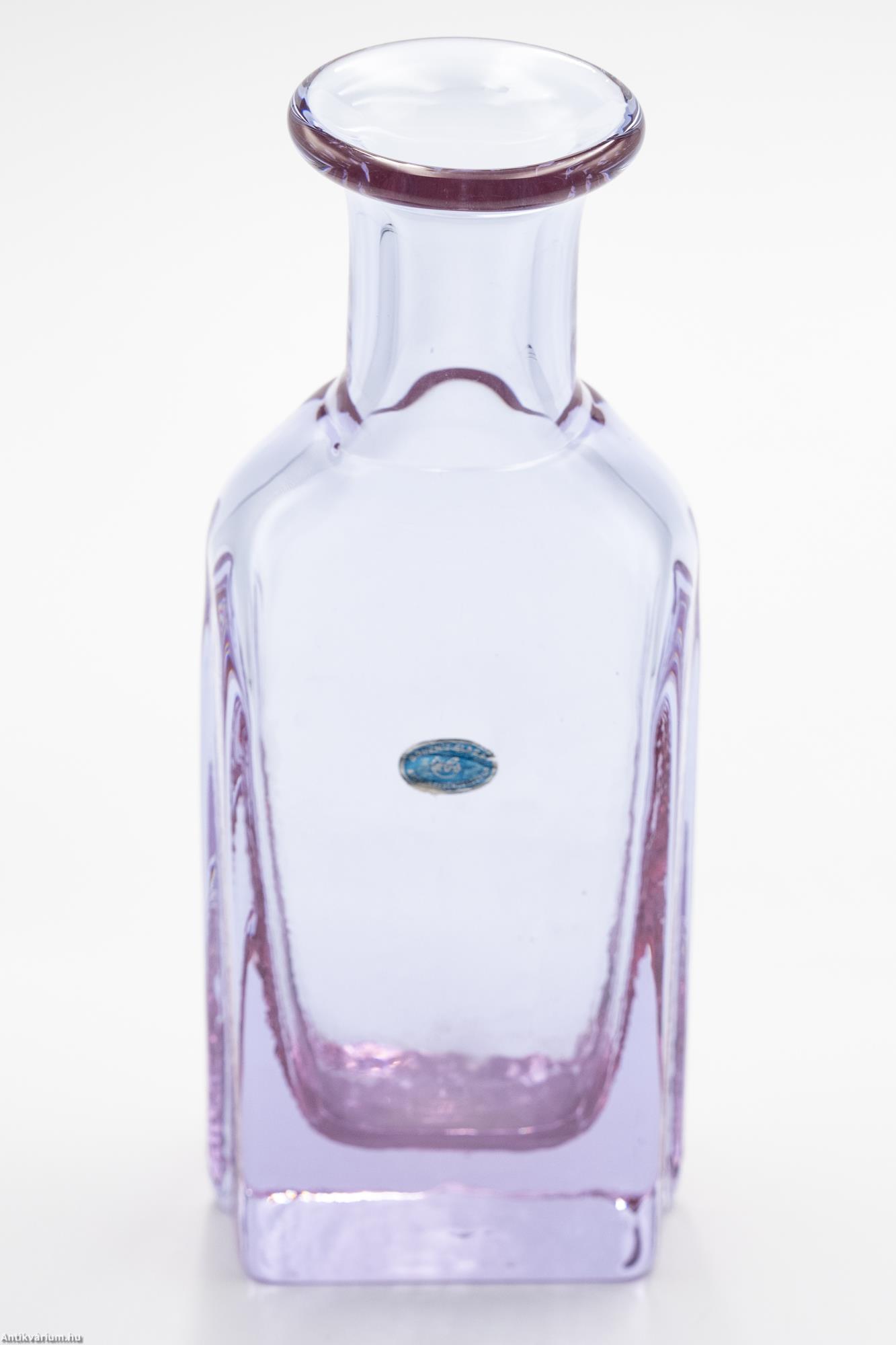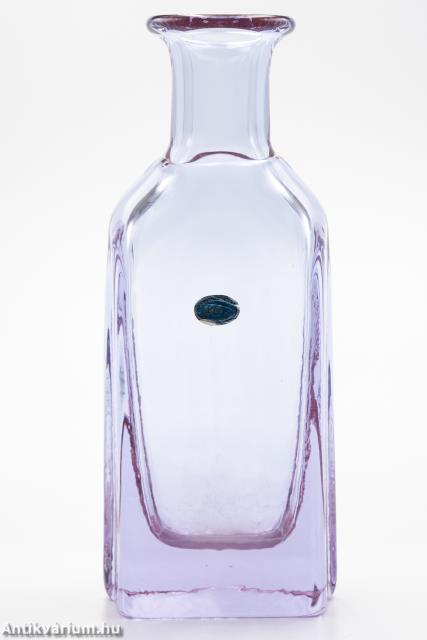 Hibátlan állapotú, fújt és kézzel formázott cseh Zelezny Brod Neodymium Glass cseh jelzett lila üveg váza a 20. század második feléből. Monokróm üveg dísztárgy pasztell lila színben. Tömör üvegből készült palack formájú üveg váza, talpán különösen vastag üvegréteggel. Jelzett alkotás, oldalán kék színű papíretikett látható : "Bohemia Glass Made in Czechoslovakia" felirattal. A neodímium üveg (más néven Alexandrit üveg) a különböző fényviszonyoknak megfelelően változtatja a színét. A lila, rózsaszín és kék árnyalatai az üvegkeveréktől függően nagyon eltérőek lehetnek.