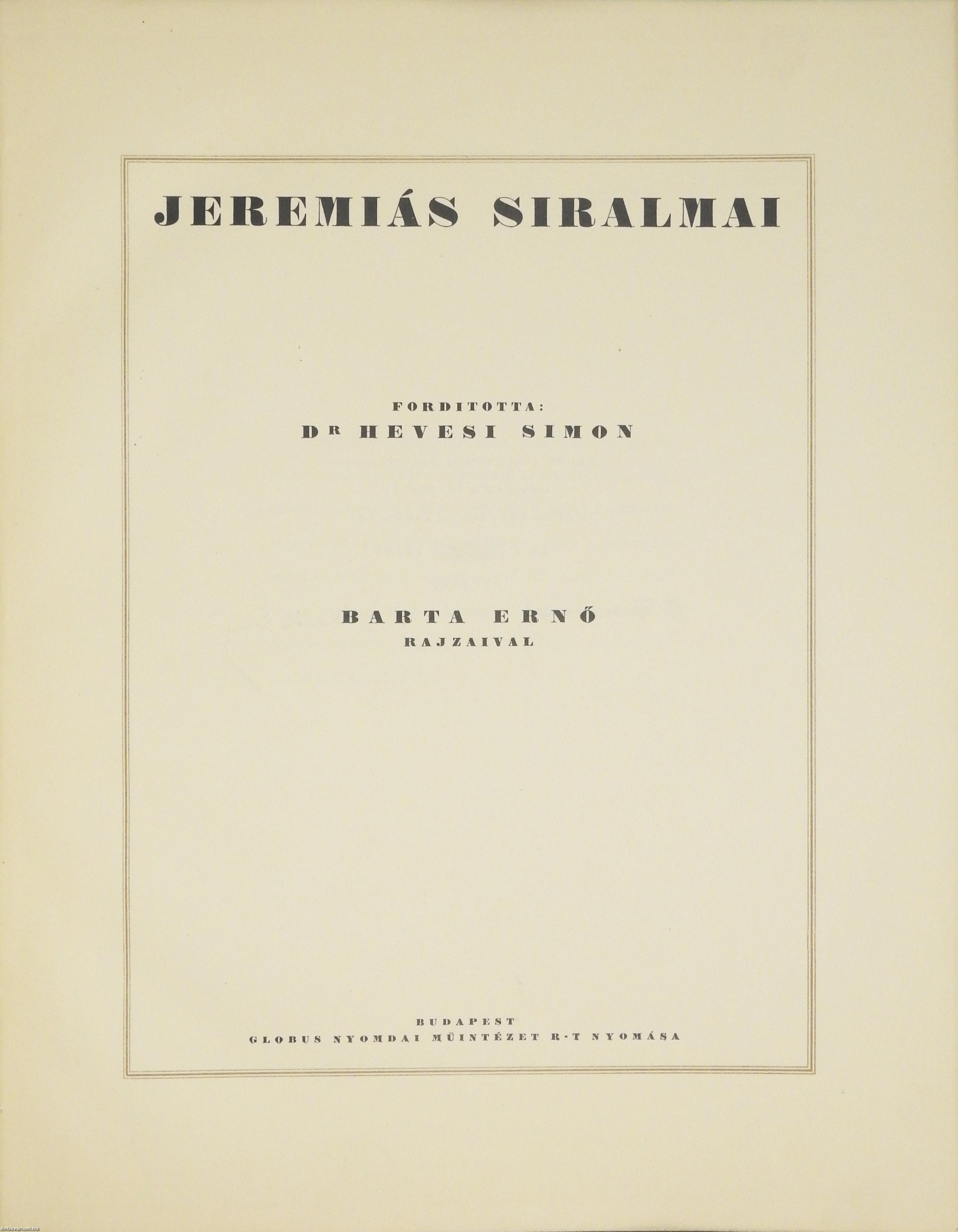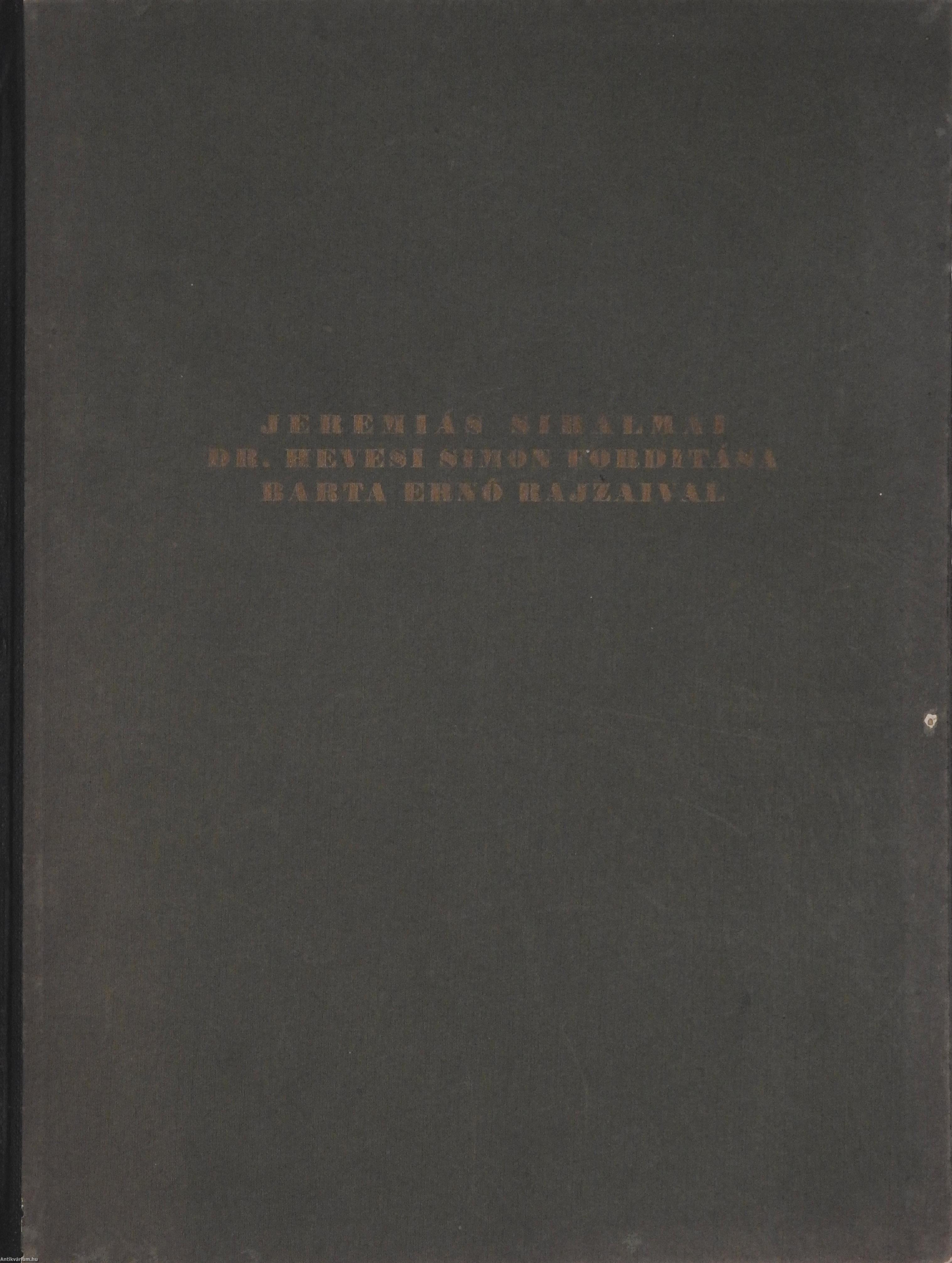 Hevesi Simon, Dr.: Jeremiás siralmai (aláírt, számozott példány) (Barta Ernő rajzaival.) (Összesen 200 példányban készült kiadvány.)