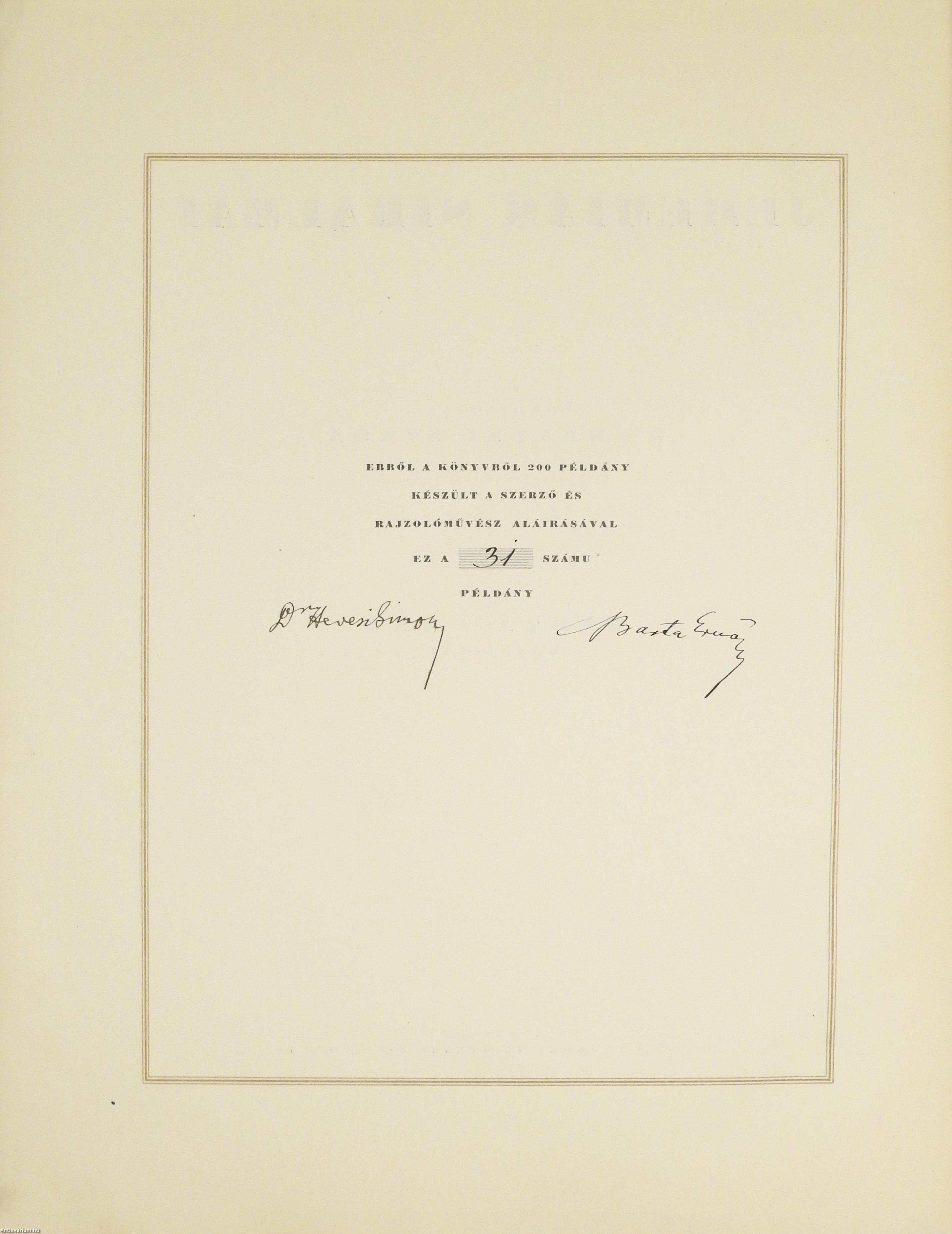 "Ebből a könyvből 200 példány készült a szerző és rajzolóművész aláírásával. Ez a 31. számu példány."