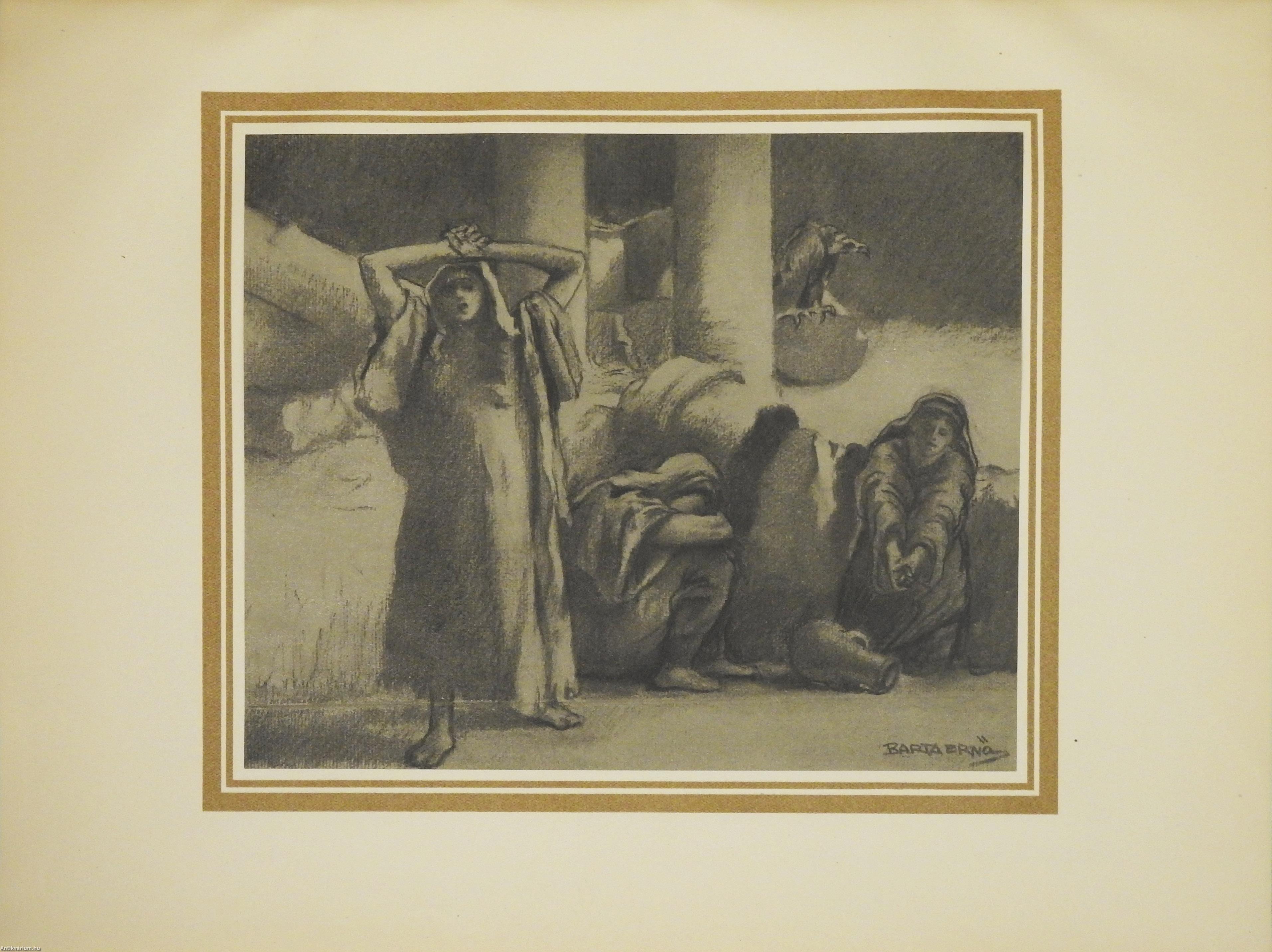 Fordító és grafikus által aláírt, számozott, bibliofil példány. Jeremiás siralmai. Fordította: Dr. Hevesi Simon. Barta Ernő rajzaival.