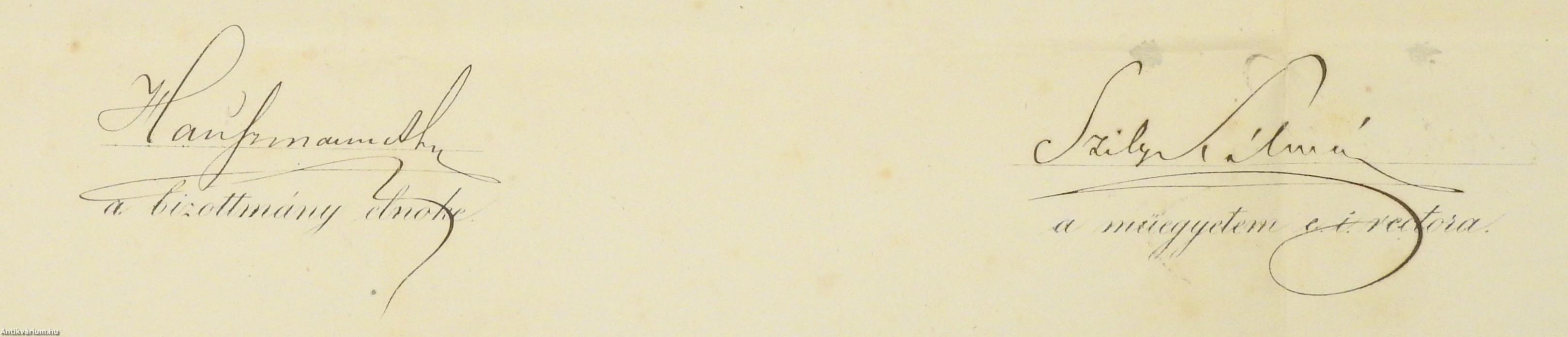 Kőnyomatos, hajtogatott, kézzel kitöltött, a Magyar Kir. József-Műegyetem ostyapecsétjével, valamint 50 krajcáros illetékbélyeggel és a szakosztály bélyegzőjével ellátott, hiánytalan okirat.