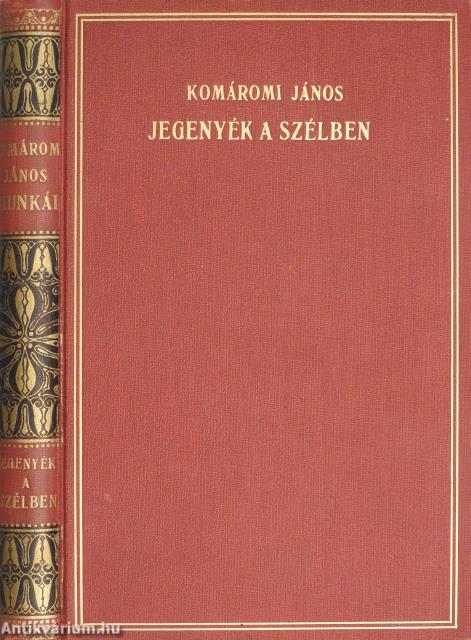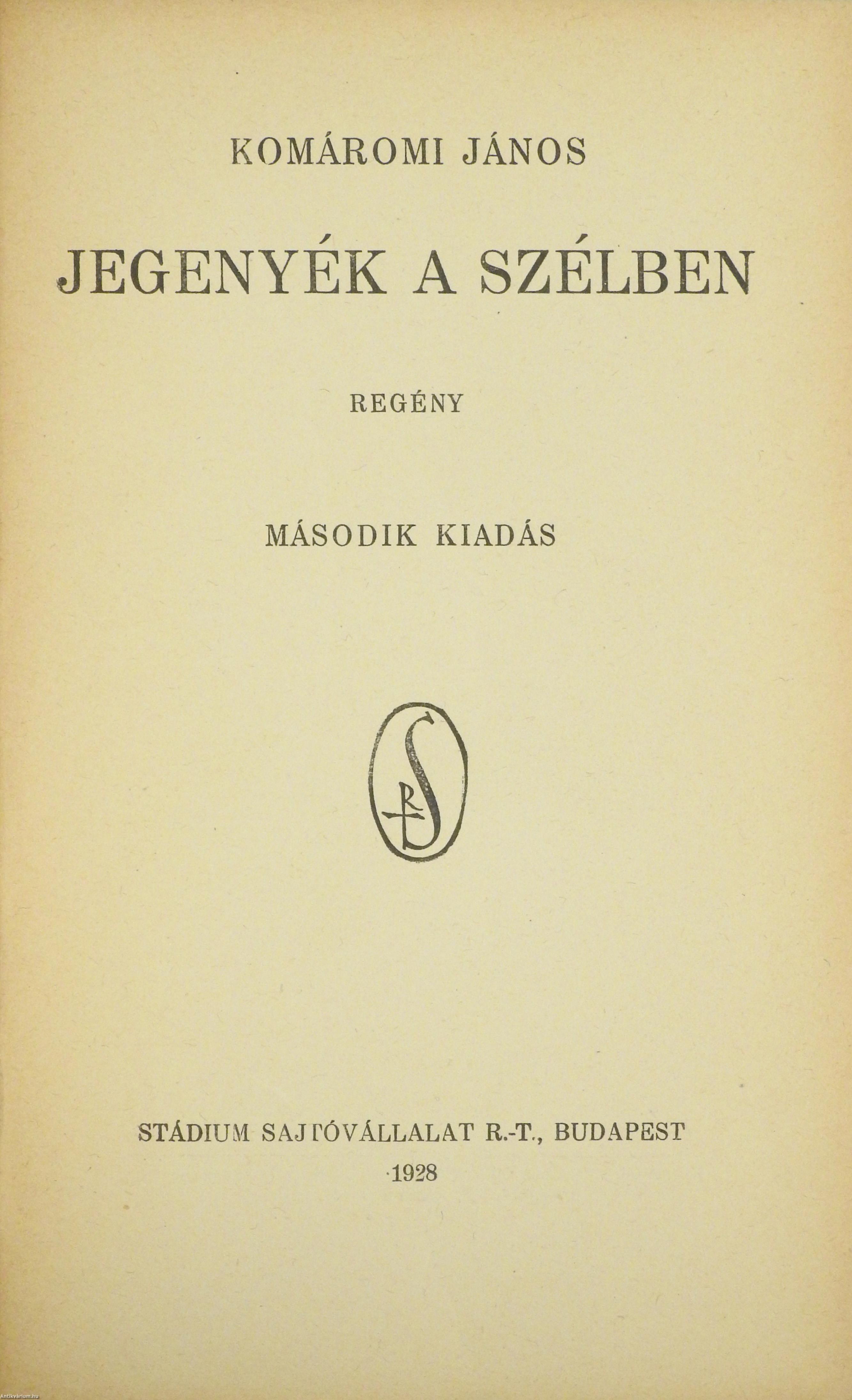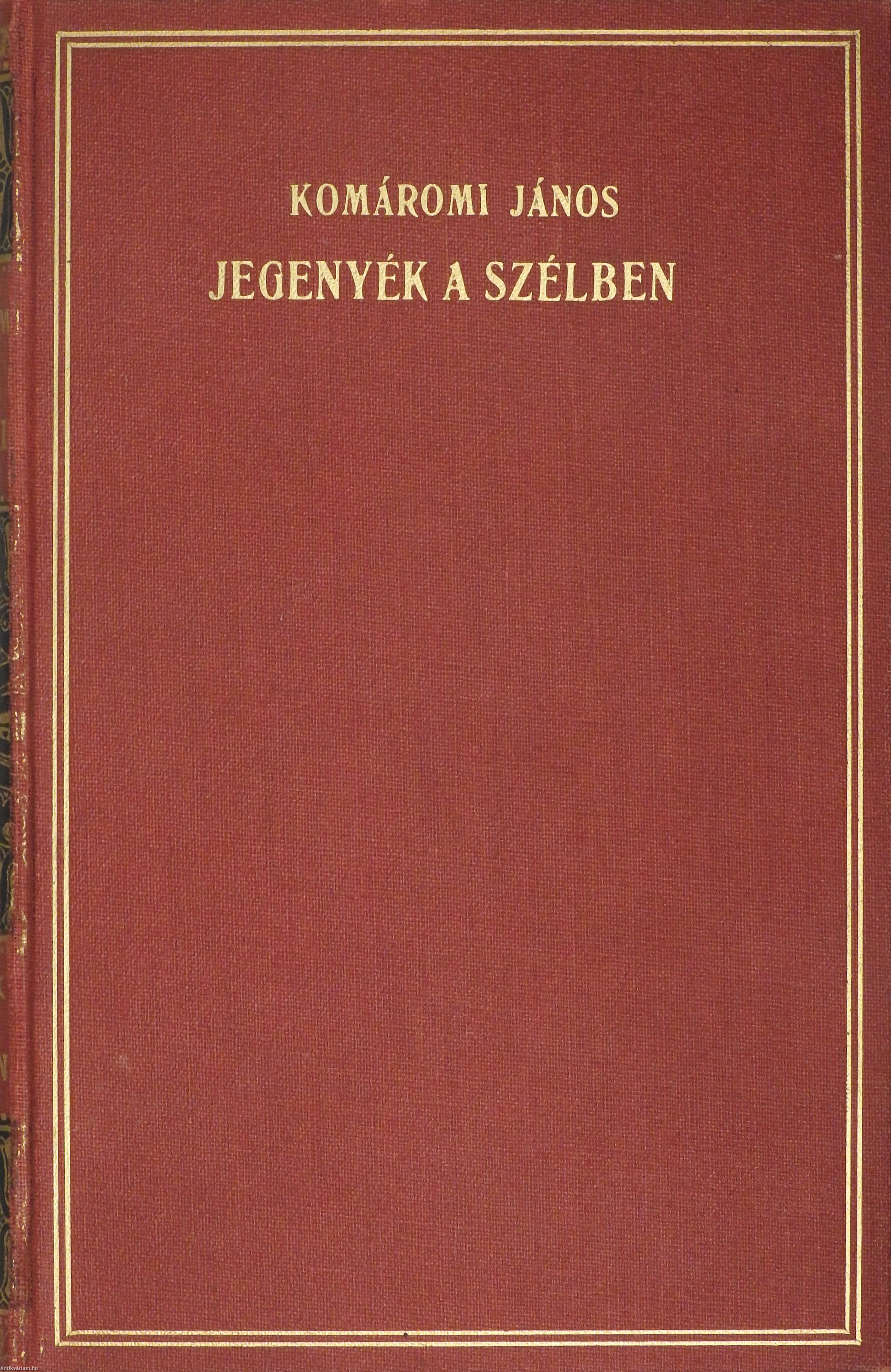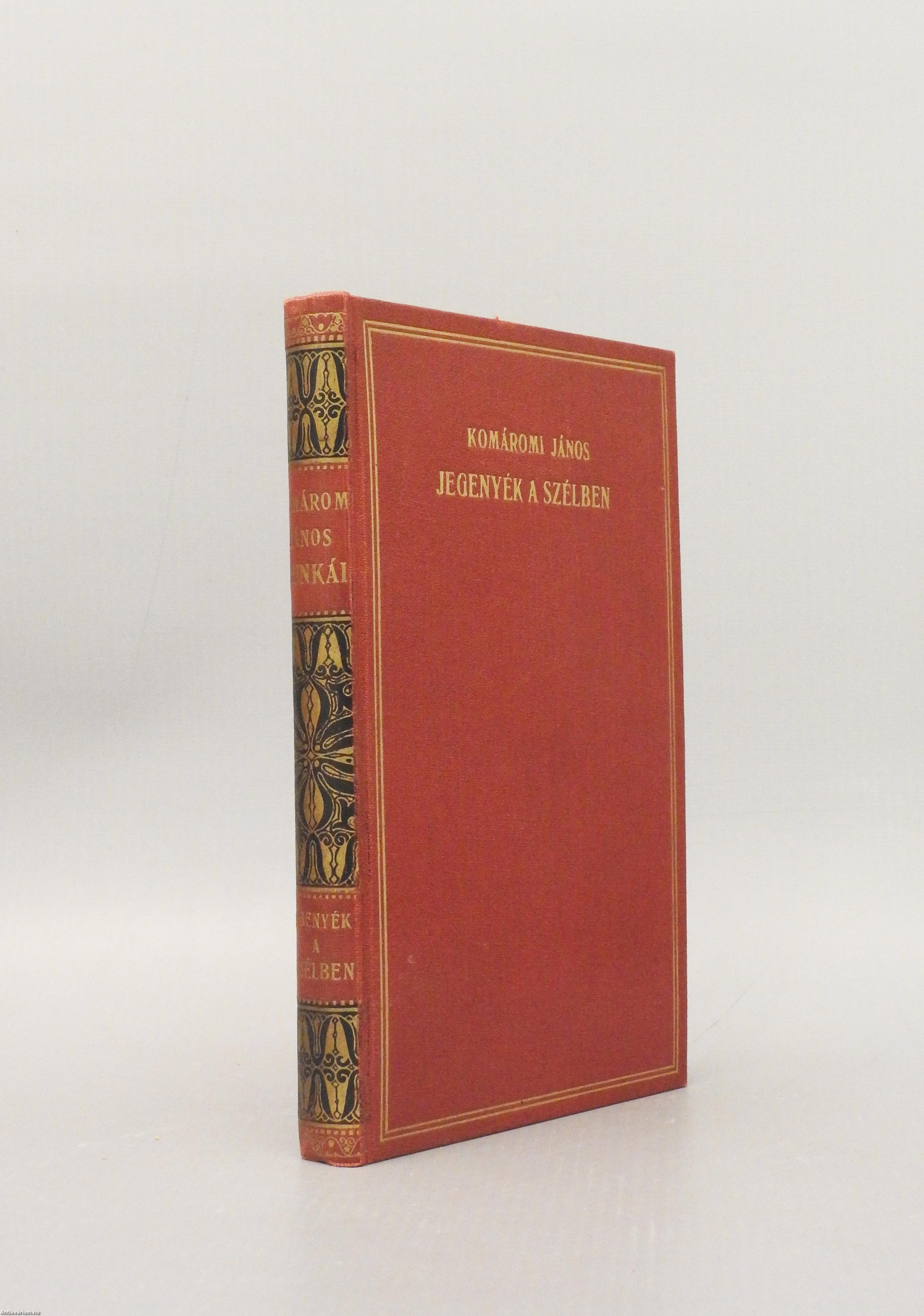 Jegenyék a szélben. Regény. Írta: Komáromi János. Második kiadás. Nyomtatta a Stádium Sajtóvállalat Részvénytársaság Nyomdája, Budapesten. Kiadói egészvászon kötésben lévő példány, aranyozott feliratozású címfedéllel, gazdagon aranyozott könyvgerinccel, színes, mintás előzéklapokkal, hátlapon a nyomda feltüntetésével, hiánytalan, jó állapotban. A szerző, Komáromi János (Málca, 1890. december 22. – Budapest, 1937. október 7.) író, újságíró. A Budapesti Hírlap, a Magyarország, az Új Nemzedék, a Magyarság aktív munkatársa volt. A két világháború közötti magyar irodalom meghatározó alakja, hazaszeretete, kötődése a szülőföldhöz és a sárospataki alma materhez, könyveinek ízes magyar nyelvezete méltán tette népszerűvé. 1945 után nem kívánatosnak minősült. A Régi ház az országútnál, a Szülőföldem szép határa és a Jegenyék a szélben c. művei önéletrajzi ihletésűek. Műveit számos európai nyelvre lefordították.