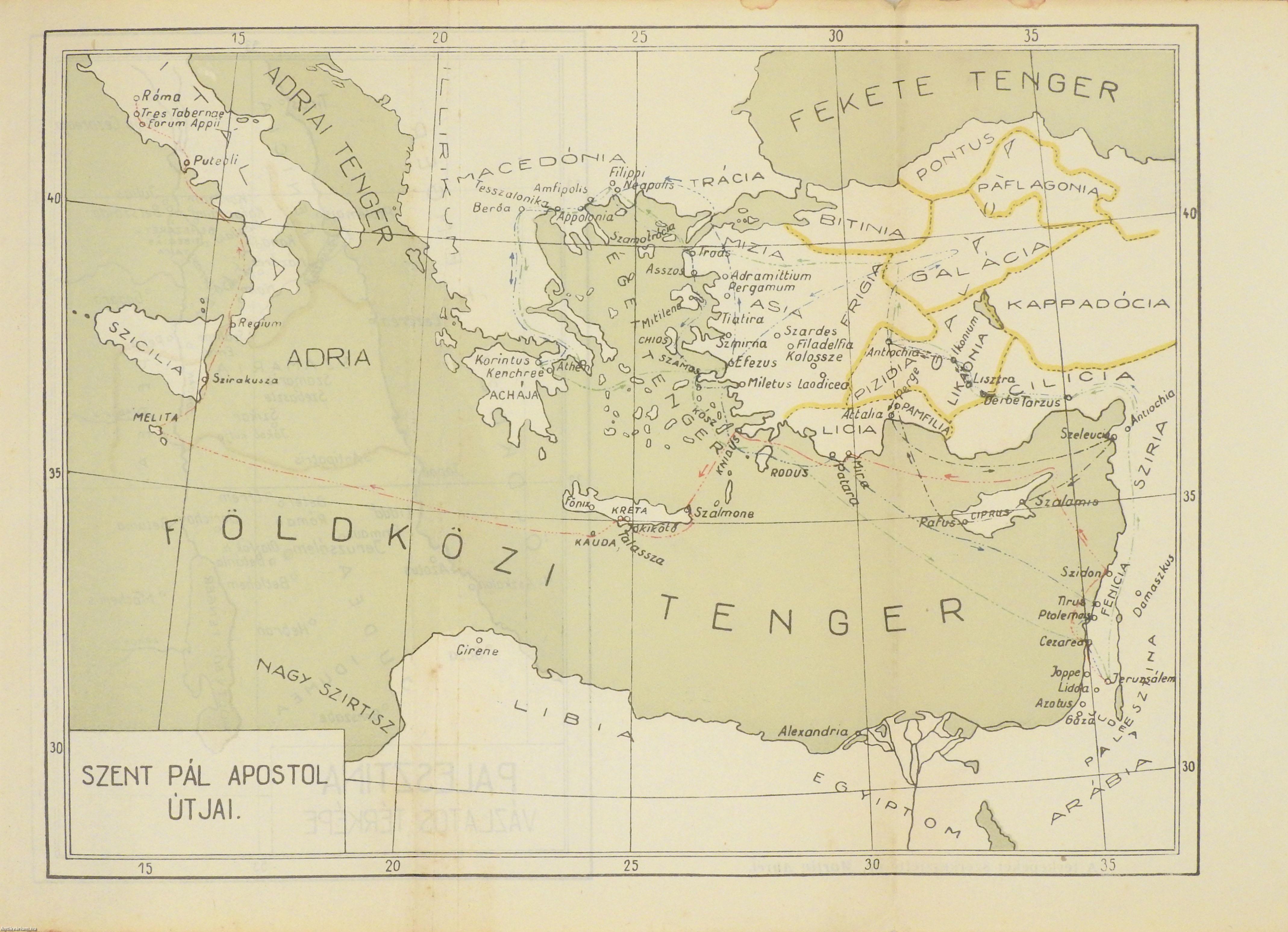 - II. kötet: Szent Pál apostol levelei. - Katholikus levelek. - Jelenések könyve. Két színes, kihajtható térképpel (Palesztina vázlatos térképe; Szent Pál apostol útjai) illusztrált kiadás. Budapest, é. n., Szent István-Társulat, 491 p. + [1] p. + [2] térk.: ill