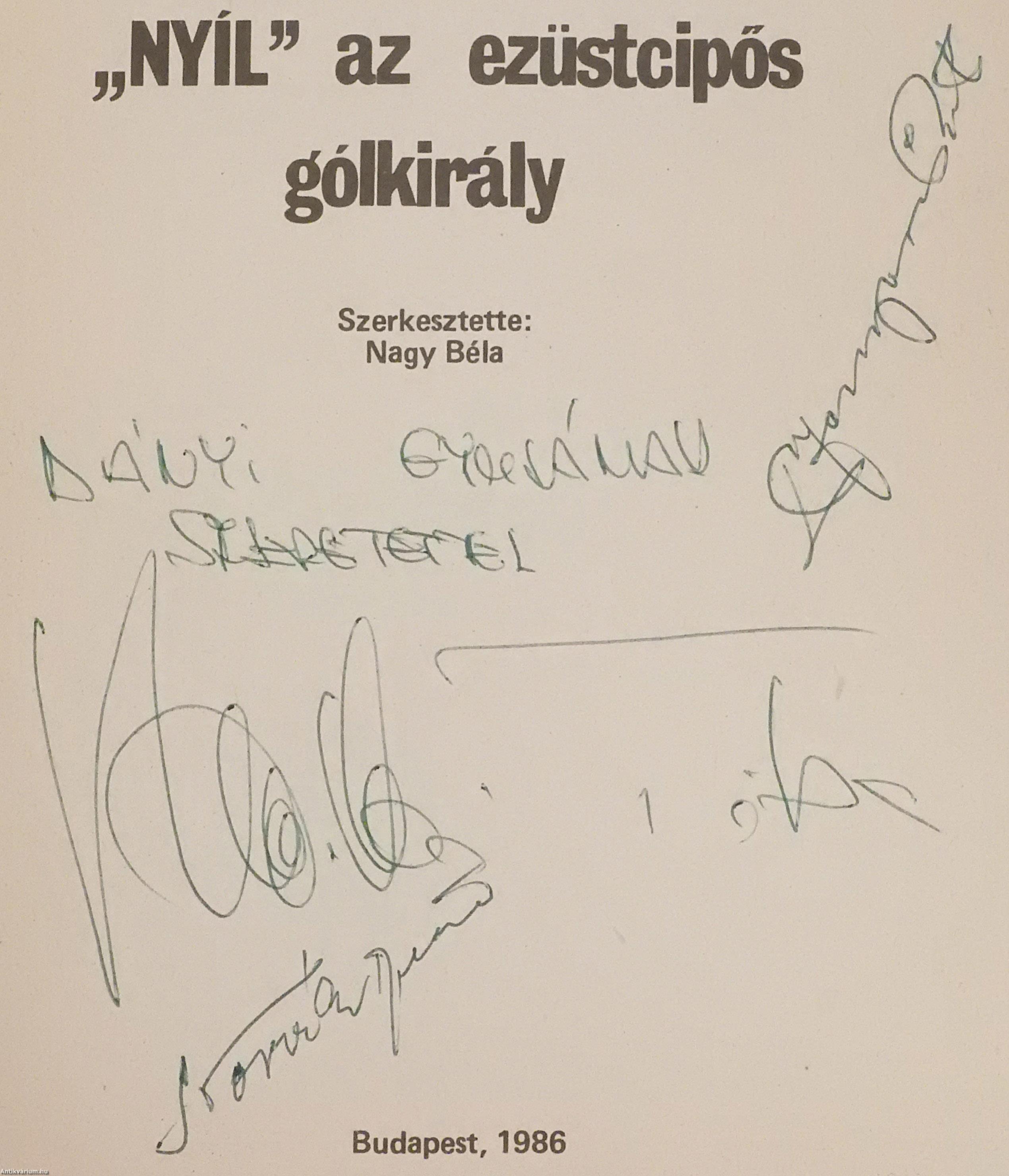 Nagy Béla: "Nyíl" az ezüstcipős gólkirály (Nyilasi Tibor, Fenyvesi Máté és Novák Dezső által dedikált példány)
