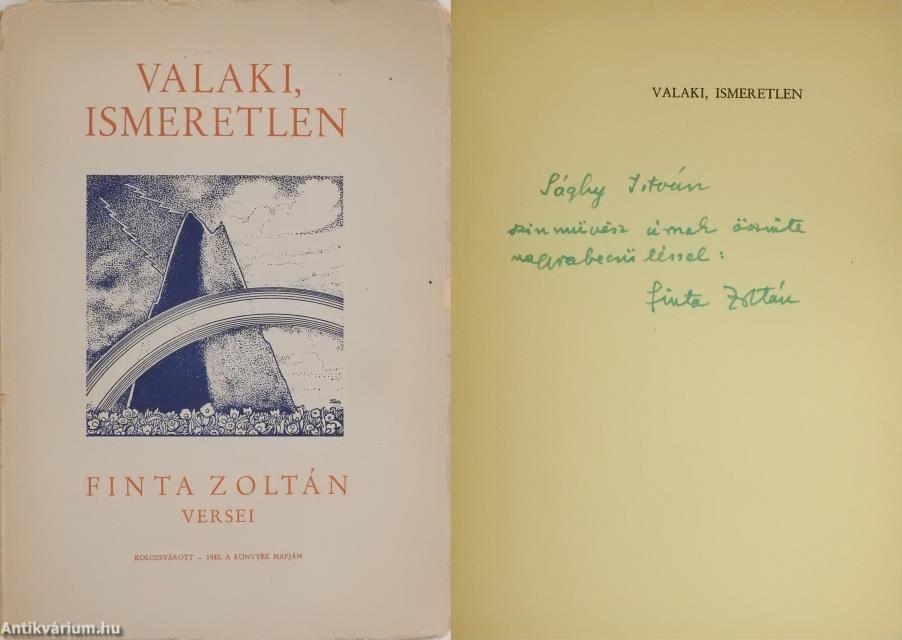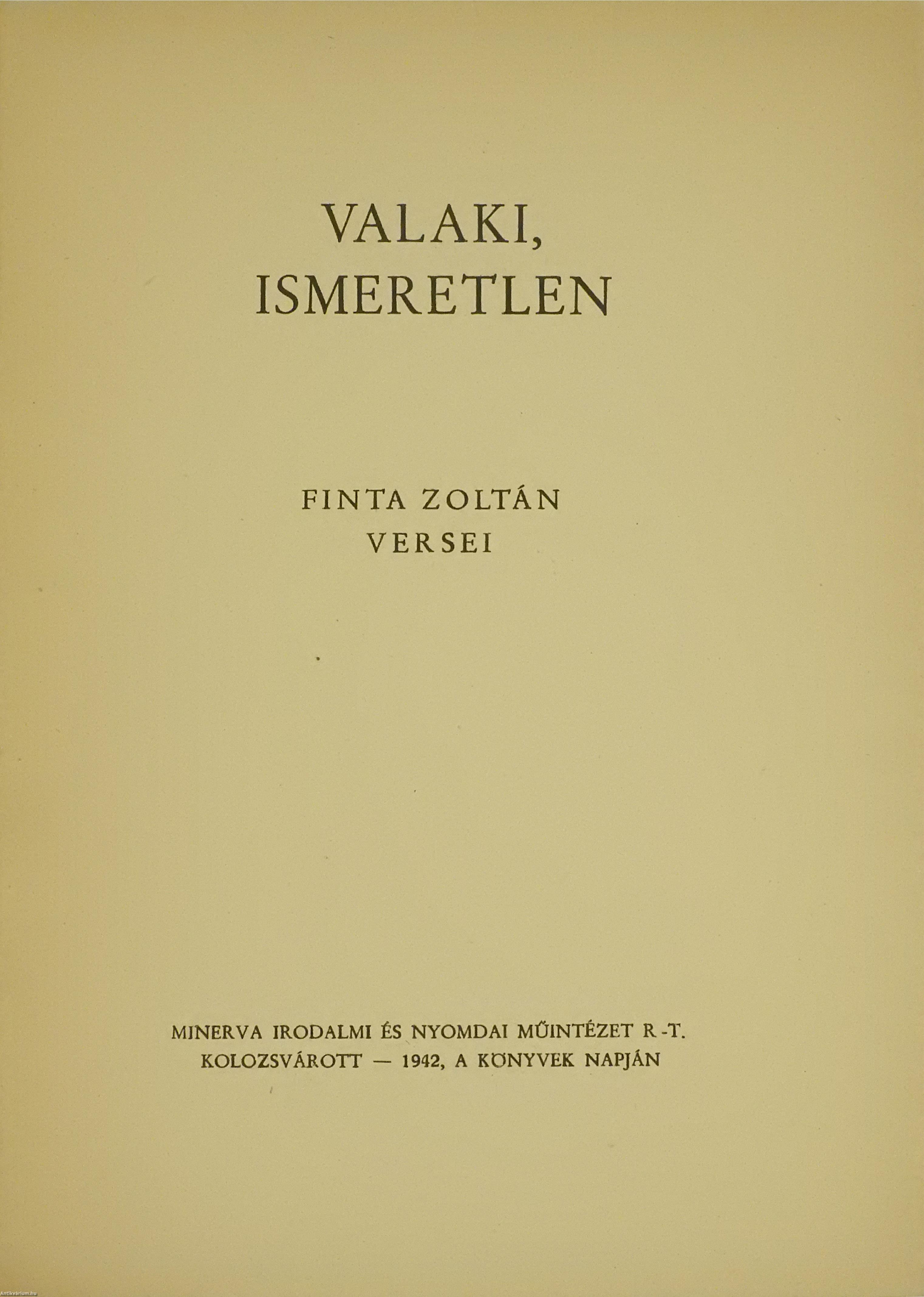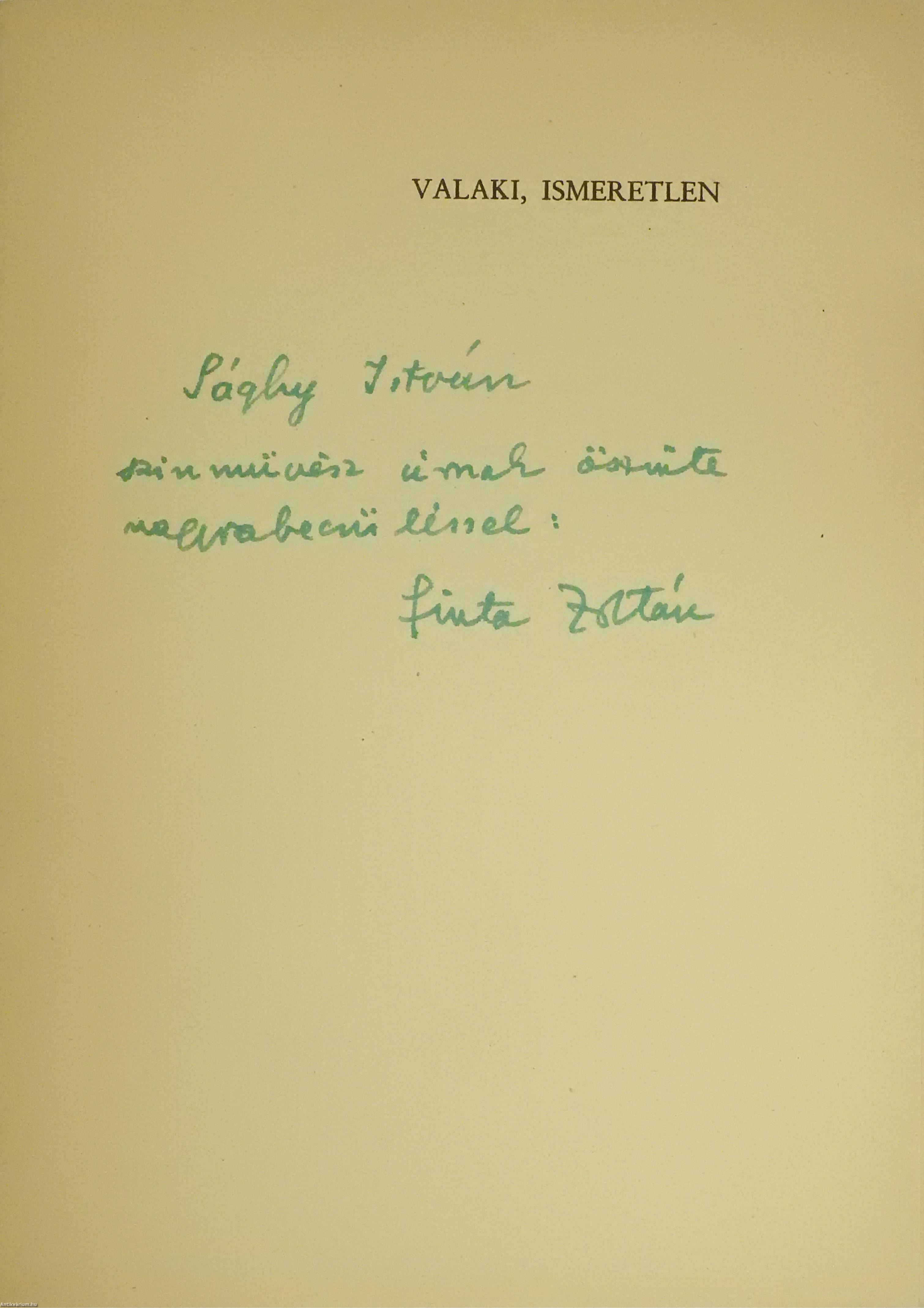 Szerző által dedikált példány. Első kiadás. Valaki ismeretlen. Finta Zoltán versei.