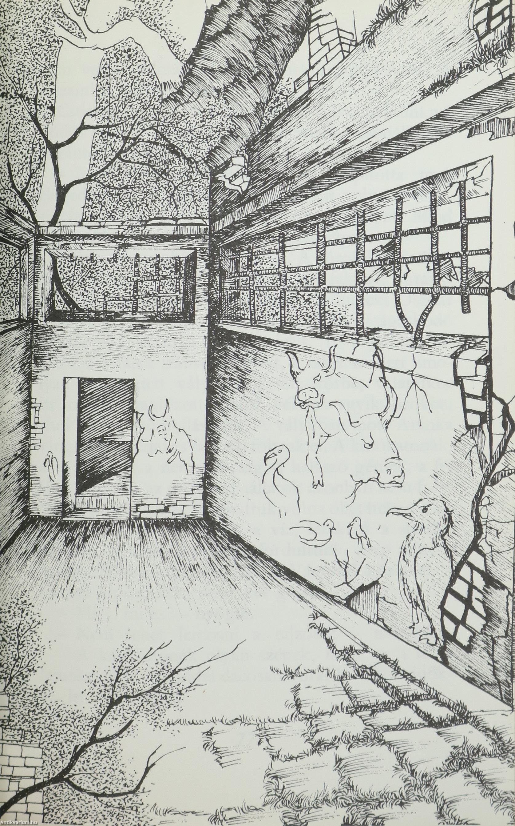 Végre találok egy súlyos betonkockát. Az egyik nyárfa tövében lapul, a régi Vágóhíd valamelyik oszlopának itt felejtett darabja; félig a földbesüllyedt, szürkén megbújt a térdig érő gazban. Erőlködve odább görgetem, hogy a vörös oldalát mutassa felfelé. A Vágóhíd falai belülről mindig vörösek voltak; akkor is, amikor naponta százával ölték itt a marhákat, lovakat, birkákat, meg később is, amikor már csak mi szálltuk meg az elhagyott, nagy kőépületet, belülről még akkor is vörösek voltak a falak, mintha a letaglózott állatok vére ivódott volna örökre beléjük. A vörös falakra mindenféle állatokat és madarakat rajzoltunk, sőt később a rajzokat bele is véstük a falakba.