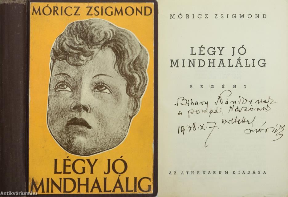 Szerző álatal dedikált példány. Légy jó mindhalálig. Regény. Írta: Móricz Zsigmond.