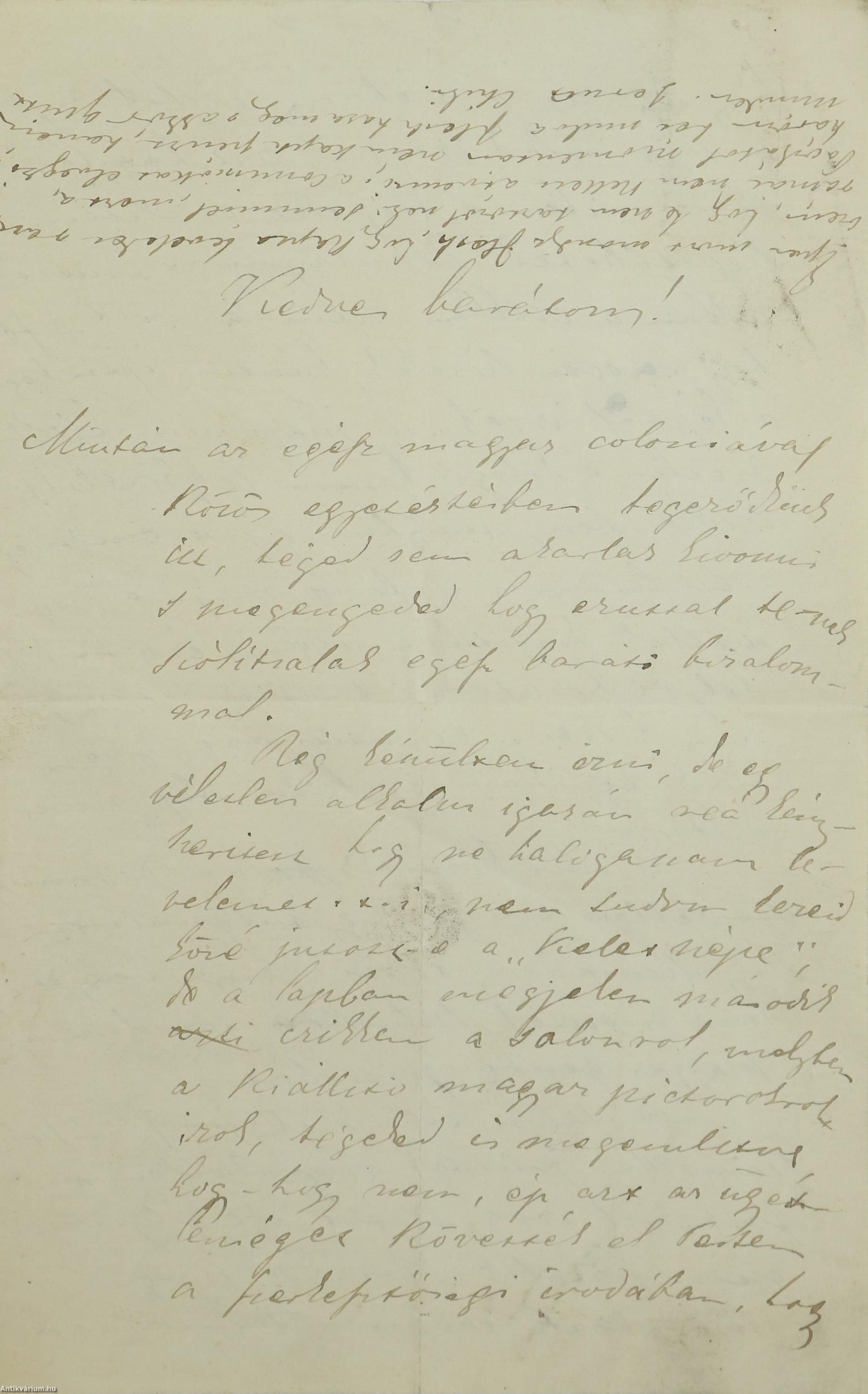 Kézzel írt, hajtogatott, jó állapotú levél.