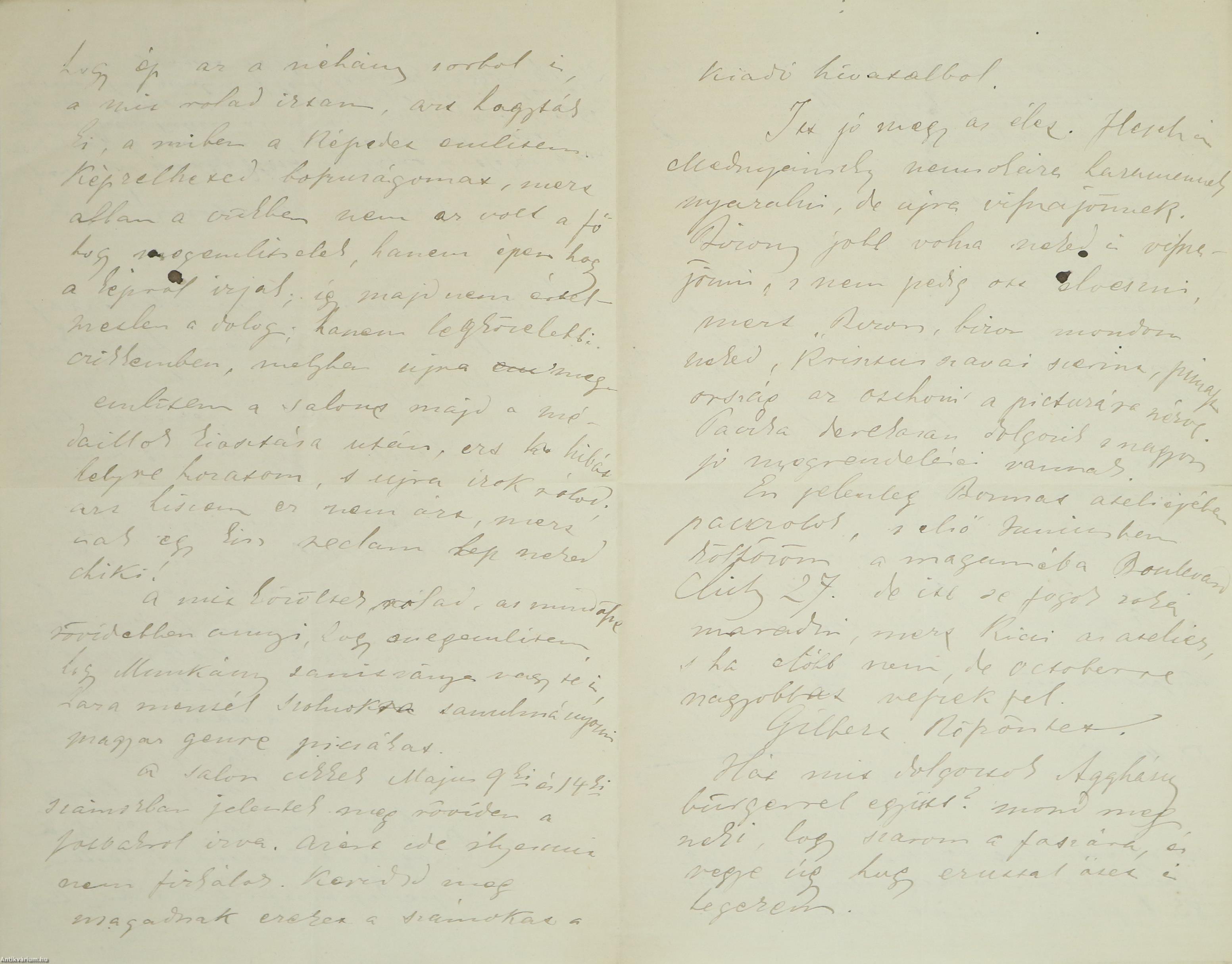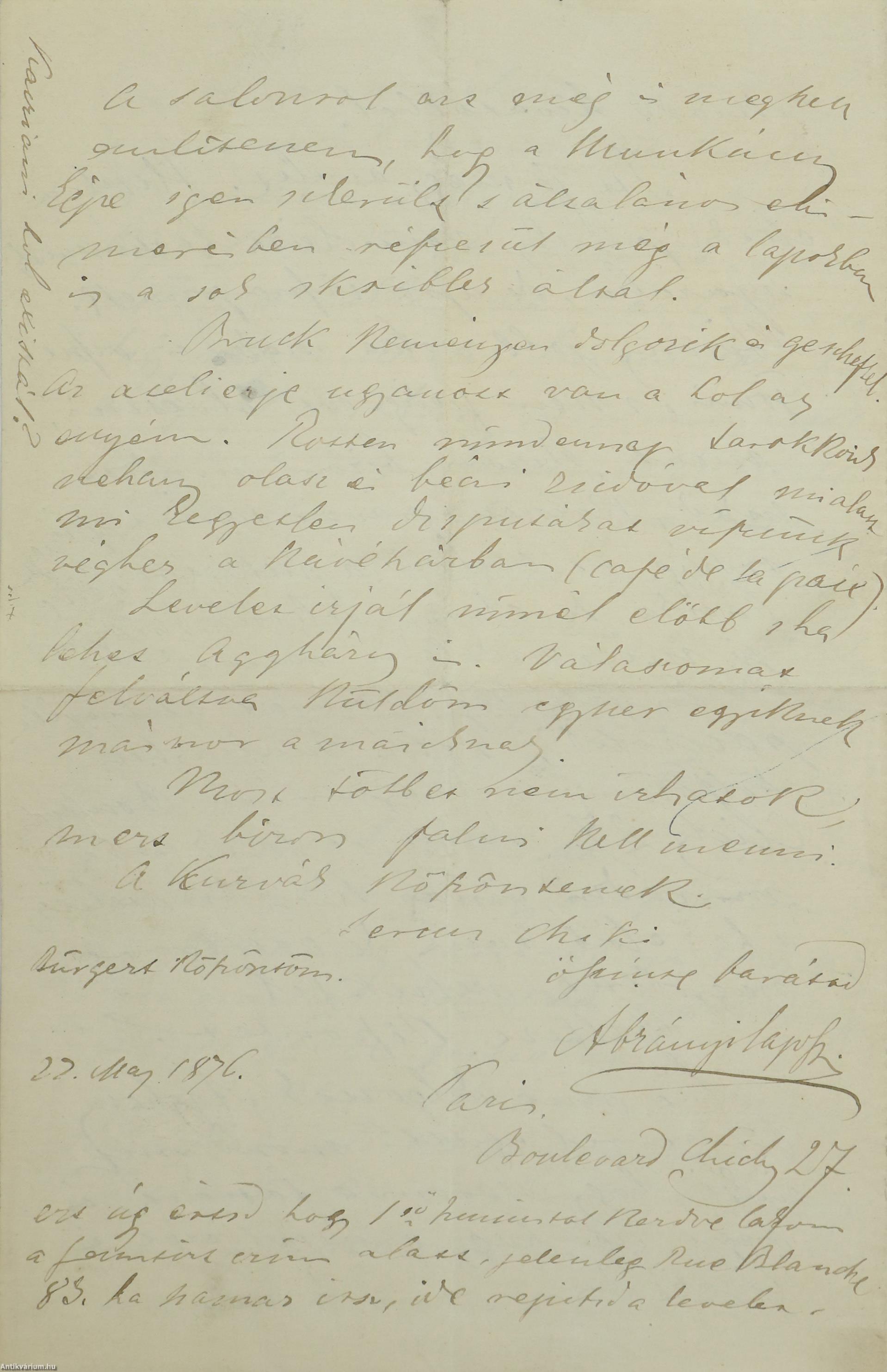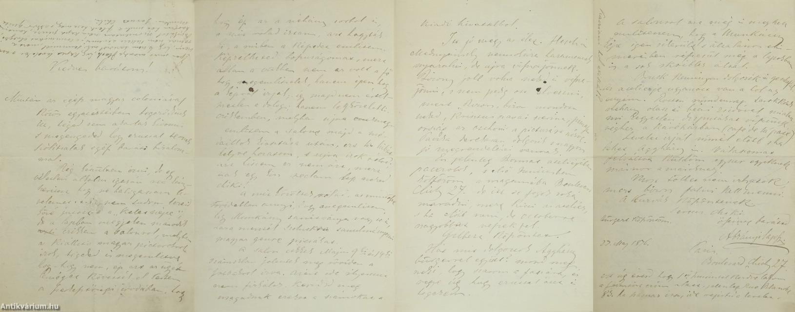 Párizs, 1876, Ábrányi Lajos festőművész autográf levele, [4] p.
