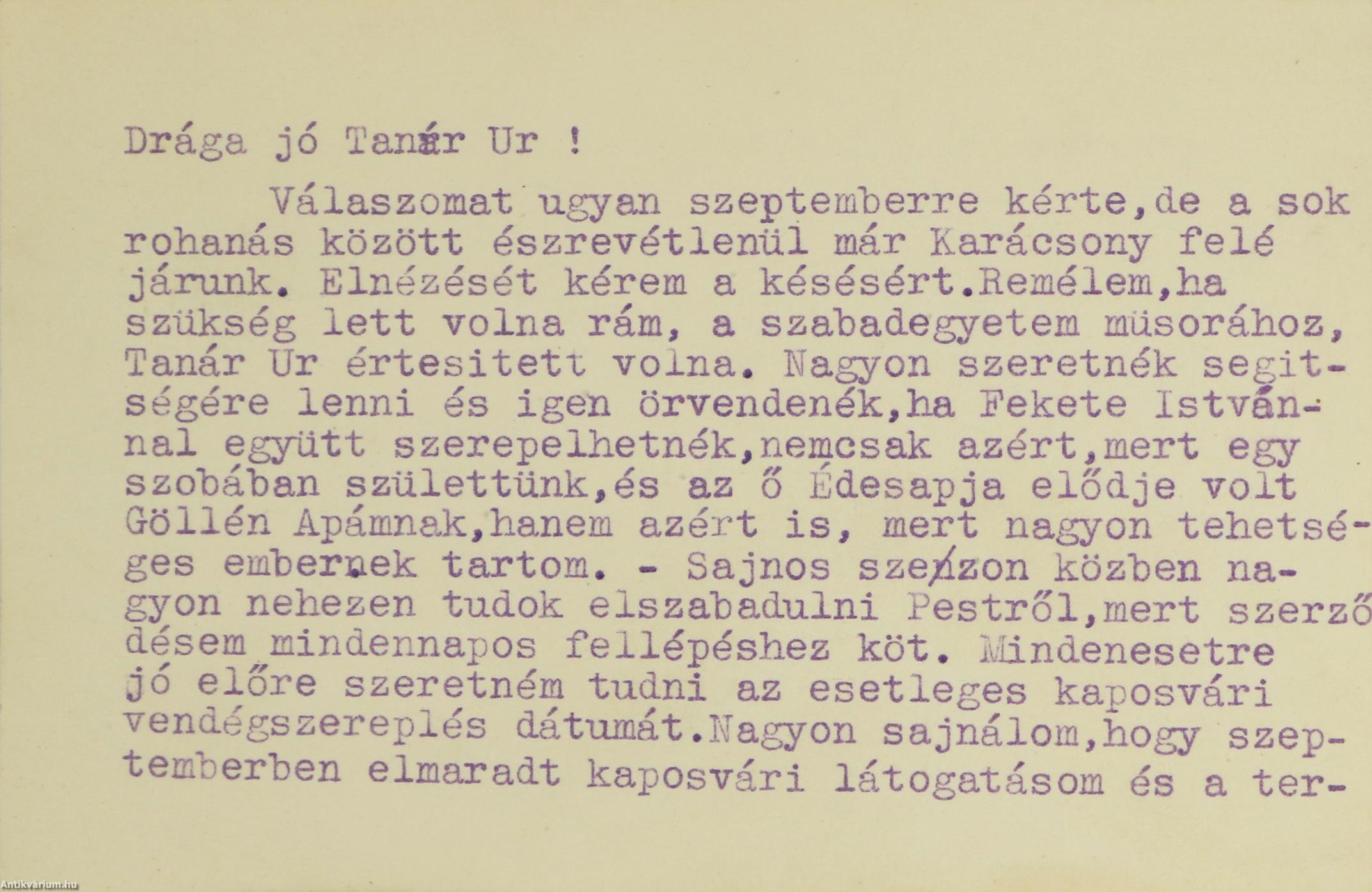 Géppel írt, aláírt, jó állapotú levél.