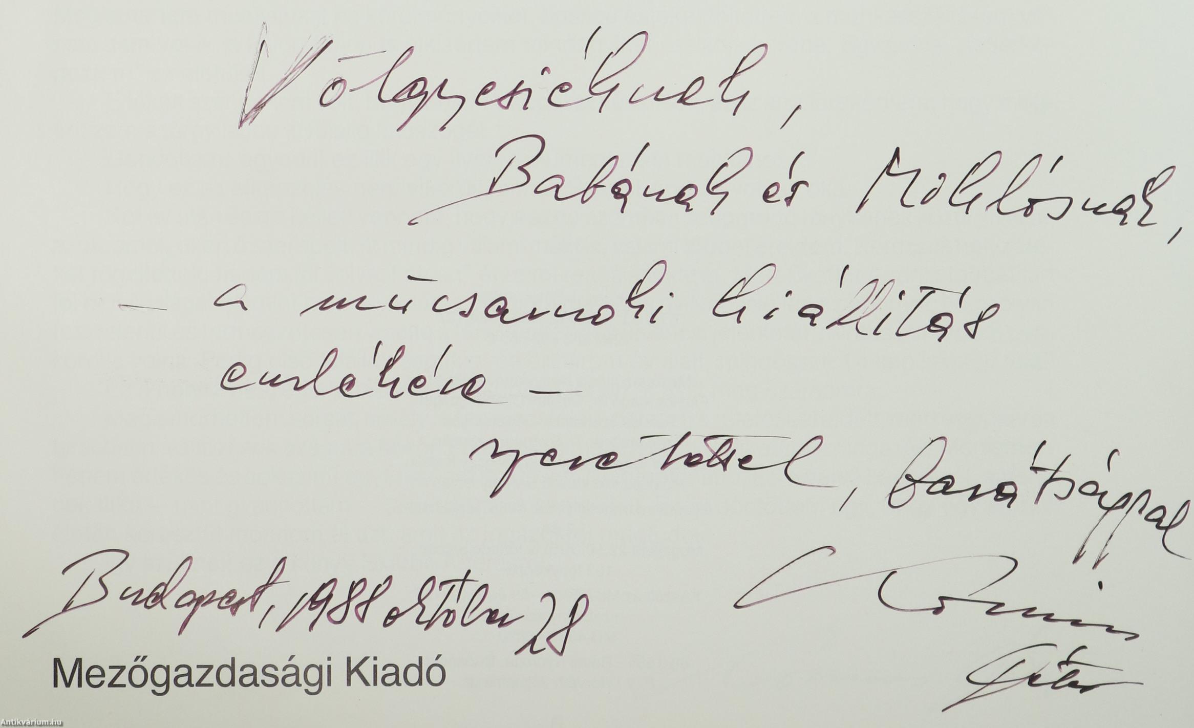 A címlapon Korniss Péter fotóművész tollal beírt, névre szóló dedikációja olvasható: "V.-éknek, B.-nak és M.-nak, - a műcsarnoki kiállítás emlék ére - szeretettel, barátsággal Korniss Péter Budapest, 1988 október 28."