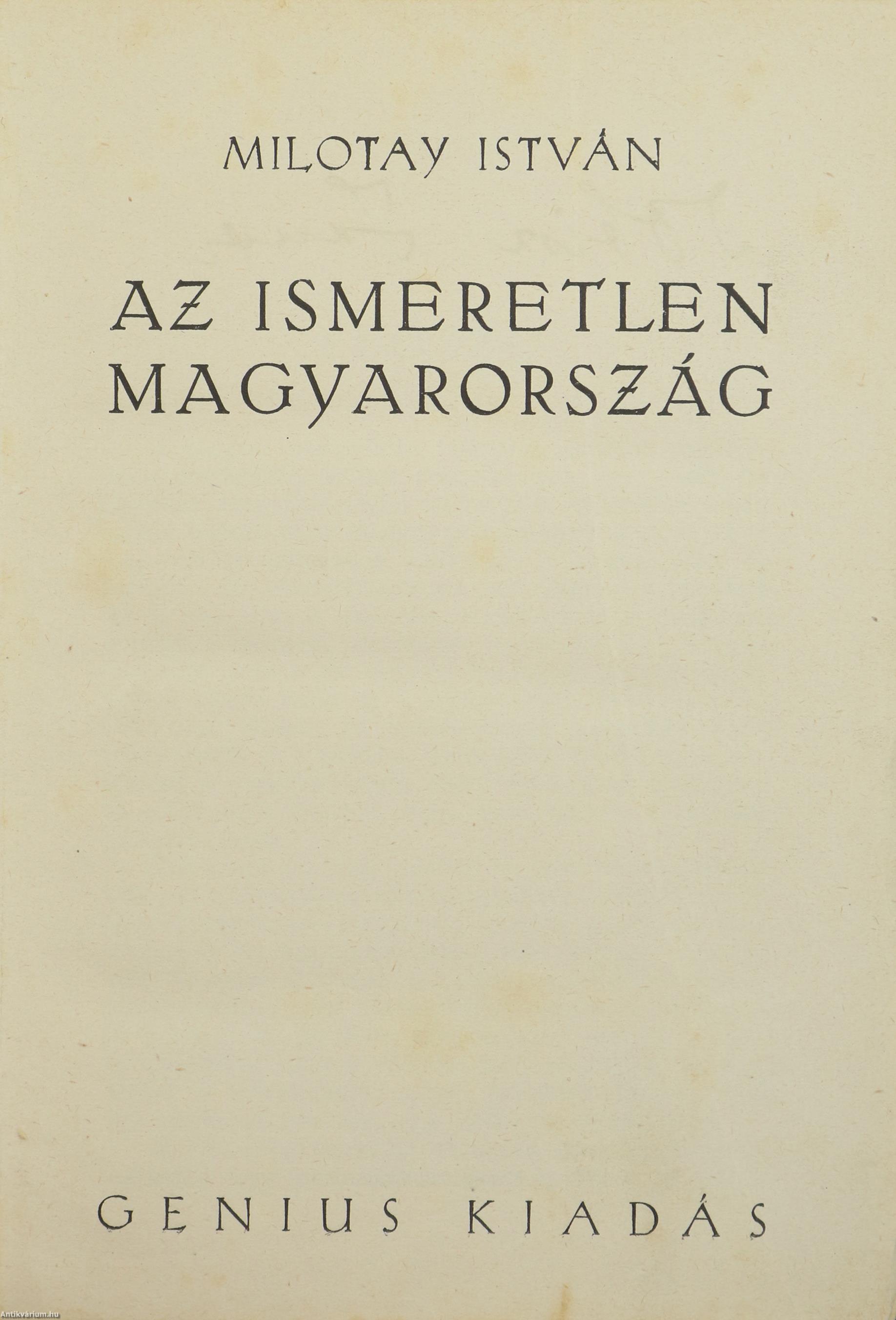Első kiadás. Az ismeretlen Magyarország. Írta: Milotay István.