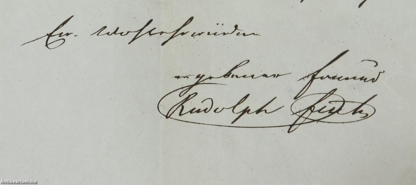 Az 1849. július 7-én, Pesten, a szabadságharc idején írt levél alján Fuchs Rudolf („Rudolph Fuchs”) kereskedő, az első magyar dohánygyár tulajdonosa tollal beírt aláírása látható.