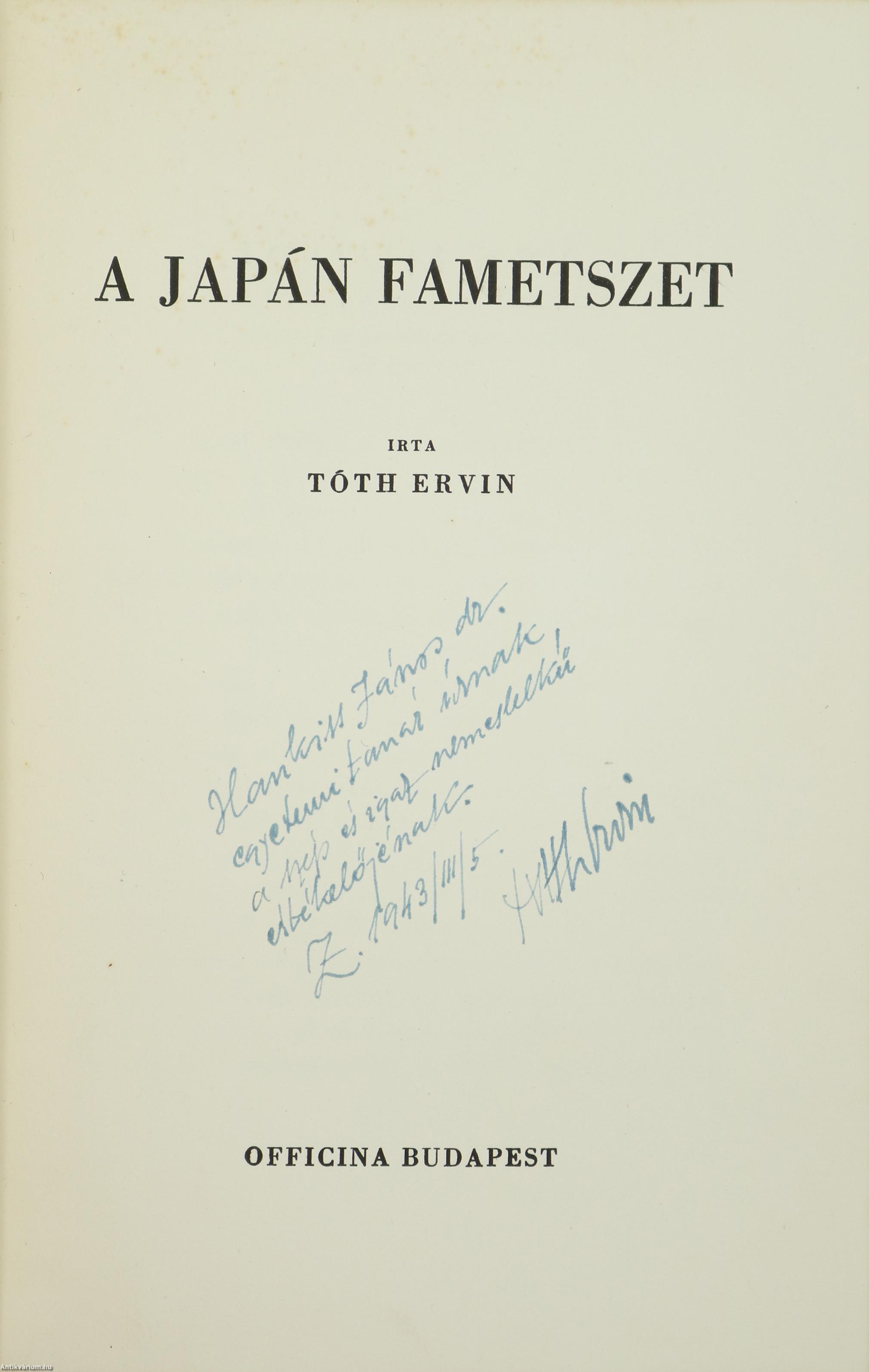 Szerző által aláírt és dedikált példány. Az Ars Mundi sorozat V. kötete. Első, számozott, bibliofil kiadás. A japán fametszet. Írta: Tóth Ervin.