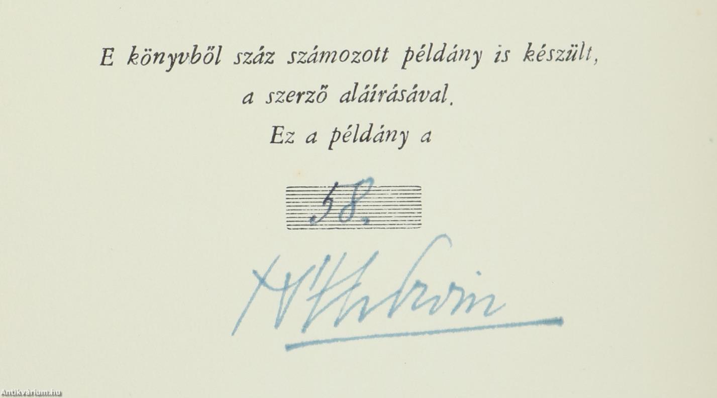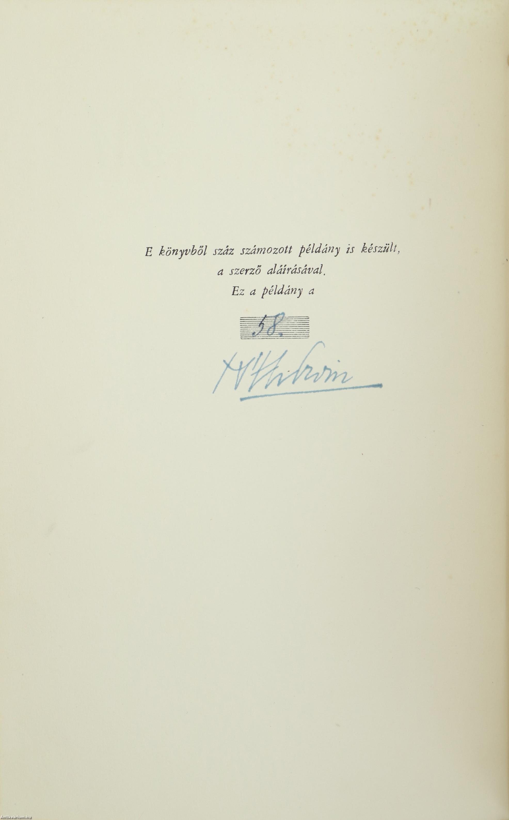 "E könyvből száz számozott példány is készült, a szerző aláírásával. Ez a példány az 58."