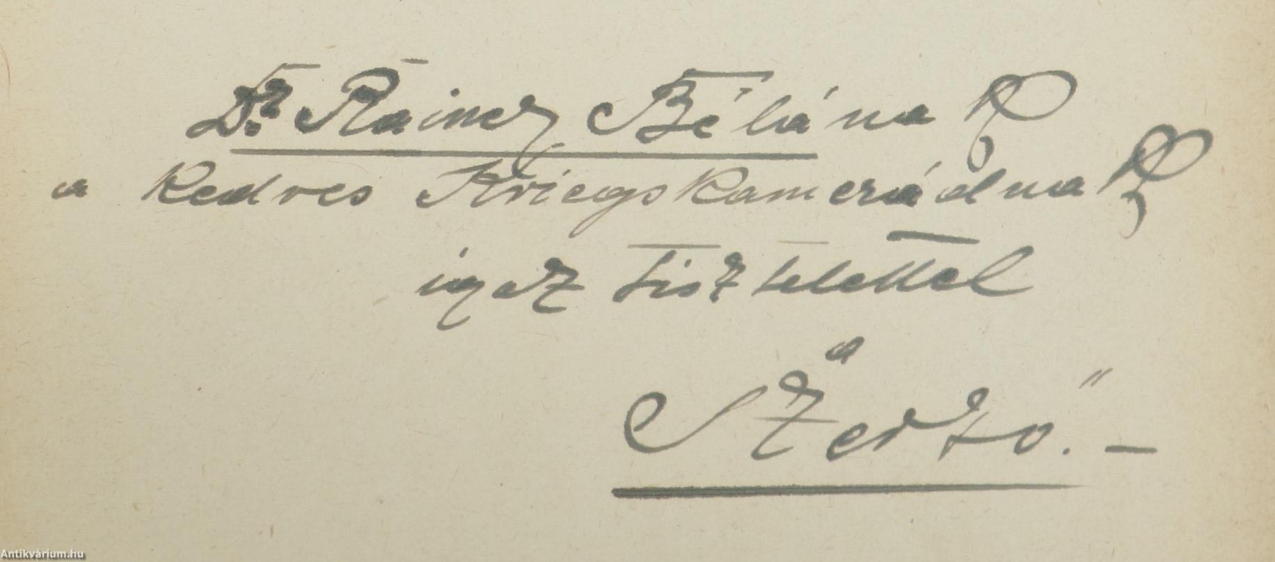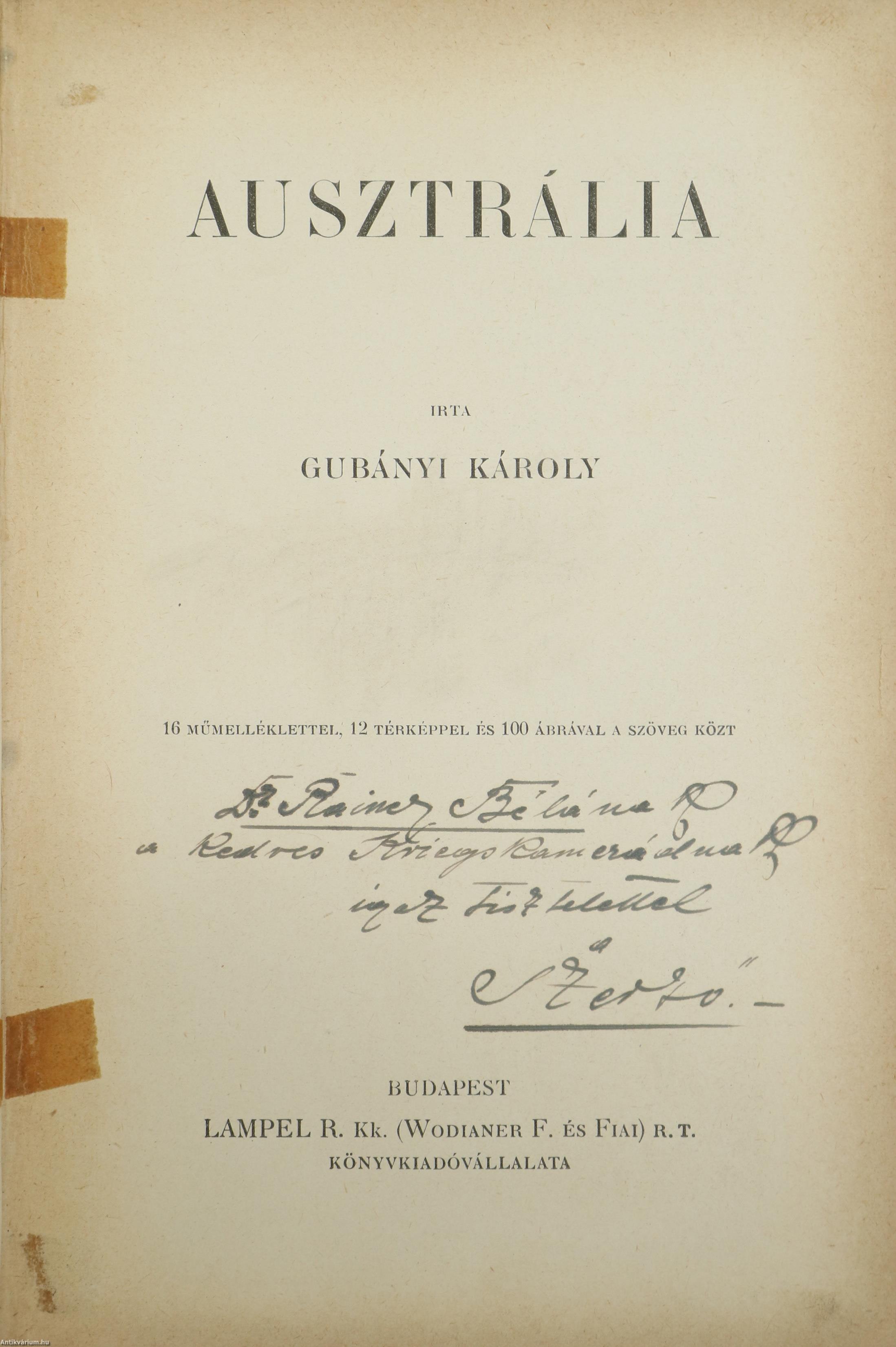 A címlapon a szerző, Gubányi Károly tollal beírt, névre szóló dedikációja olvasható: "Dr. R. B.-nak a kedves Kriegskamerádnak igaz tisztelettel a Szerző.–" [Kriegskamerad = bajtárs]