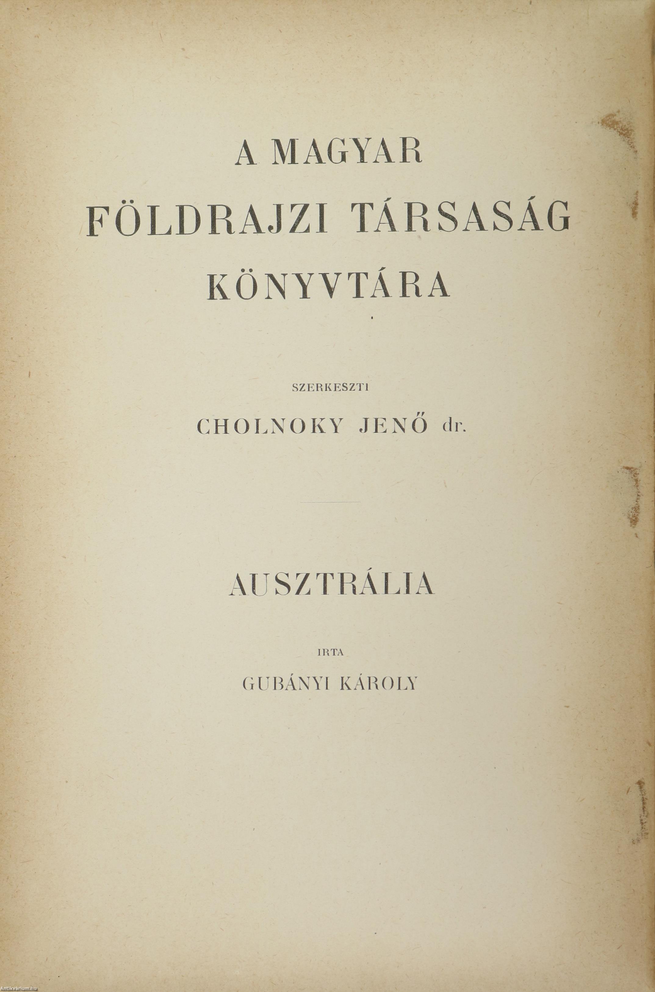 Ausztrália érdekesebb tájait és sajátszerű életviszonyait tárgyaló jelen munka szerzője összesen hét évet töltött a távoli világrészben.