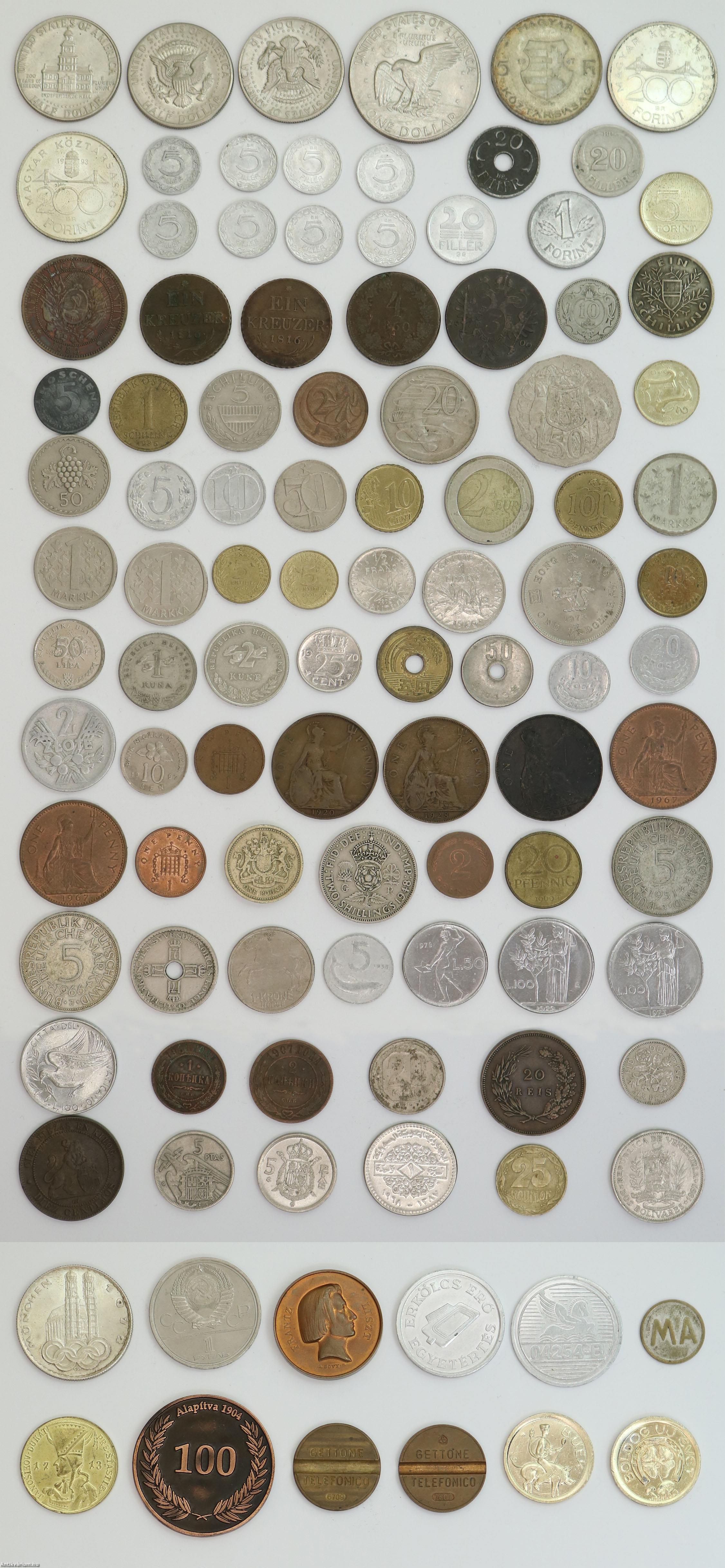 Egyedi numizmatikai gyűjtemény!Az összeállítás 103 db, bel- és külföldi érmét tartalmaz, melyek nagyobb része a 20 századból és a 21. század elejéről (1920-2021), kisebb része pedig a 19. századból (1800-1895) származik. Összefüggő szöveges részt nem tartalmaz.