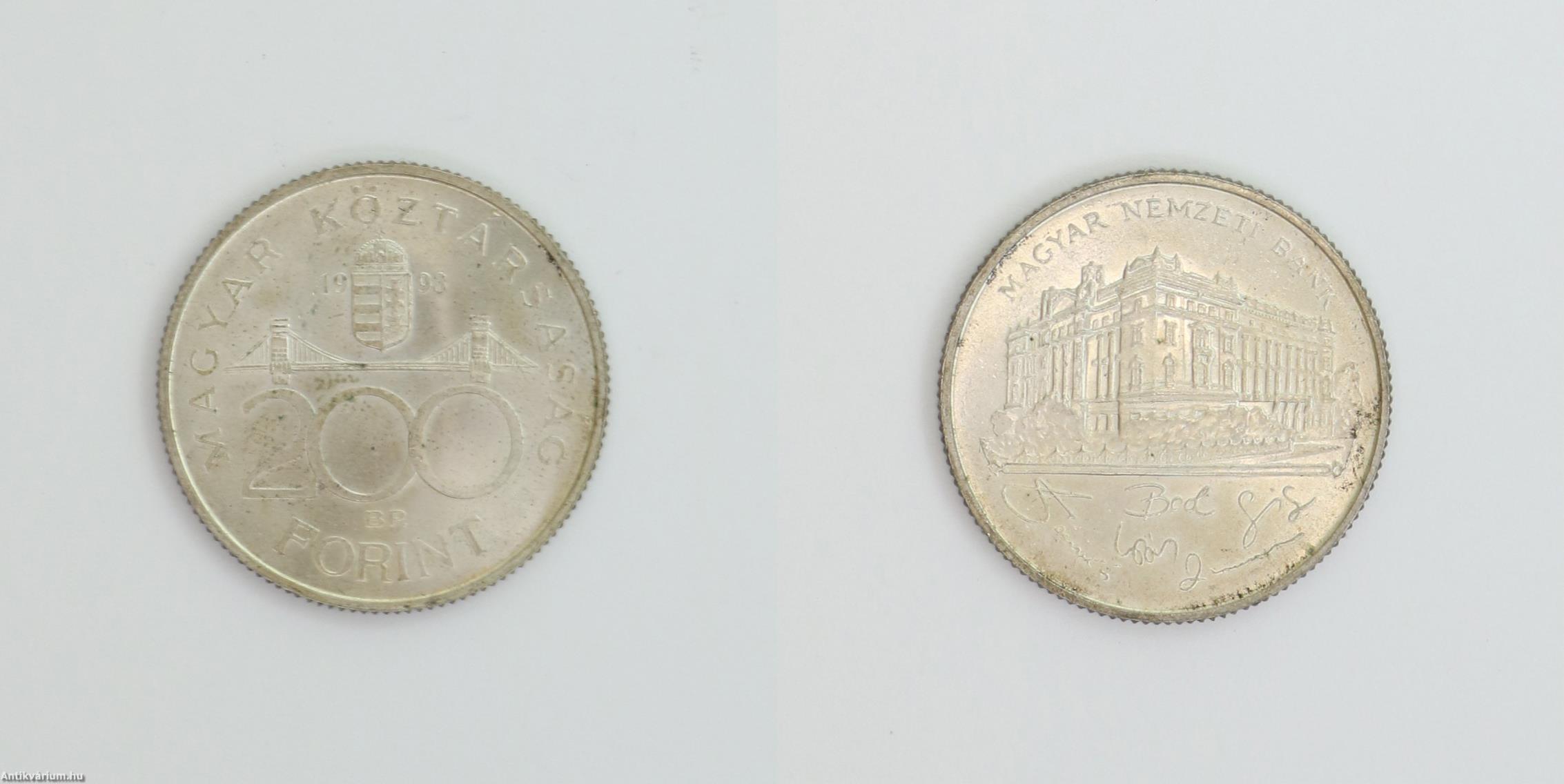 - 200 forint névértékű, 1993-ban kibocsátott forgalmi érme (2 db). Összetétele: Ezüst 0.500 (50 % tisztaságú ezüst). Súlya: 12 g. Átmérő: 32 mm.