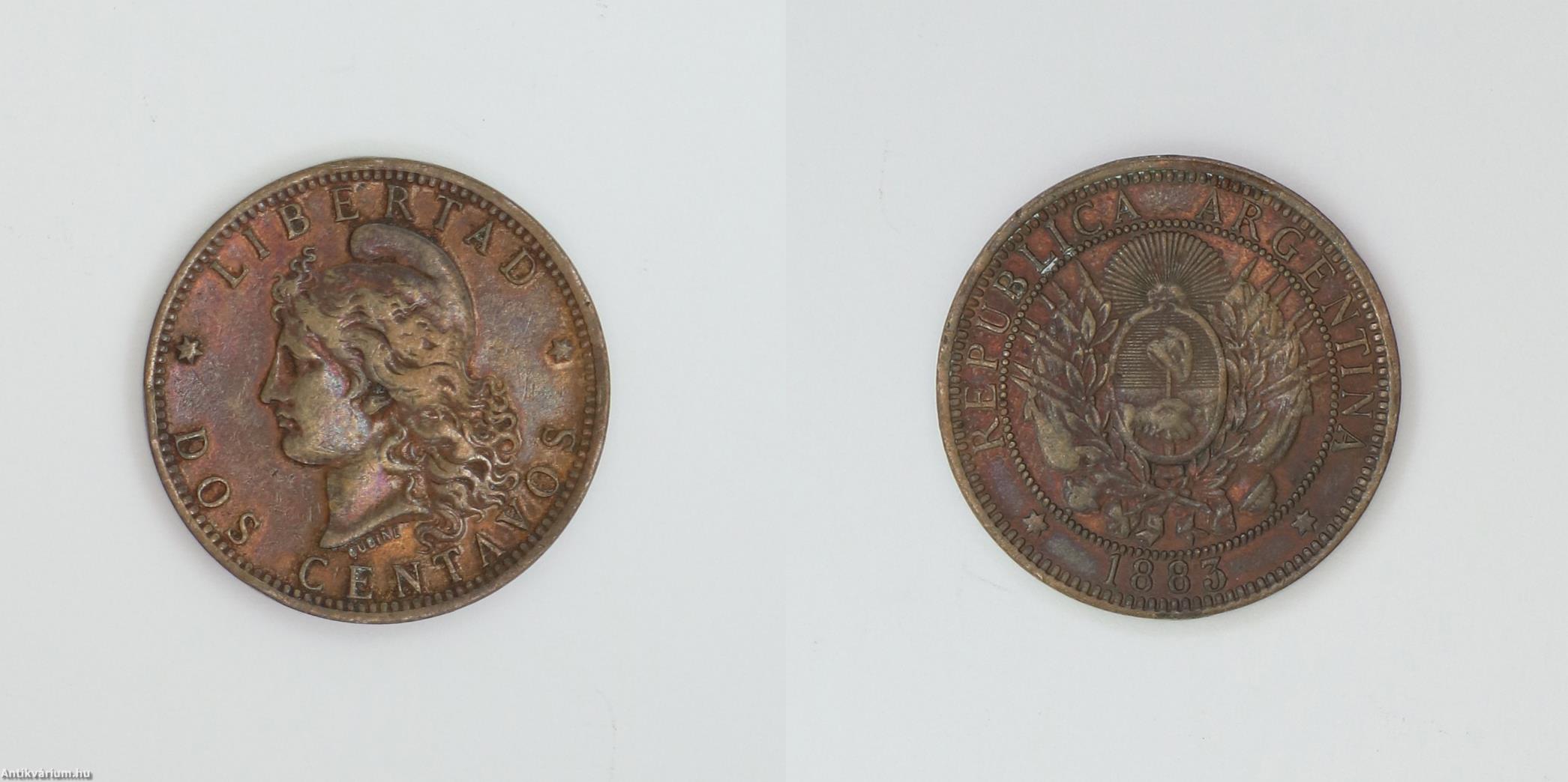 - 2 centavo névértékű, 1883-ban kibocsátott forgalmi érme (1 db). Összetétele: Bronz. Súly: 10 g. Átmérő: 30 mm.