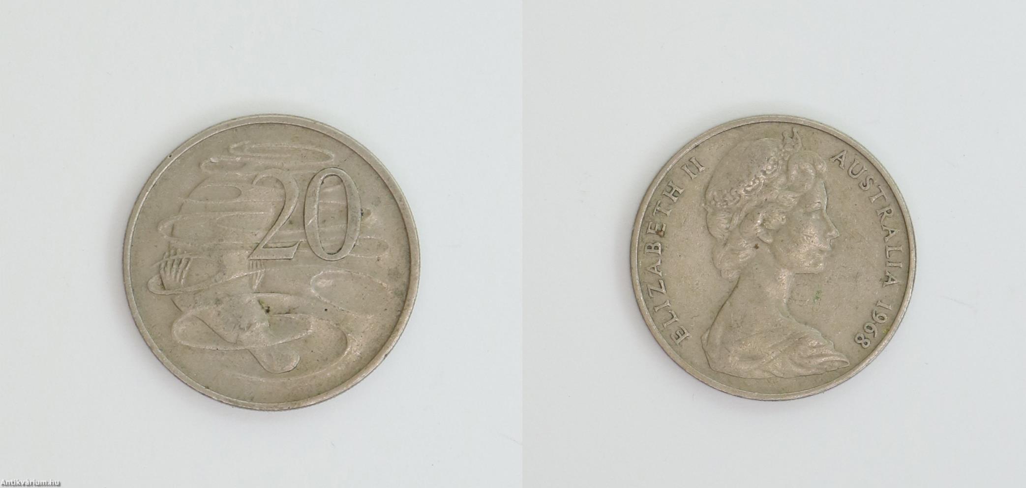 - 20 cent névértékű, 1968-ban kibocsátott forgalmi érme (1 db). Összetétele: Réz-nikkel ötvözet. Súly: 11,3 g. Átmérő: 28,5 mm.