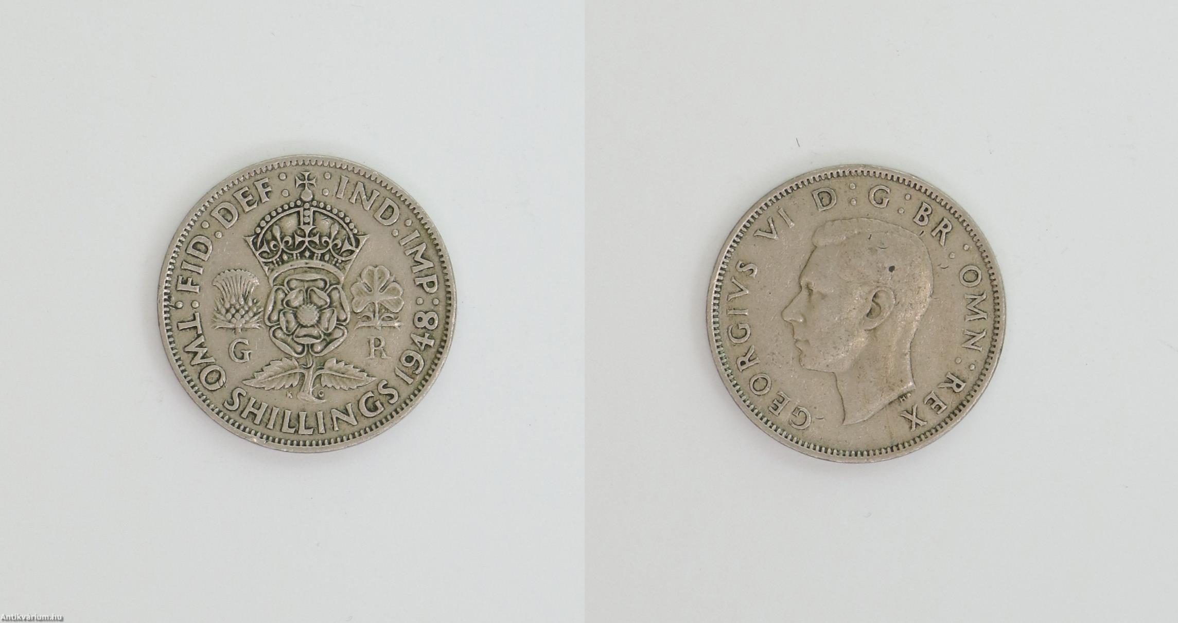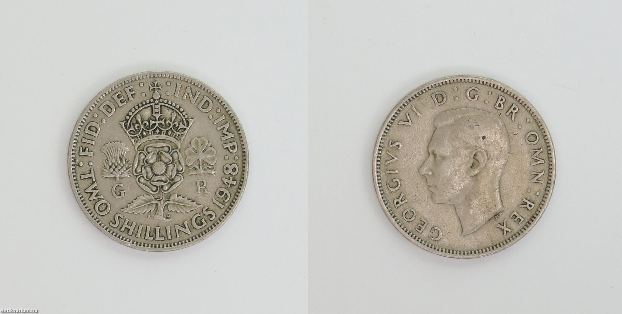 - 2 schilling névértékű, 1948-ban kibocsátott forgalmi érme (1 db). Összetétele: Réz-nikkel ötvözet. Súly: 11,31 g. Átmérő: 28,4 mm.