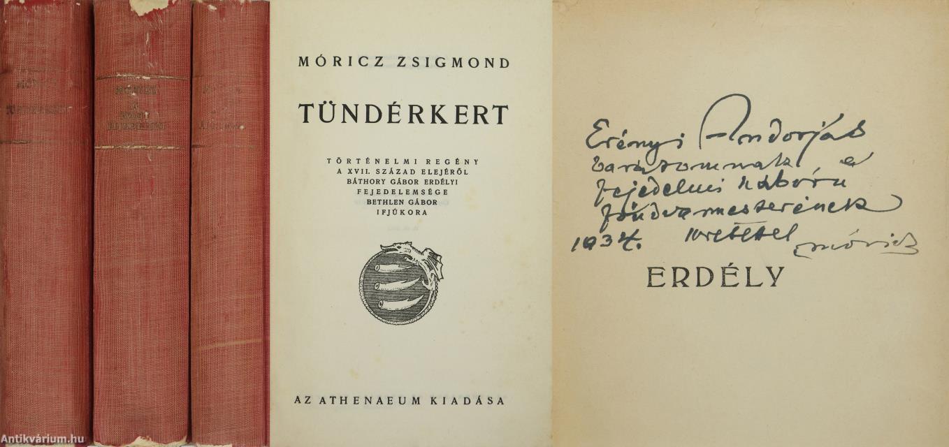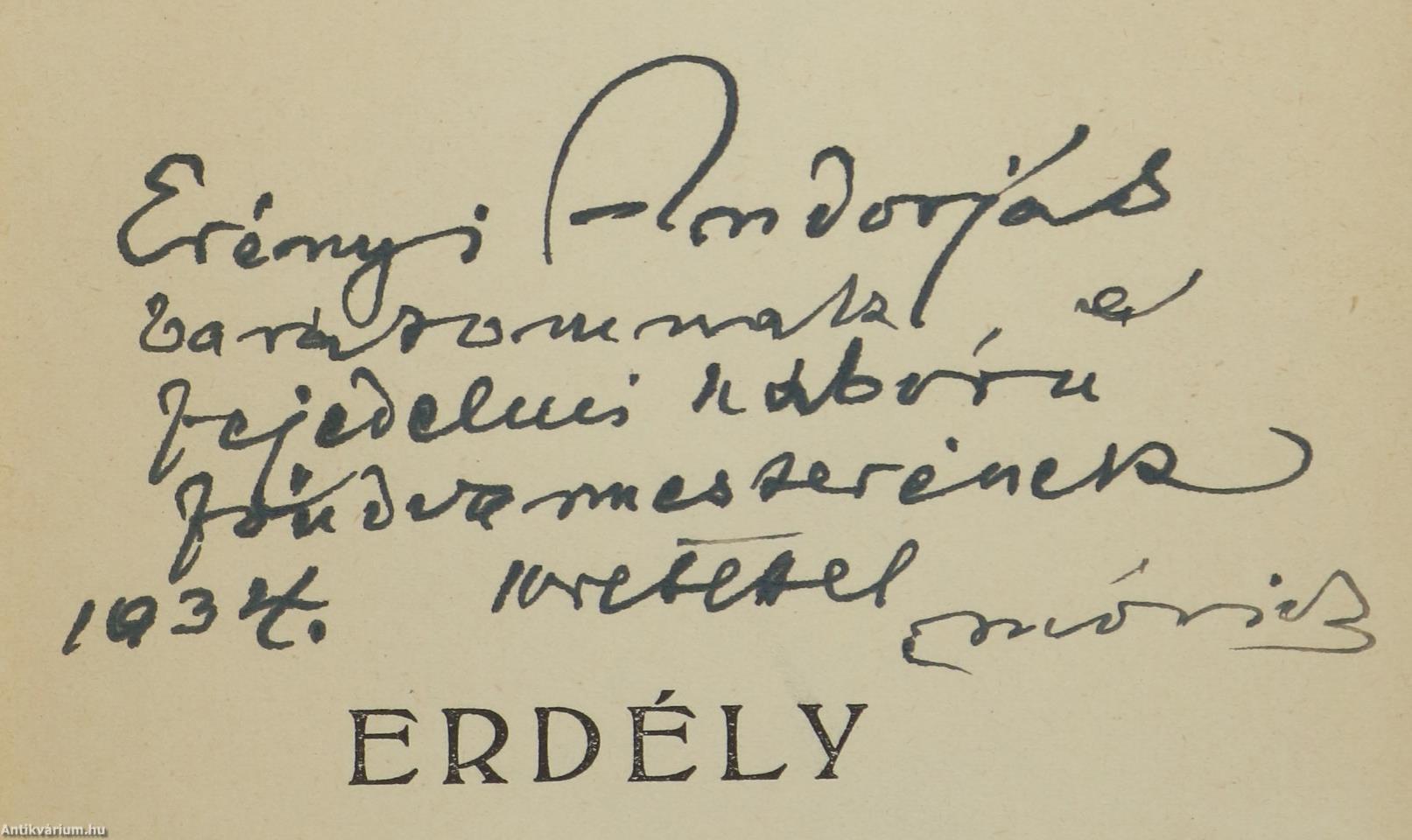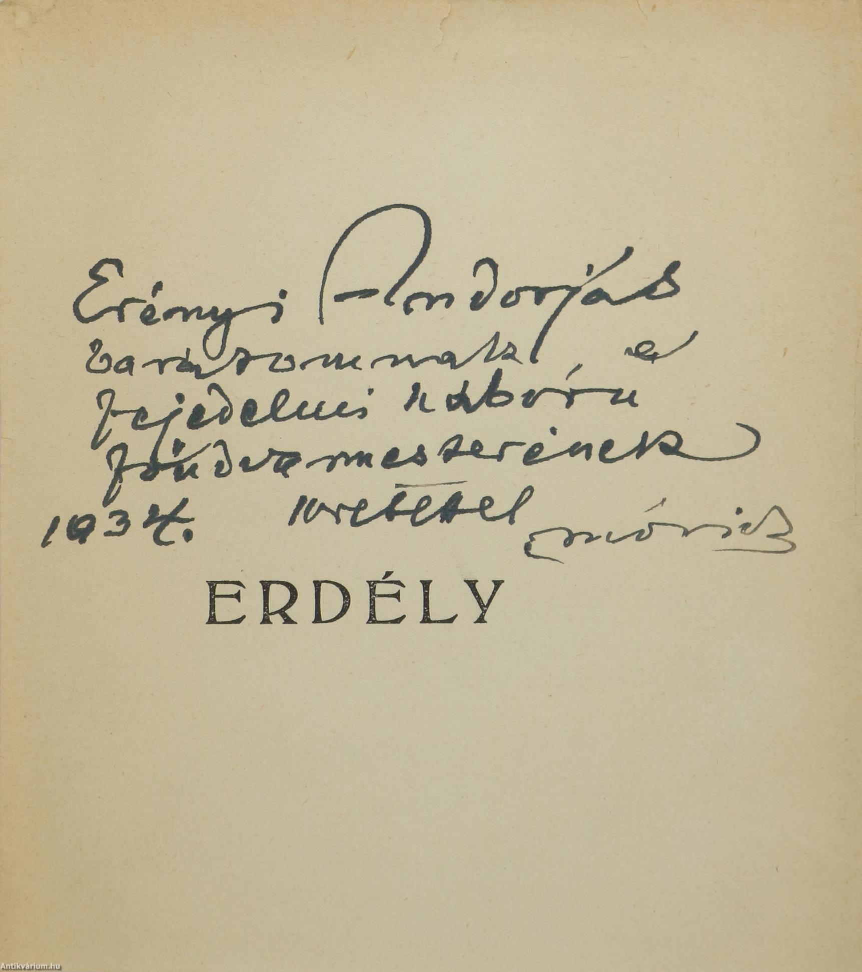 Móricz Zsigmond: Erdély I-III. (Erényi Andrásnak, az Athenaeum Rt. cégvezetőjének szóló dedikációval.)